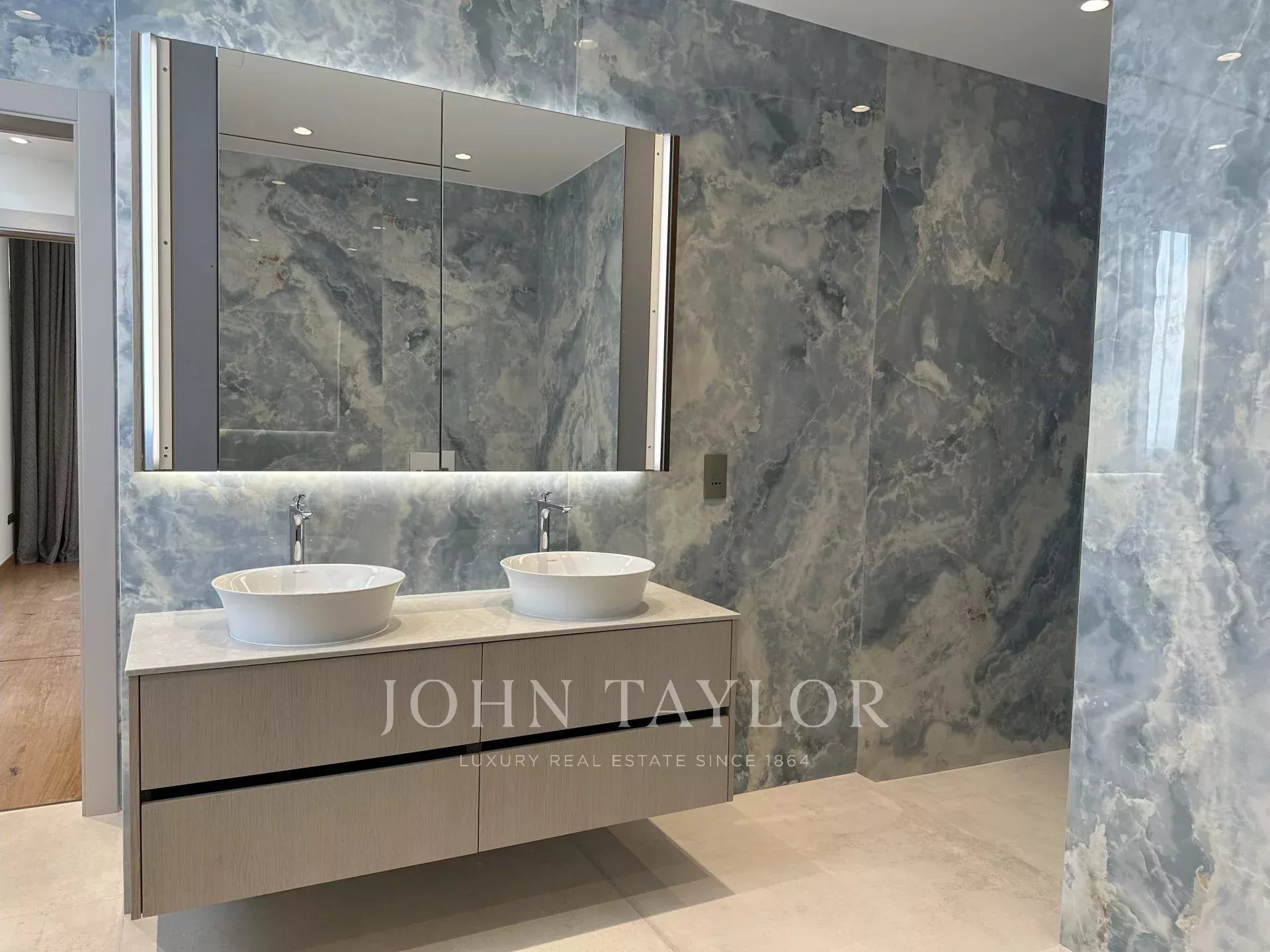 Situado en lo alto del edificio, el emblemático ático es un refugio privado con vistas panorámicas al mar y a la ciudad. Su sala de estar de planta abierta fluye sin esfuerzo a amplias terrazas para descansar, comer y entretenerse al aire libre; las ventanas del suelo al techo enmarcan la luz y las vistas como características de la vida. La cocina es una declaración de diseño con electrodomésticos de primera calidad y almacenamiento oculto, mientras que las habitaciones son espaciosas, con la suite principal como un santuario de calma con un cuarto de baño de calidad spa. Los acabados son de primera calidad y personalizables al gusto, creando una casa elegante que sirve tanto de sofisticada residencia urbana como de santuario familiar: una oportunidad única de poseer una casa emblemática en la que convergen arte, diseño y estilo de vida.