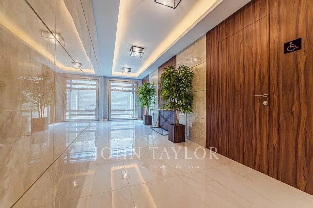 La moderna fachada geométrica del edificio combina elegantes elementos de piedra y madera, reflejo del diseño arquitectónico contemporáneo. Los jardines, el exterior bien iluminado y los alrededores vallados aumentan la privacidad y la seguridad. Con sólo nueve apartamentos, la urbanización mantiene un carácter boutique y una sensación de exclusividad. Cada residencia está construida con proporciones generosas, materiales de alta calidad y acabados refinados. Las zonas de estar de planta abierta se extienden a amplios balcones con barandillas de cristal, mientras que los grandes ventanales permiten que la abundante luz natural inunde los interiores, creando un ambiente cálido y acogedor.