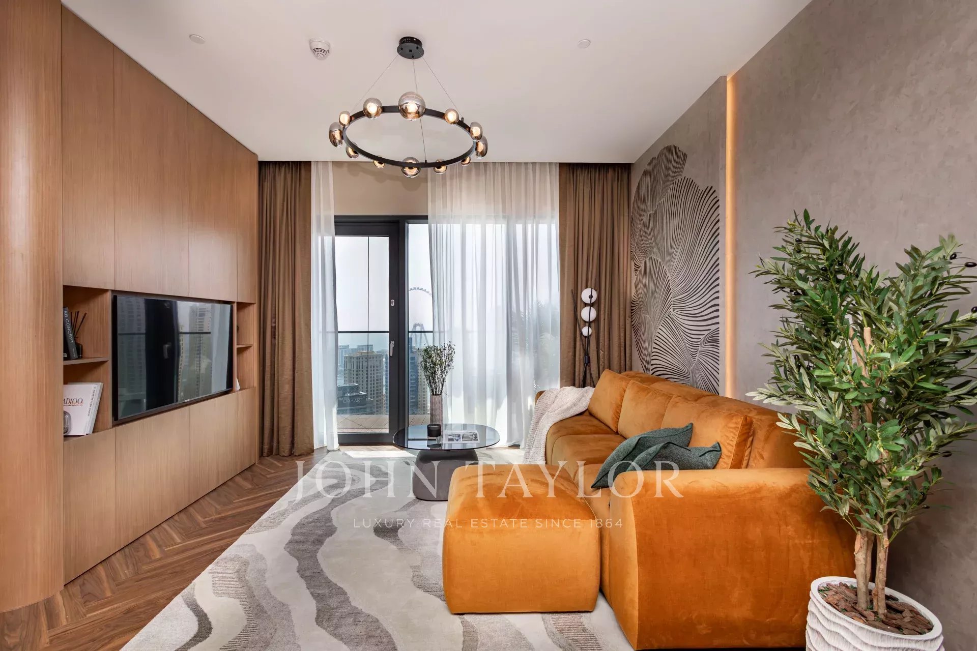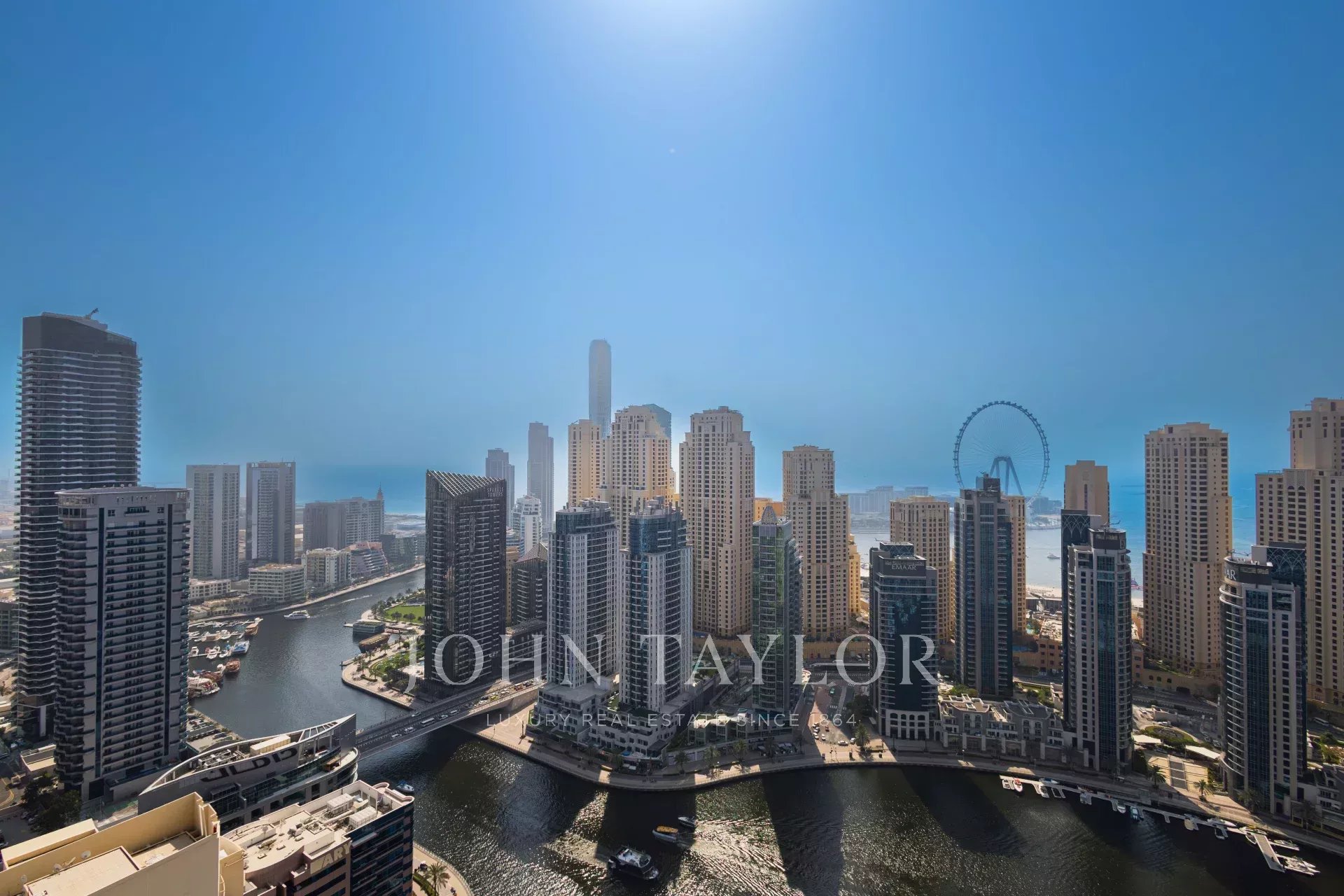 Situado en el corazón de la vibrante Marina de Dubai, este apartamento de 2 dormitorios totalmente amueblado ofrece una vida de lujo con impresionantes vistas de la Marina de Dubai, JBR, y el icónico Dubai Ain. Situado en una planta alta, este espacioso apartamento de 102 m2 presenta un diseño único con acabados de primera calidad. Los amplios ventanales inundan el espacio de luz natural y ofrecen unas vistas impresionantes de la ciudad y del paseo marítimo.