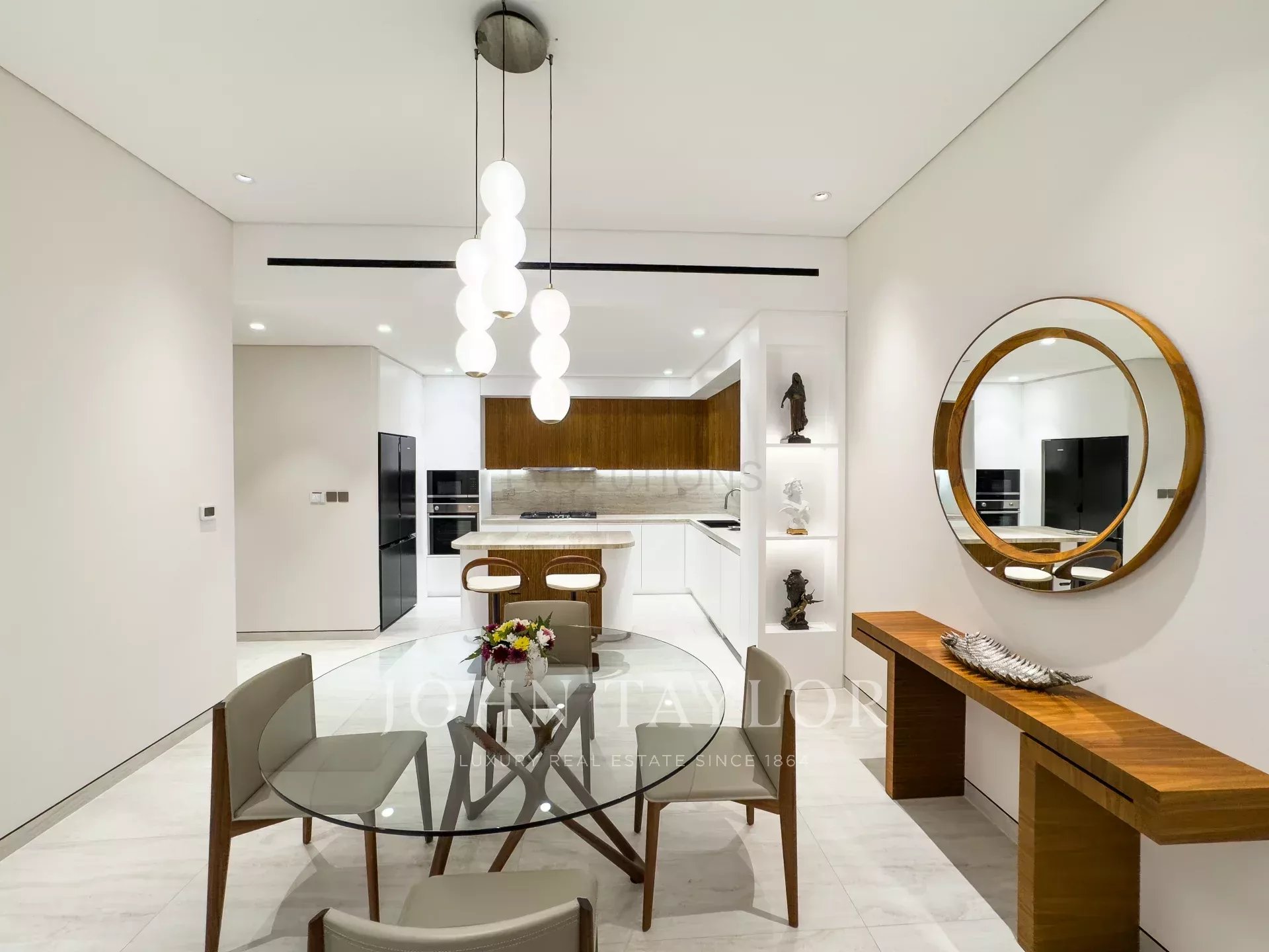 Vistas impresionantes: Disfrute de vistas despejadas de los lagos circundantes, campos de golf y el dinámico horizonte de Dubai, particularmente impresionante al atardecer.