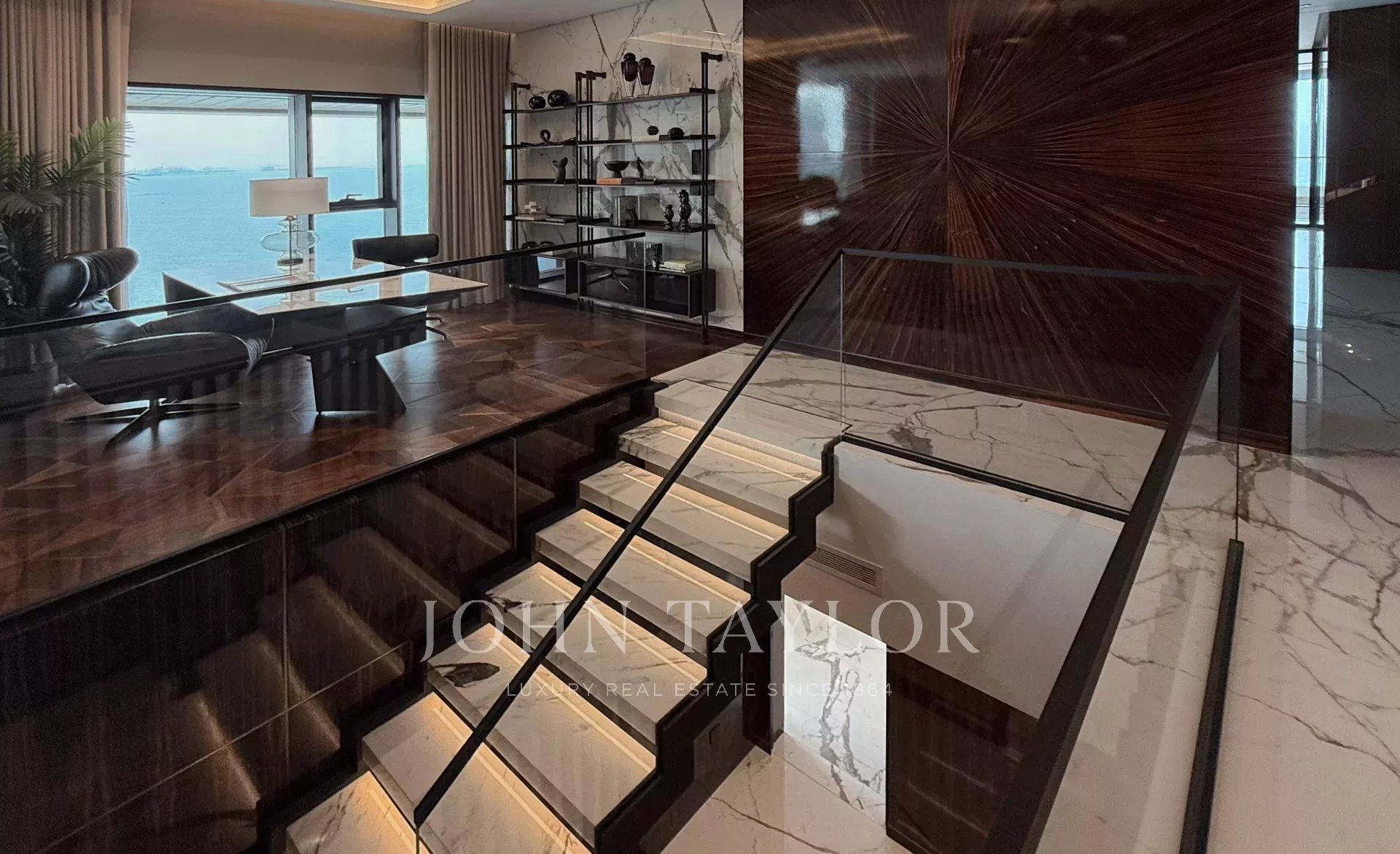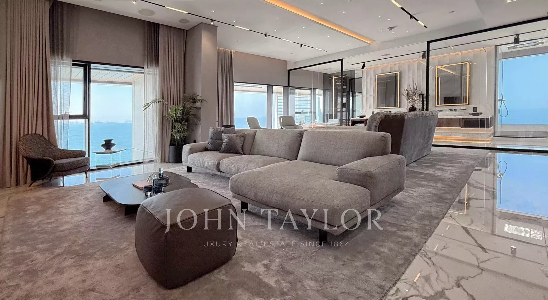 ohn Taylor Luxury Real Estate se enorgullece de presentar este extraordinario ático de 5 dormitorios totalmente amueblado en la emblemática isla de Bluewaters, que ofrece 870 m2 de espacio habitable a medida, vistas panorámicas al mar y una privacidad inigualable. Esta propiedad redefine la vida costera de alta gama en el corazón de Dubai.