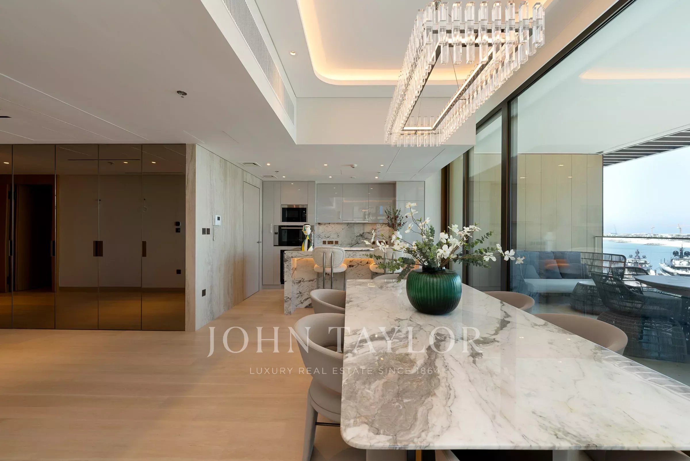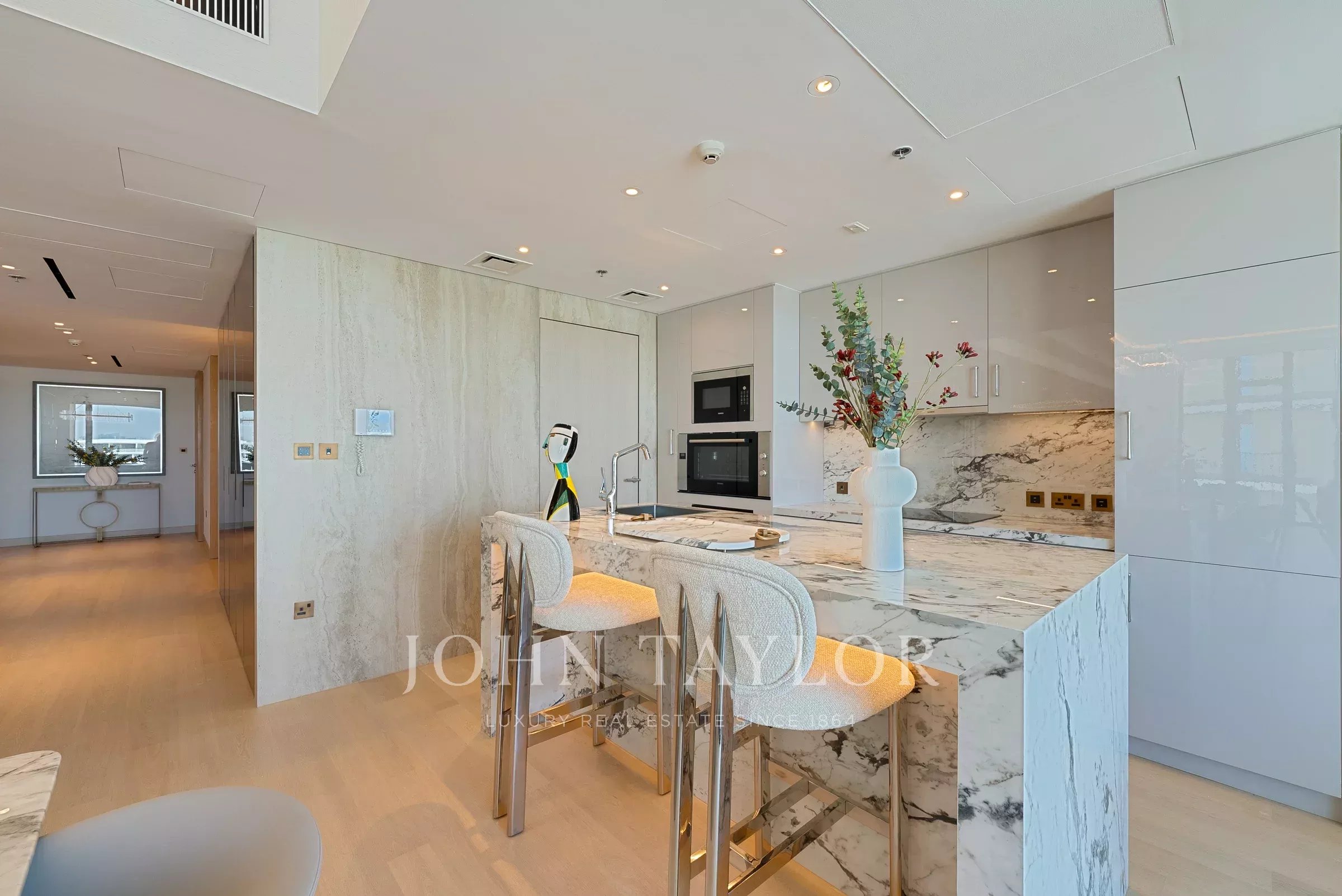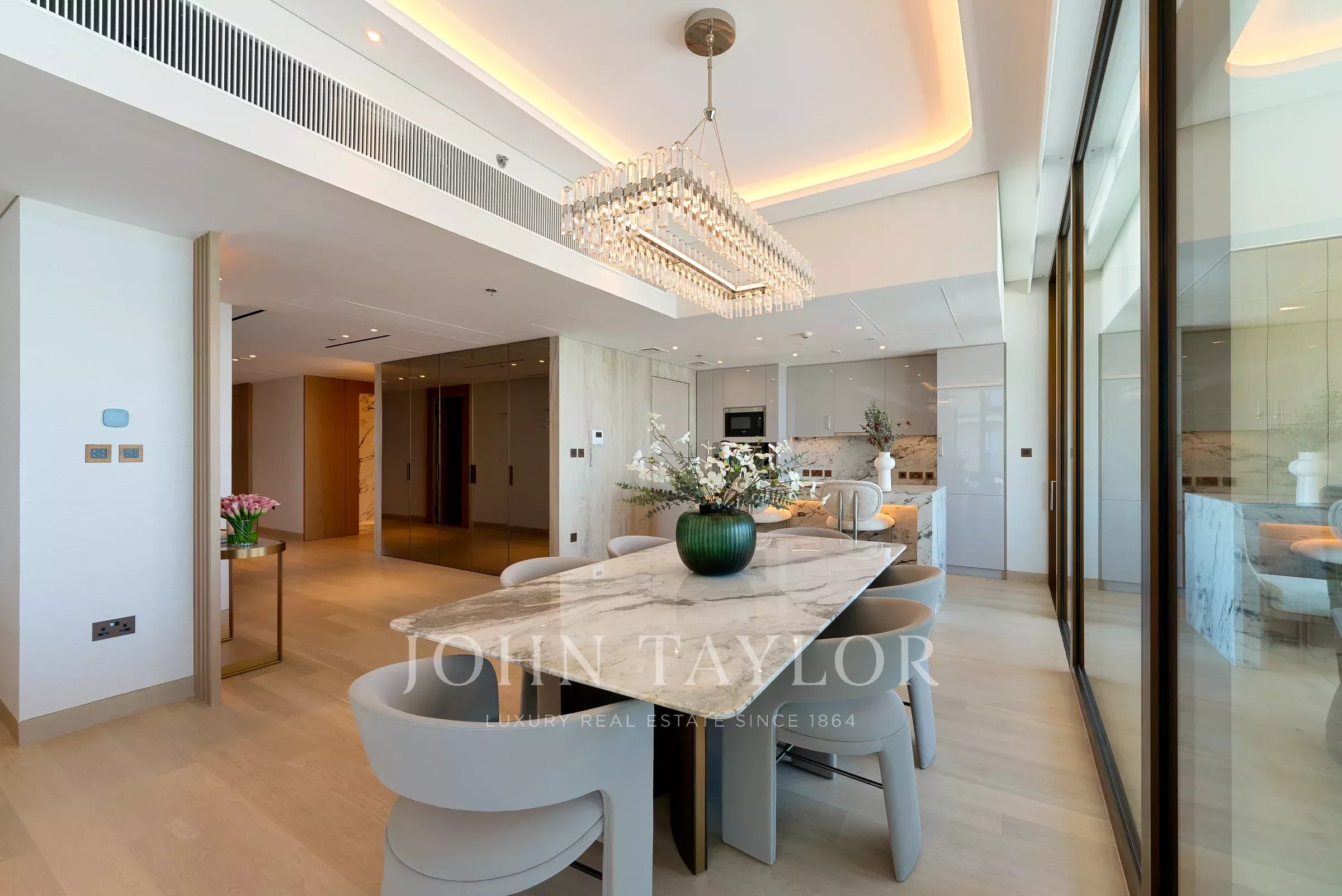 Posiblemente uno de los mejores diseños para las unidades de 3 dormitorios, esta residencia se despliega desde la entrada hacia un vestíbulo que actúa como un espacio de bienvenida. Una entrada de servicio discreta se encuentra cerca, perfecta para el personal y permitiendo una integración sin esfuerzo en la sala de estar y el comedor.