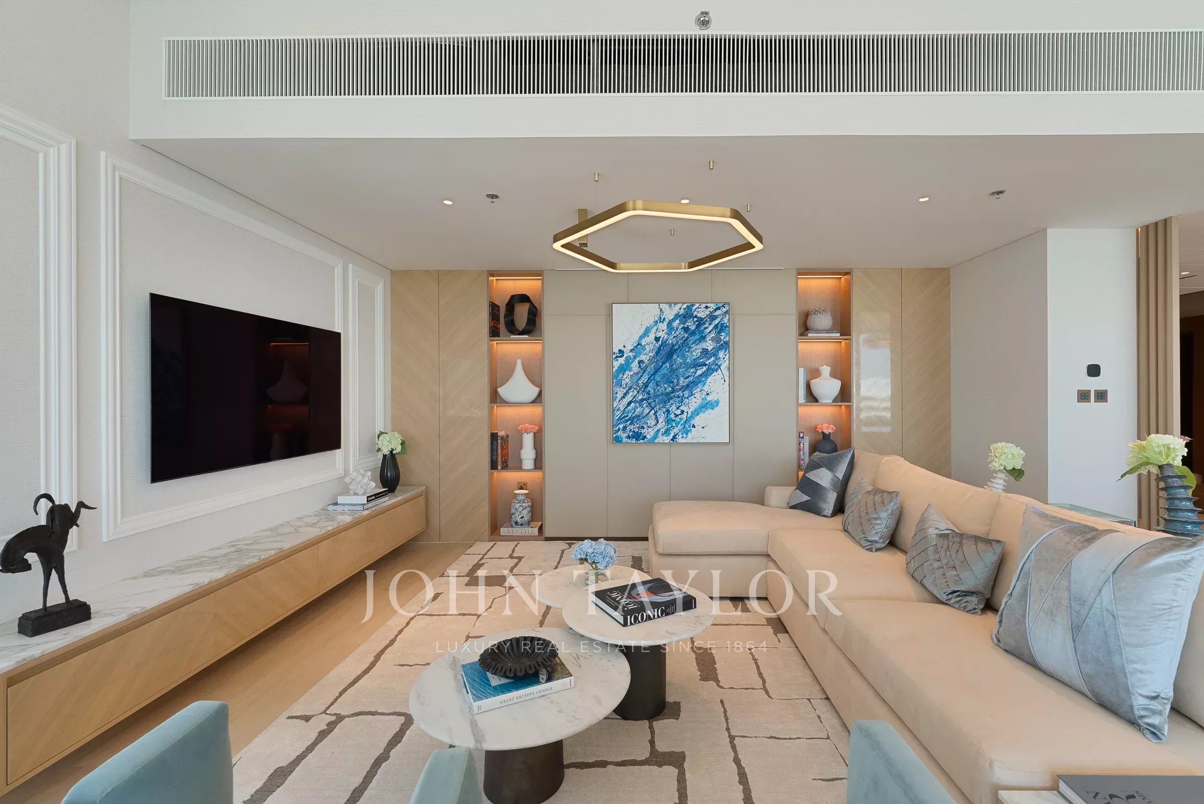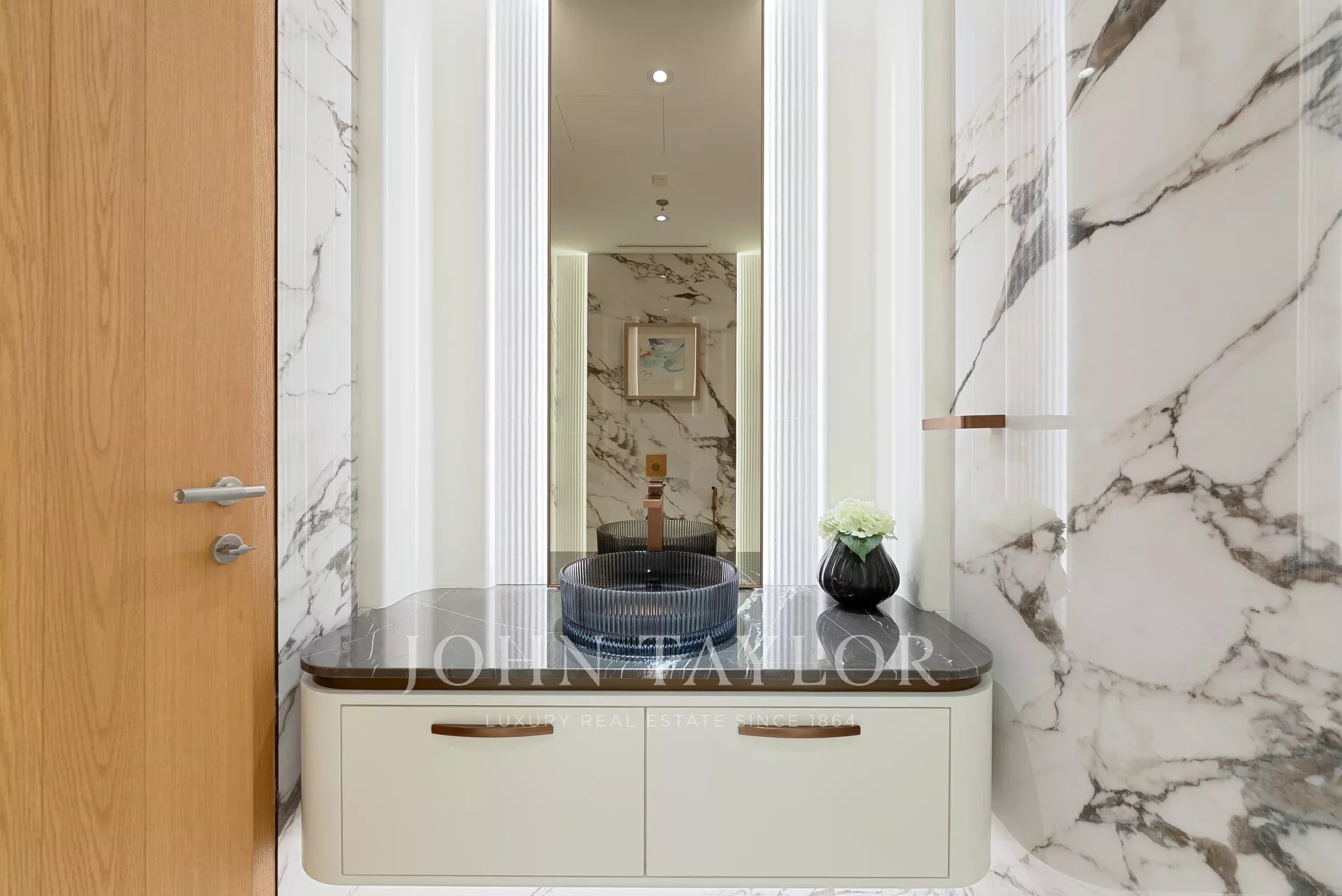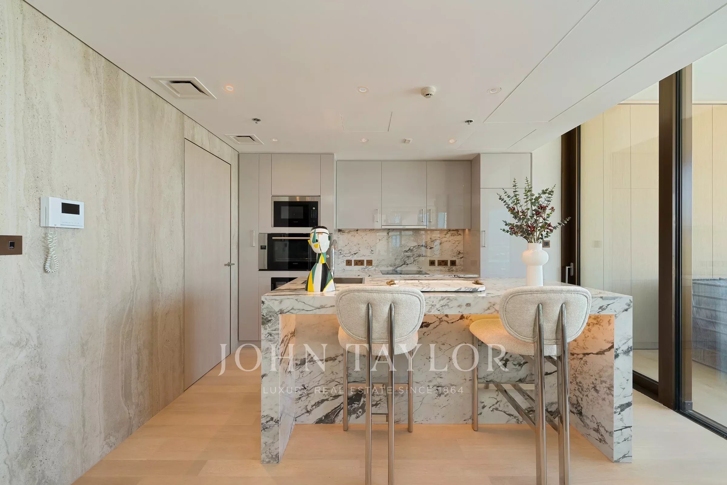 Posiblemente uno de los mejores diseños para las unidades de 3 dormitorios, esta residencia se despliega desde la entrada hacia un vestíbulo que actúa como un espacio de bienvenida. Una entrada de servicio discreta se encuentra cerca, perfecta para el personal y permitiendo una integración sin esfuerzo en la sala de estar y el comedor.