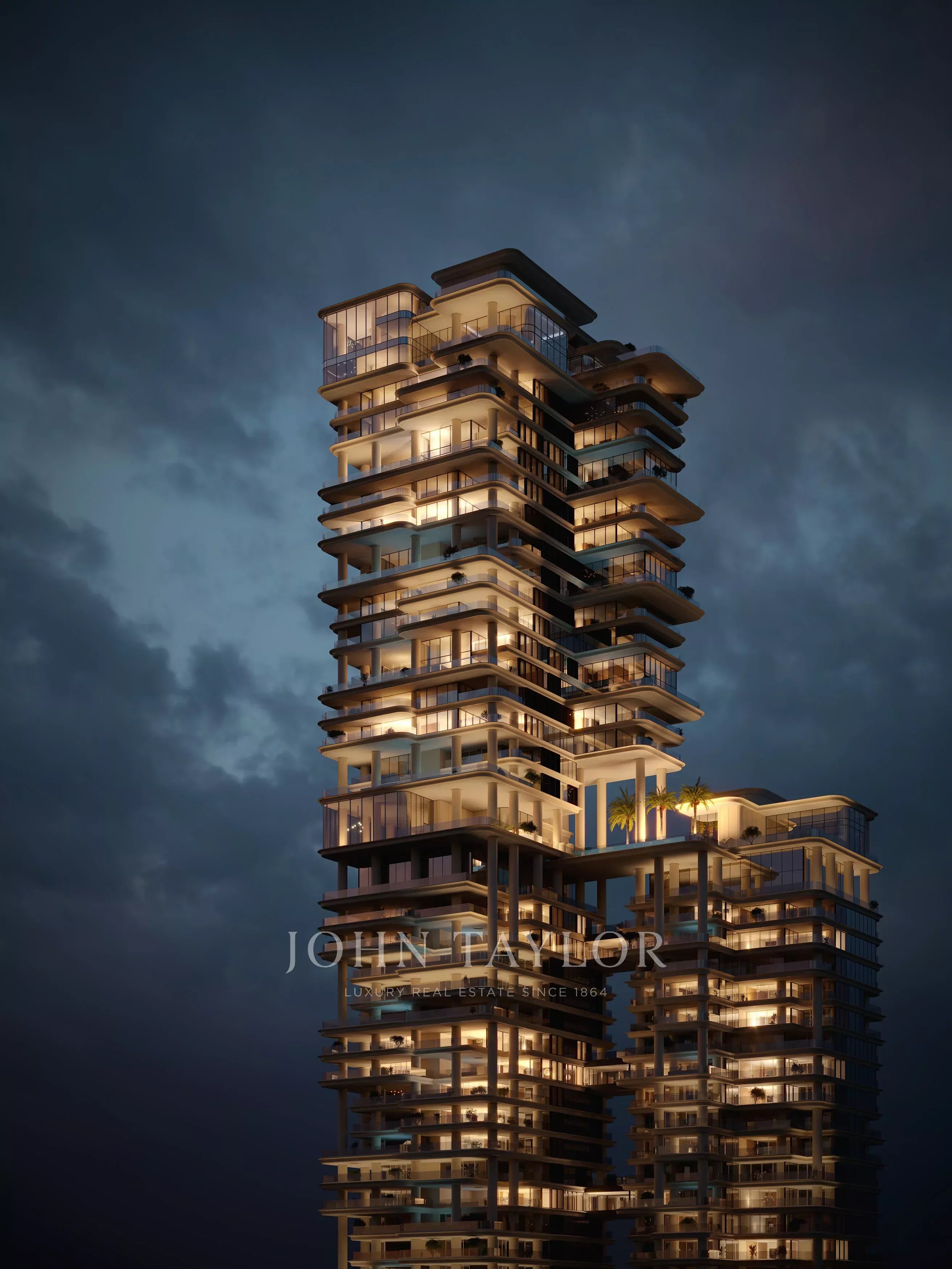 Atendida por la Dorchester Collection, Vela Viento, del promotor Omniyat, es la última promoción cuya finalización está prevista para el tercer trimestre de 2027. Con impresionantes terrazas interiores y exteriores diseñadas teniendo en cuenta los principios biofílicos, la casa tiene unas vistas impresionantes. Las terrazas ajardinadas y los espacios habitables de doble altura permiten relajarse, entretenerse y contemplar las enérgicas vistas de la bahía de Marasi, el Burj Khalifa y el centro de Dubai.