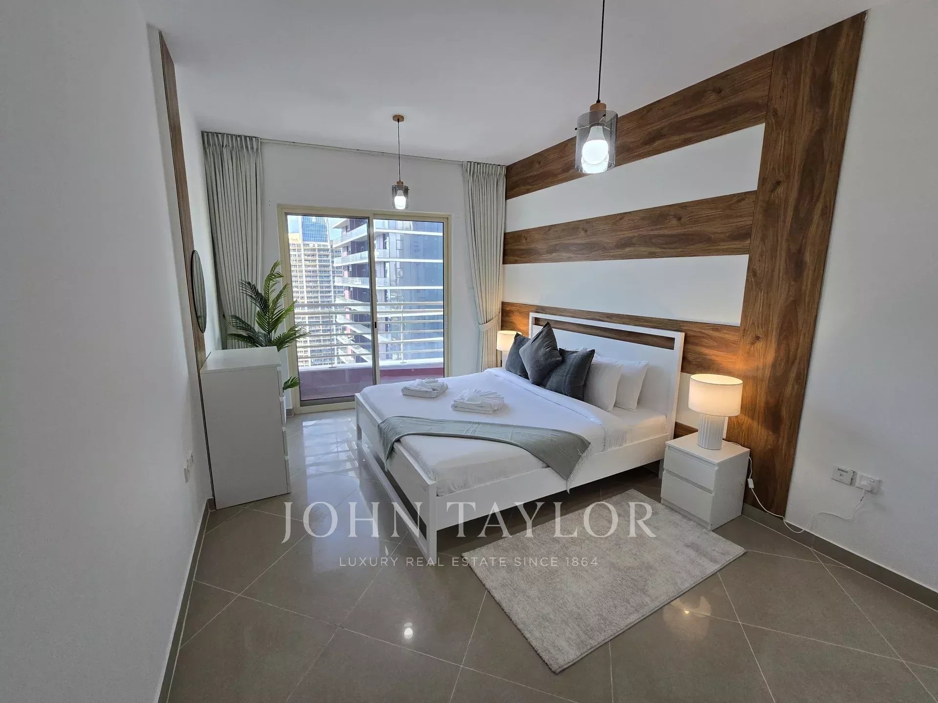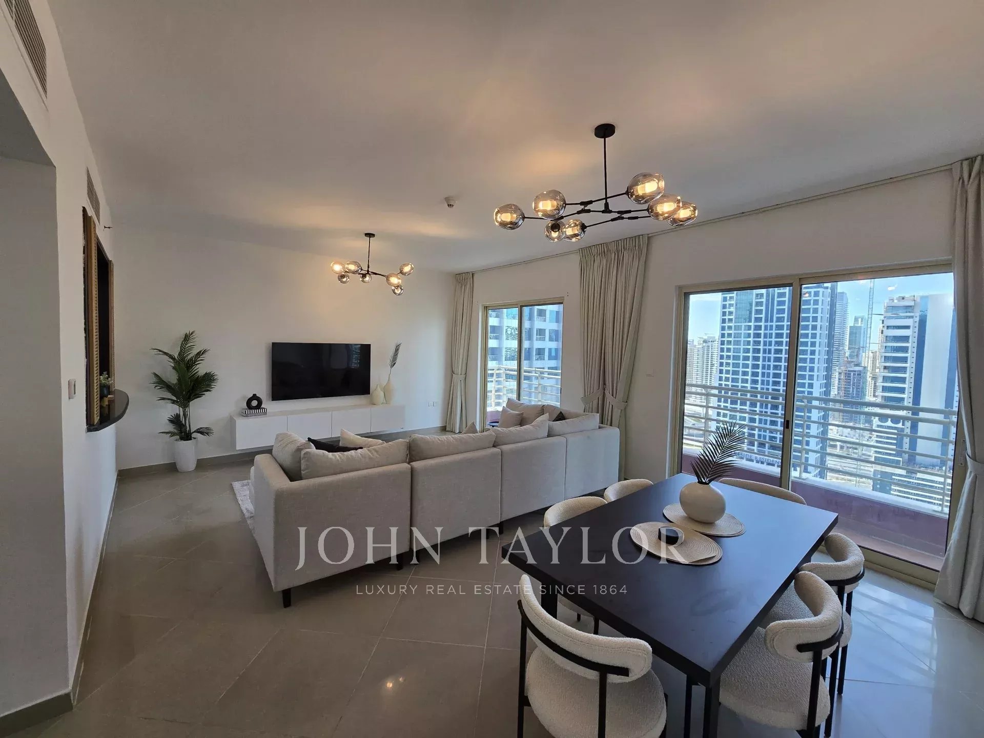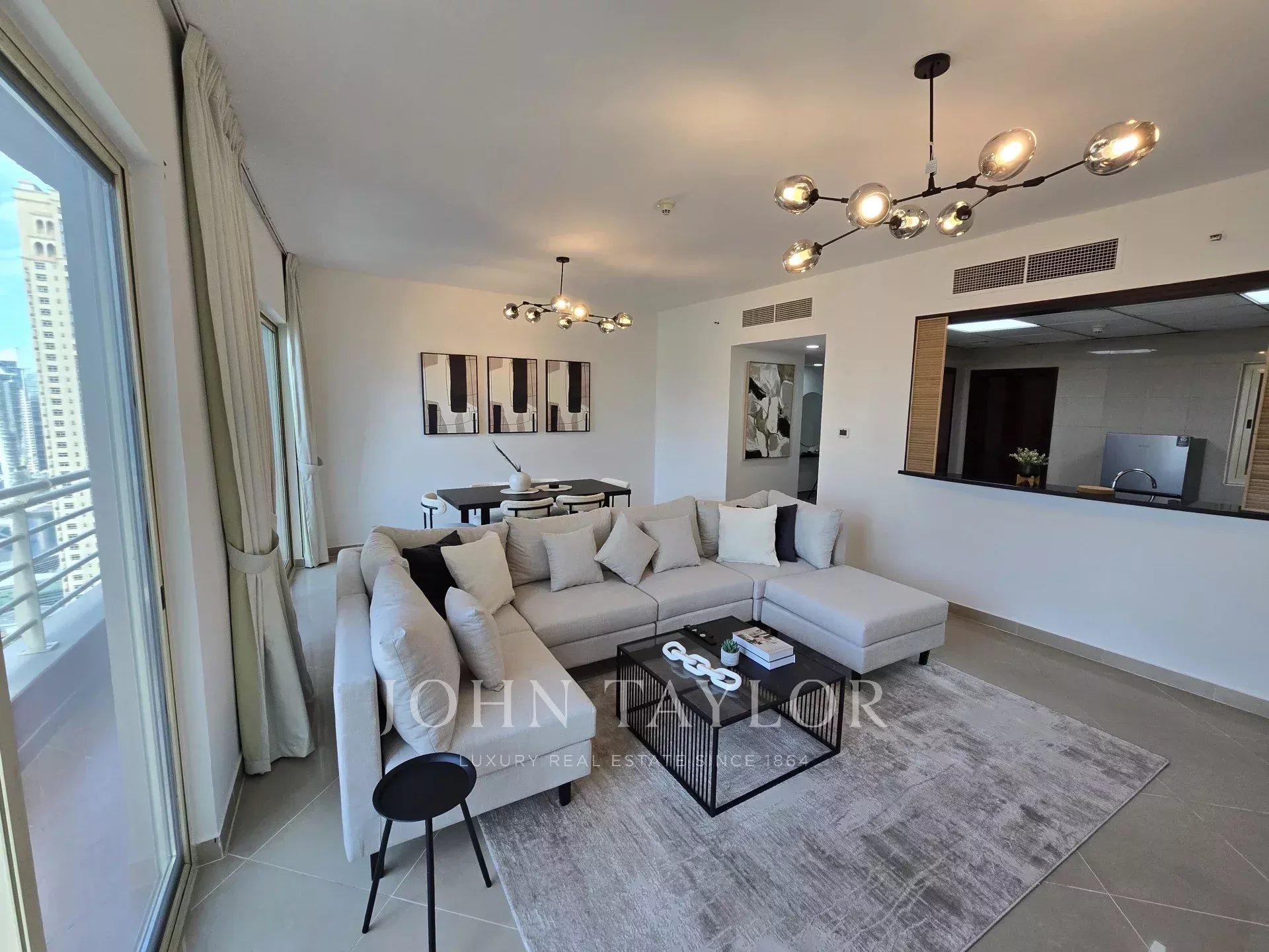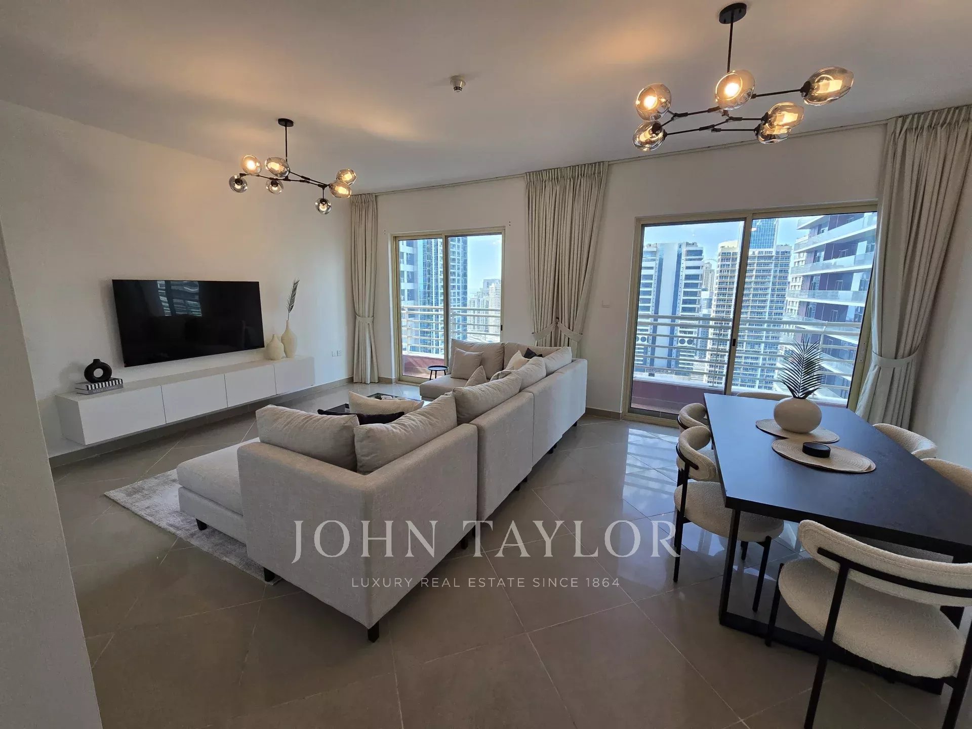 John Taylor Real Estate se complace en ofrecer este precioso apartamento amueblado de 2 dormitorios con cuarto de servicio en la prestigiosa Icon Tower 2, situada en el corazón de Jumeirah Lake Towers (JLT). Con 135,08 metros cuadrados, esta residencia ofrece una combinación perfecta de lujo, espacio y comodidad, ideal para familias o profesionales.