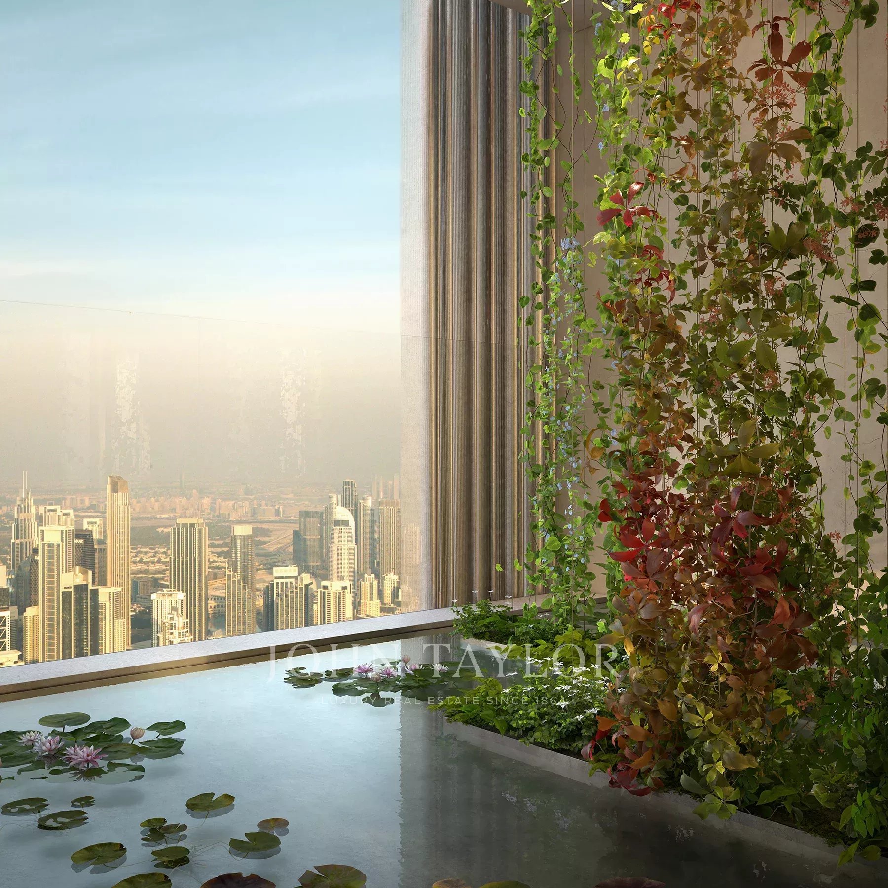 En el exterior, el espacio se extiende por 5.258,82 metros cuadrados. Una larga piscina privada se extiende a lo largo de la terraza, acompañada de terrazas a la sombra y zonas ajardinadas que crean una sensación de calma y aislamiento. Varias terrazas se extienden desde los salones principales y los dormitorios, ofreciendo espacios para comer al aire libre o reunirse al atardecer con vistas al Canal de Agua de Dubai. La interacción entre la vegetación, el agua y la arquitectura realza la sensación de vivir en un tranquilo oasis urbano.