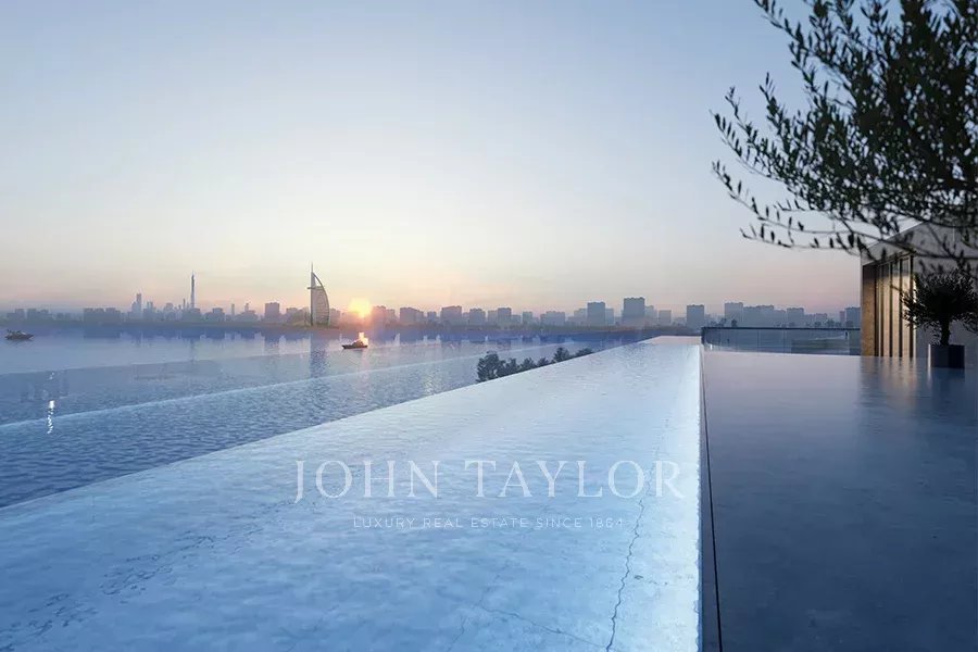 Amplias estancias: 3 dormitorios en suite, un gran salón-comedor y una terraza privada con vistas emblemáticas del Golfo Arábigo y el horizonte del puerto deportivo de Dubai.