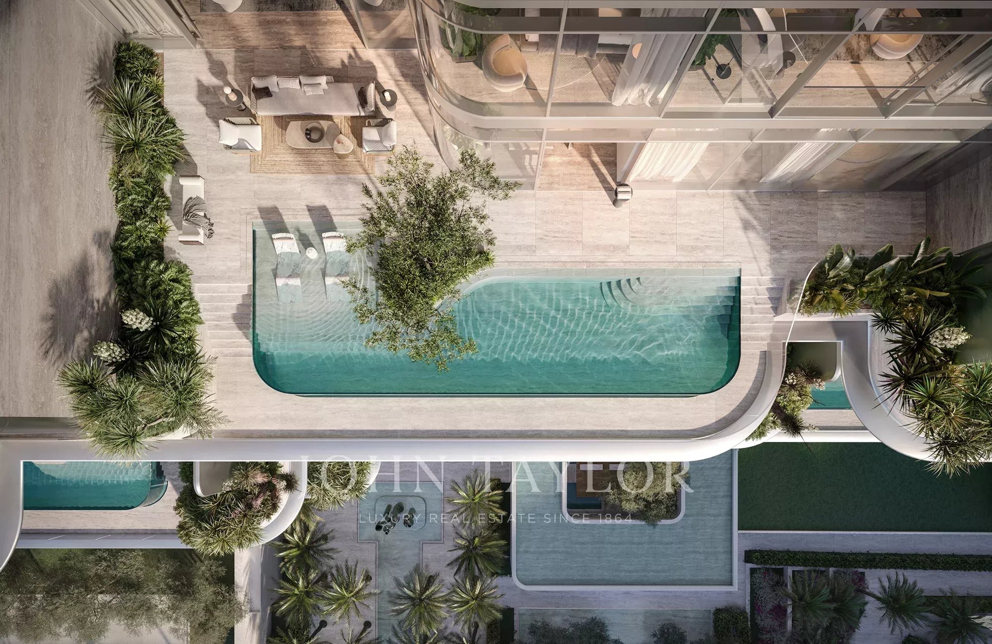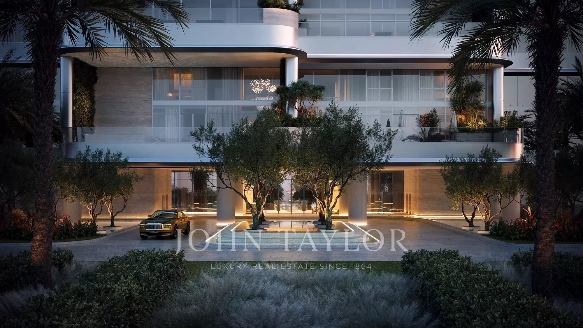Situada en la media luna de Palm Jumeirah, esta impresionante residencia dúplex es sólo una de las 20 que componen el complejo ORLA Infinity. Atendido por Dorchester Collection y desarrollado por el promotor principal Omniyat, el dúplex se extiende 8.045 pies cuadrados de superficie construida y está disponible sobre plano. La unidad ofrece excelentes vistas a la ciudad y al mar. El edificio ha sido diseñado por los mundialmente conocidos arquitectos Foster + Partners, con interiores diseñados por Yodezeen. El paisajismo de las zonas comunes es obra de Zed Collective.