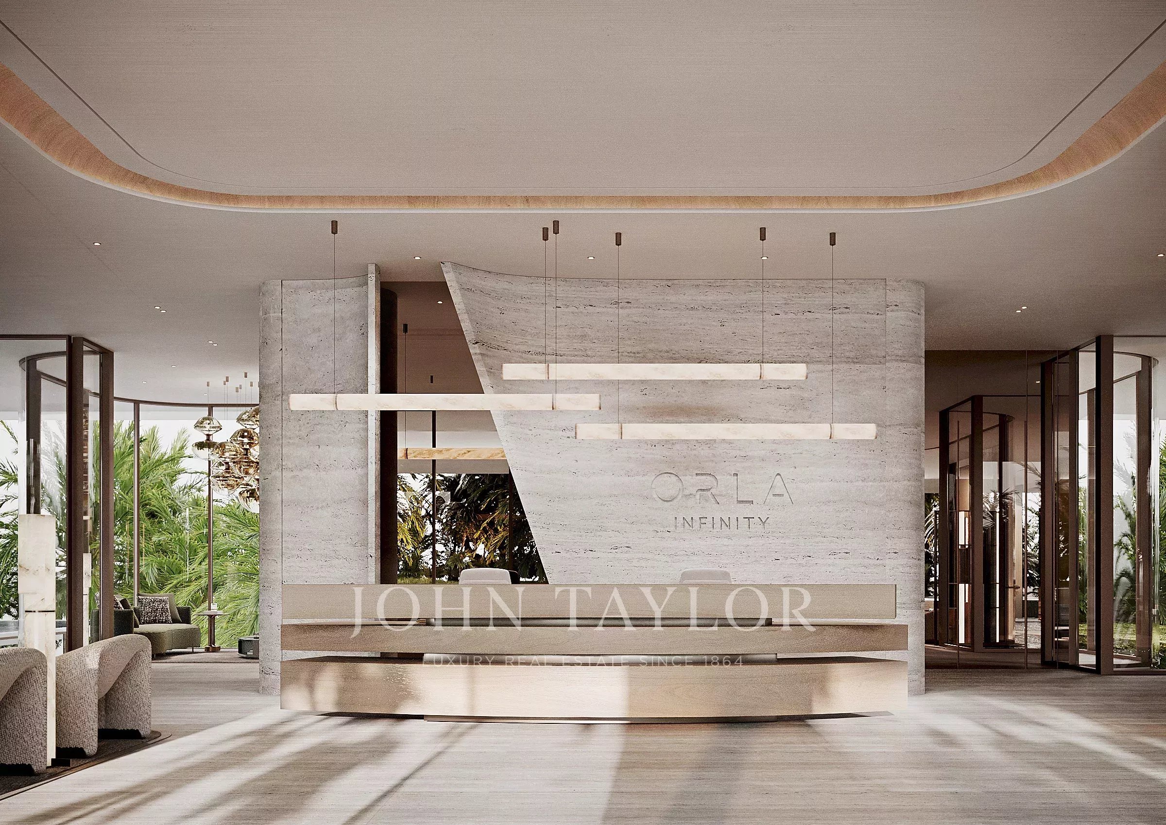 Un camino ajardinado le da acceso a una entrada privada que le da la bienvenida a ORLA Infinity. Al entrar en el vestíbulo de la planta baja, le espera un servicio de primera clase, acompañado de exquisitas obras de arte y juegos de agua que amplifican la grandeza del espacio. Discretos ascensores le transportarán sin esfuerzo desde el aparcamiento vigilado o desde la planta baja directamente a su residencia, garantizando privacidad y comodidad.