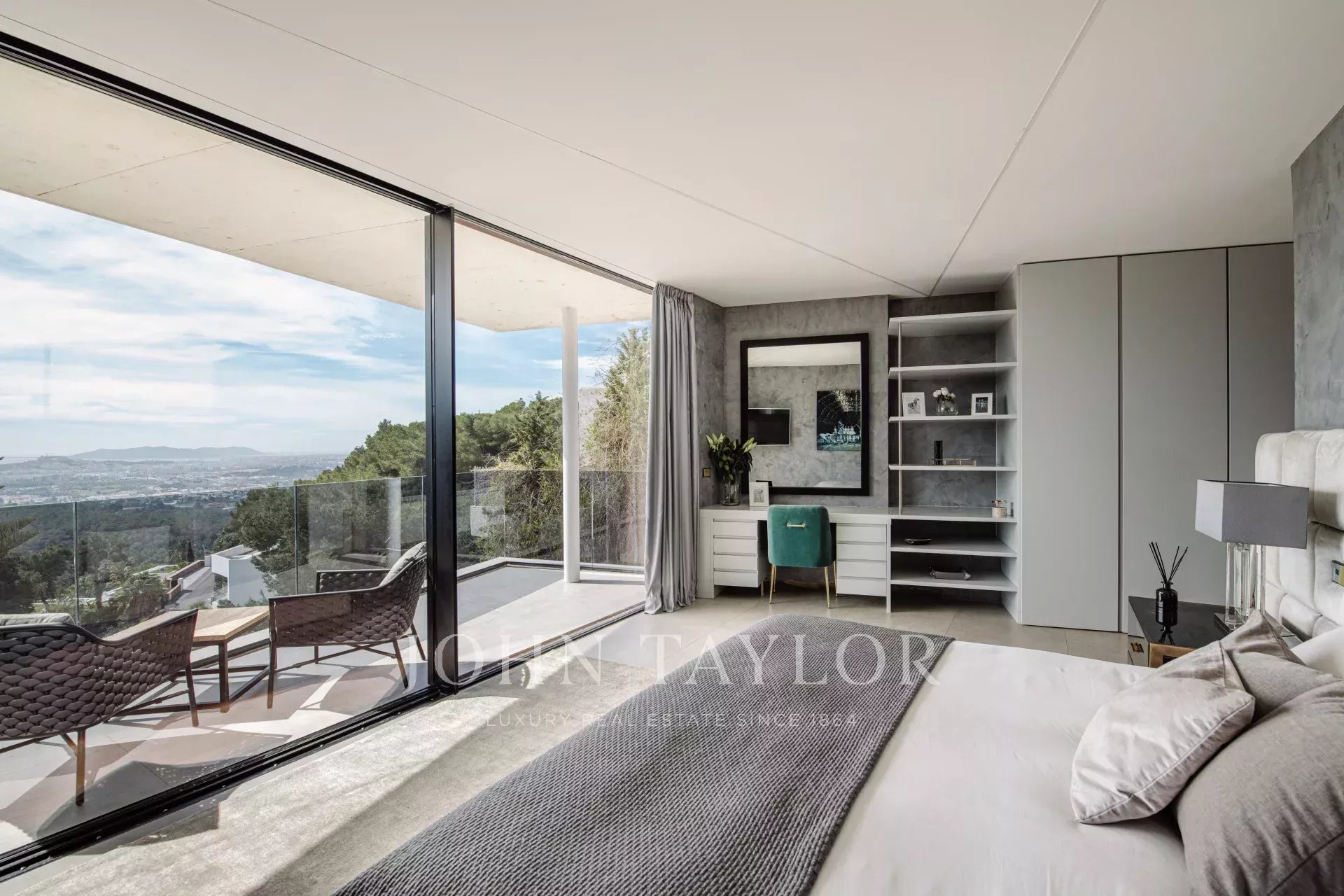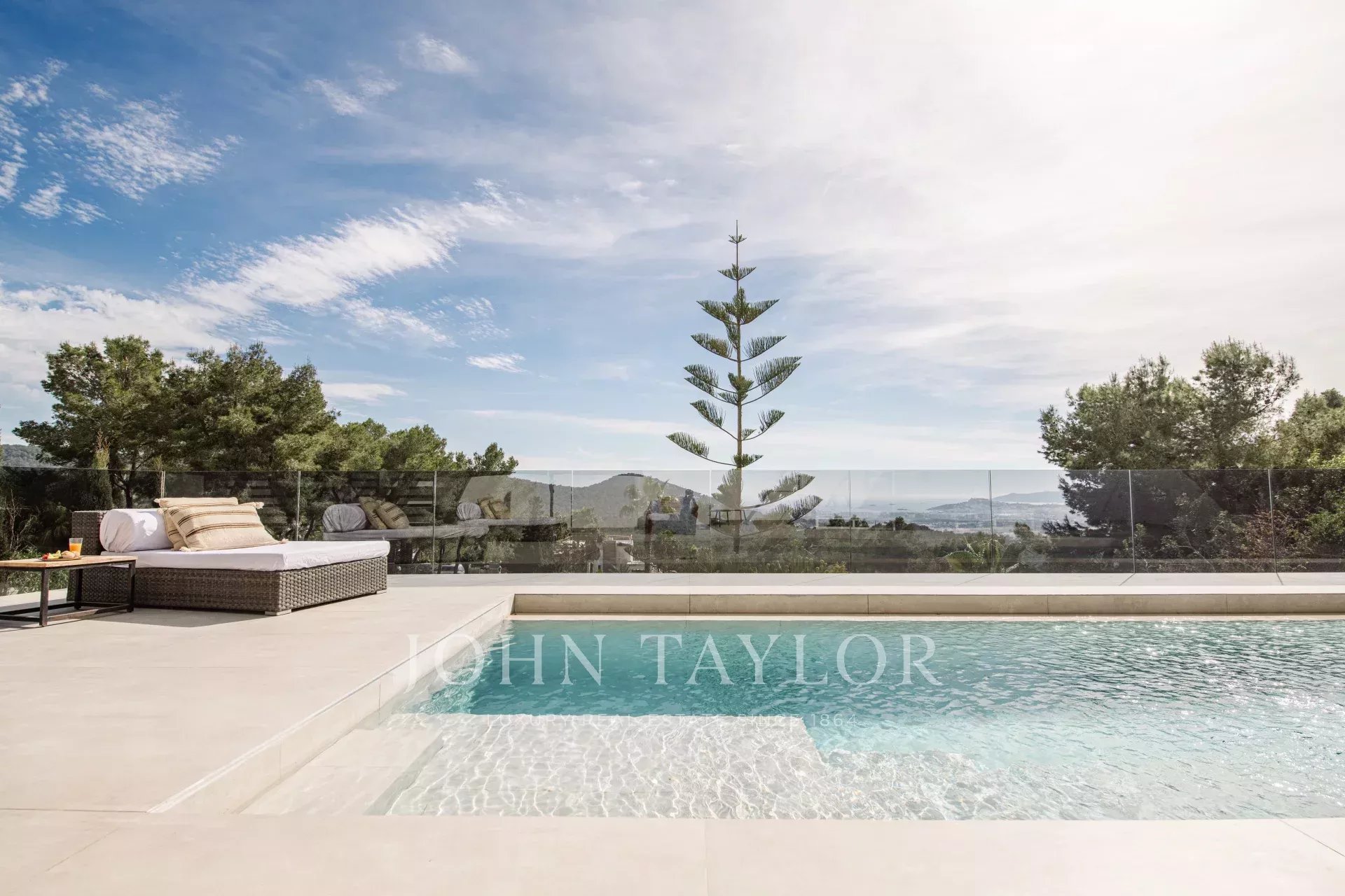 Además, una serie de balcones y terrazas ofrecen vistas hacia la maravillosa área de la piscina, ideal para disfrutar de las tardes de verano. Al otro lado de la casa, se encuentra un patio aislado que proporciona otro espacio al aire libre.