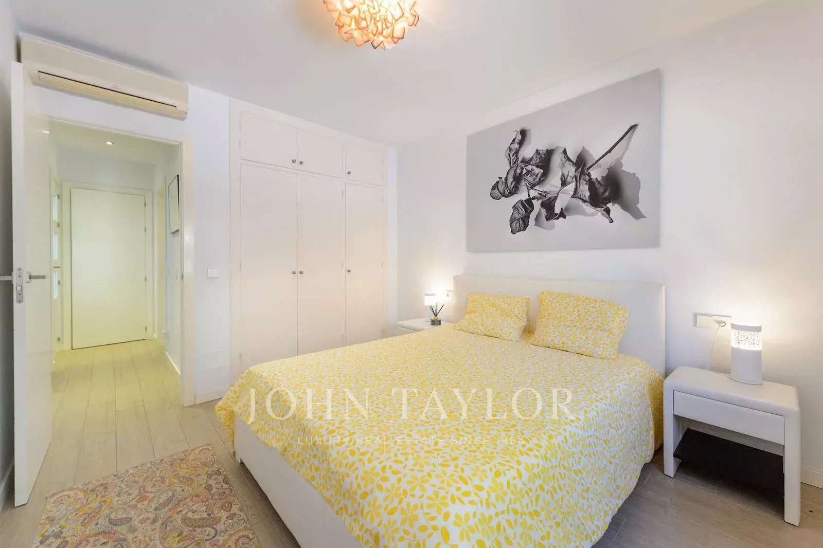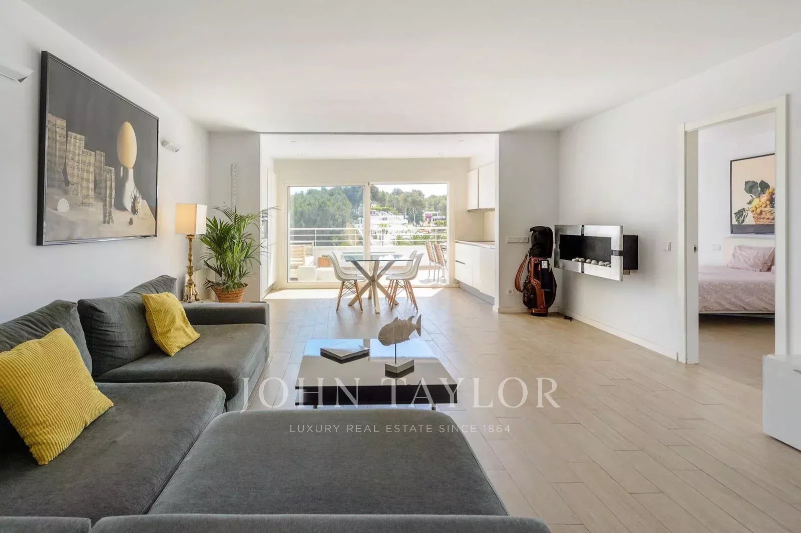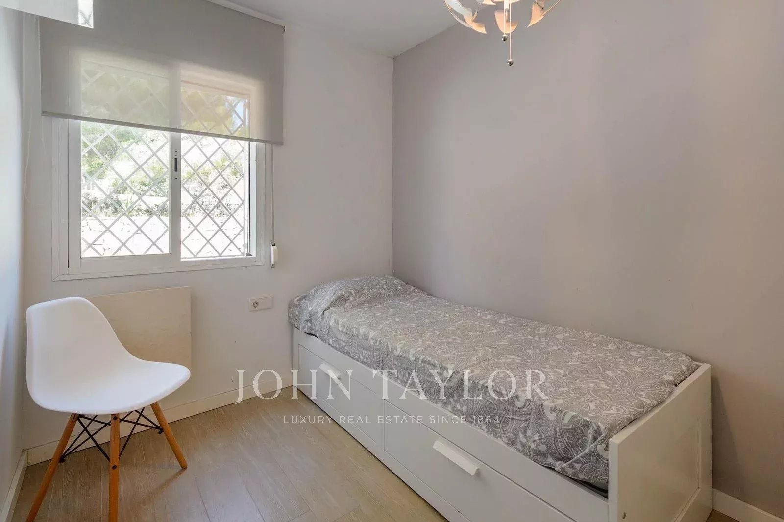 El amplio dormitorio principal cuenta con un cuarto de baño en-suite y un generoso armario. Ofrece acceso directo a una terraza con impresionantes vistas al campo de golf, lo que le permitirá empezar el día con una vista refrescante. La segunda habitación doble espaciosa está separada del dormitorio principal por un pasillo, lo que garantiza la privacidad. La tercera habitación individual cuenta con una cama individual que puede transformarse en cama de matrimonio, lo que la hace versátil para diferentes necesidades. Estas dos habitaciones comparten un cuarto de baño común, convenientemente situado entre ellas.