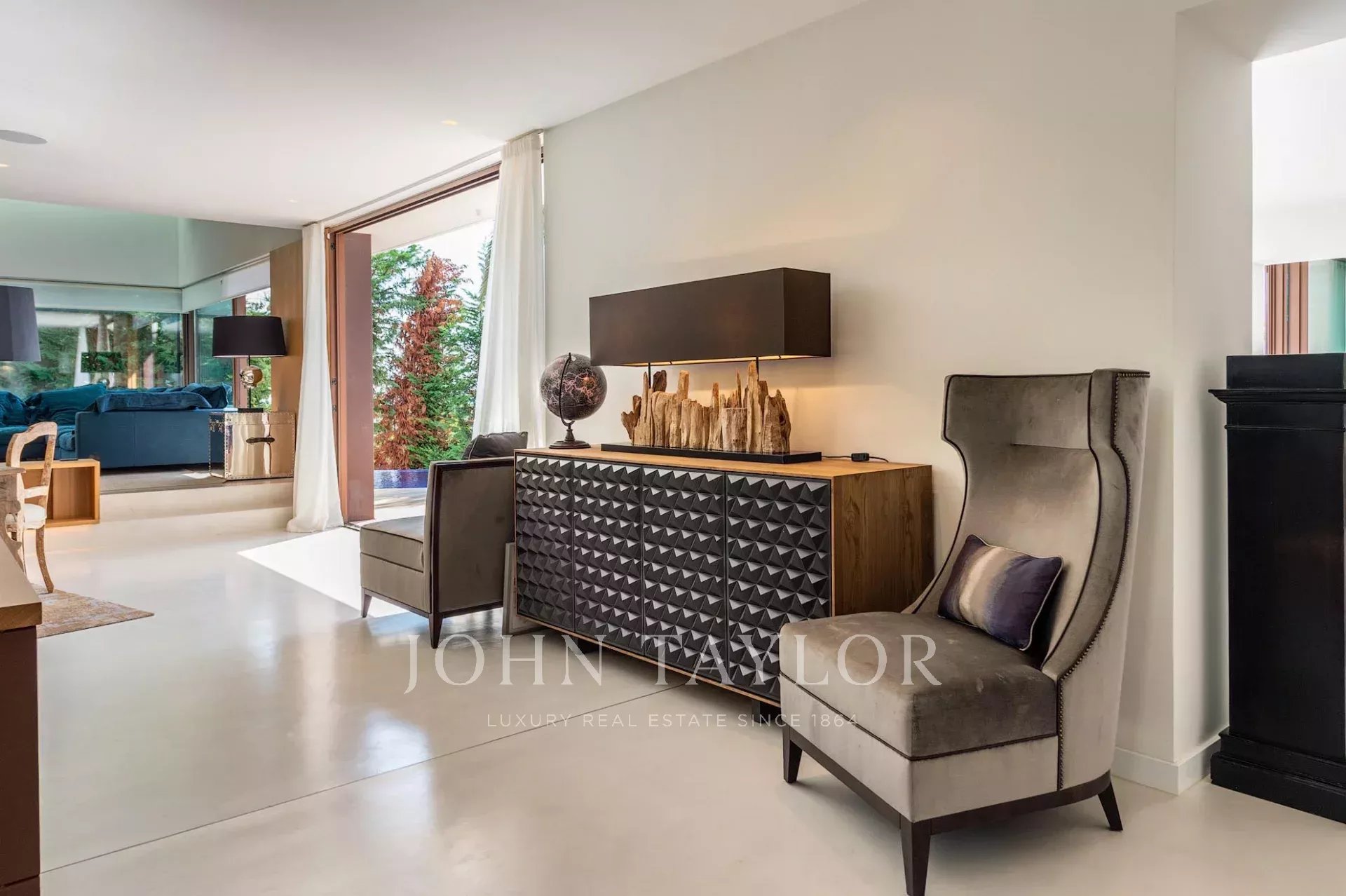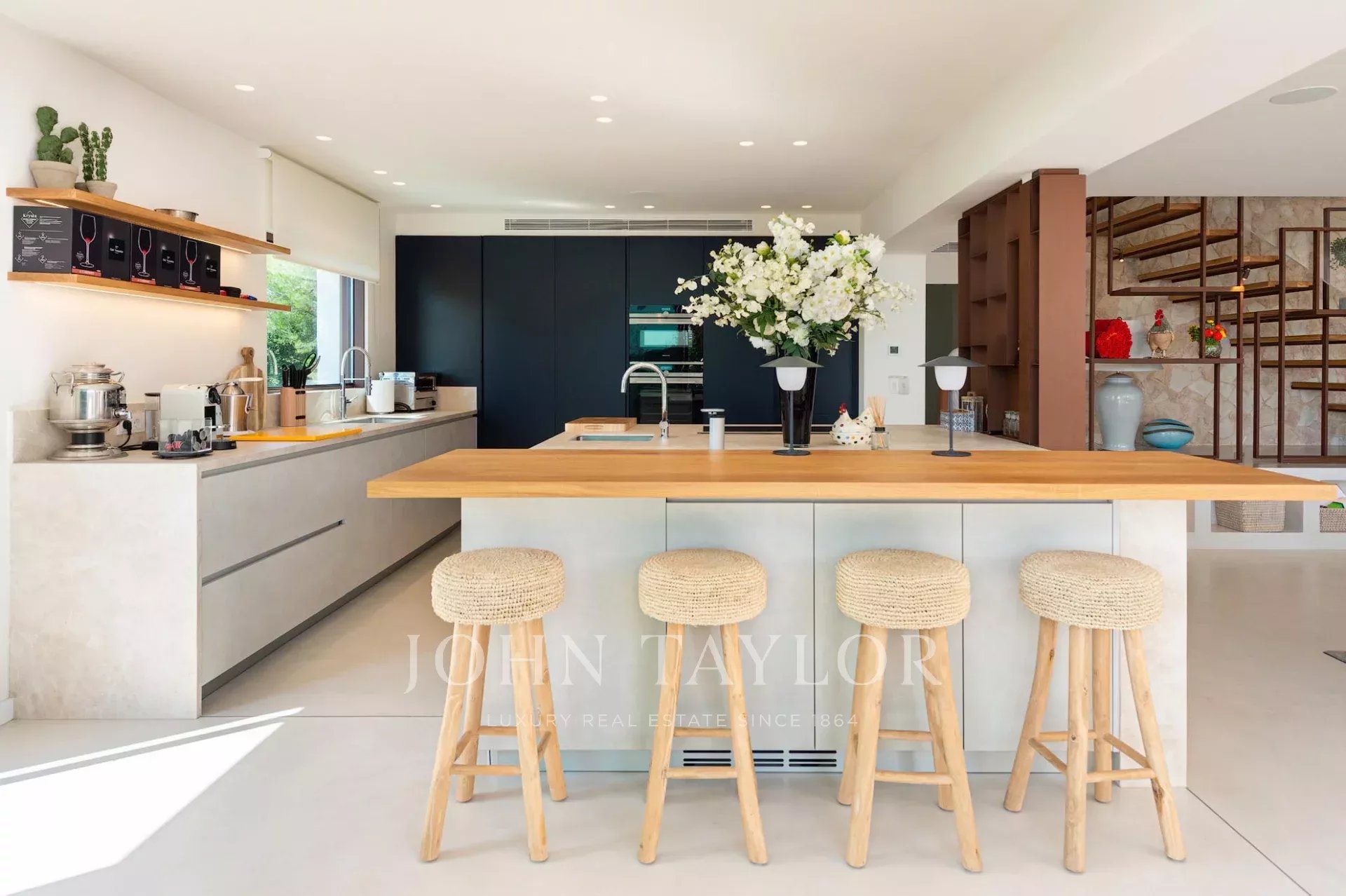 Esta impresionante villa con Licencia Turística se encuentra a pocos minutos de Ibiza y ofrece impresionantes vistas al mar. Ubicada en una de las zonas más prestigiosas de Ibiza, en Cap Martinet, esta villa cuenta con 6 habitaciones, 7 baños y 1 aseo, con capacidad para alojar a un máximo de 12 personas. La propiedad se extiende sobre una parcela de 1.035m2 y tiene una superficie construida total de 522,18m2.