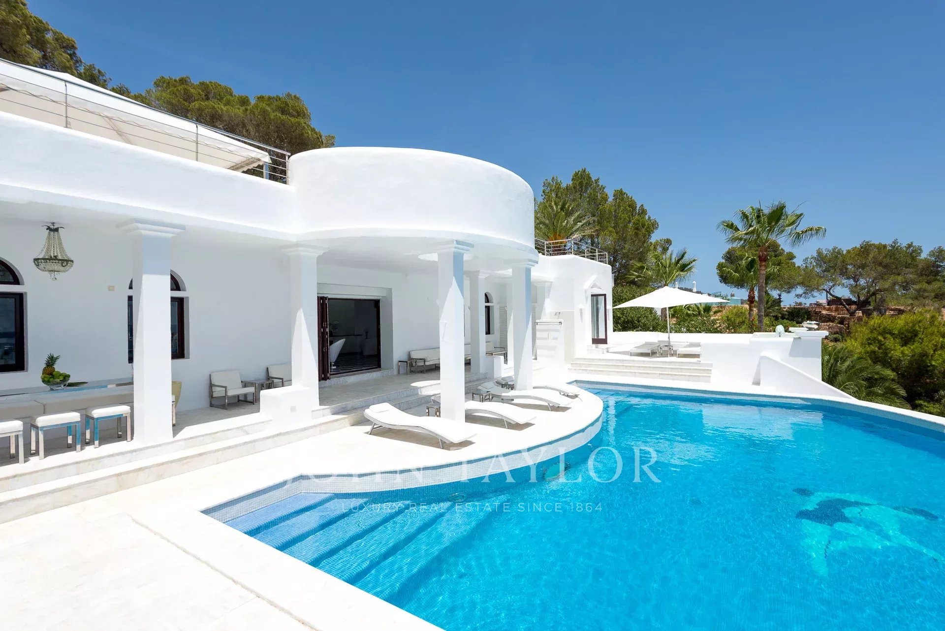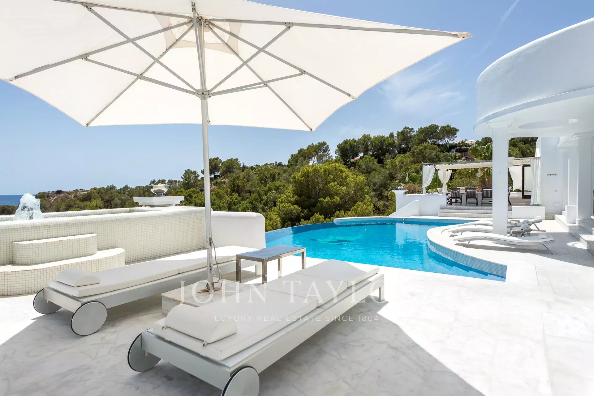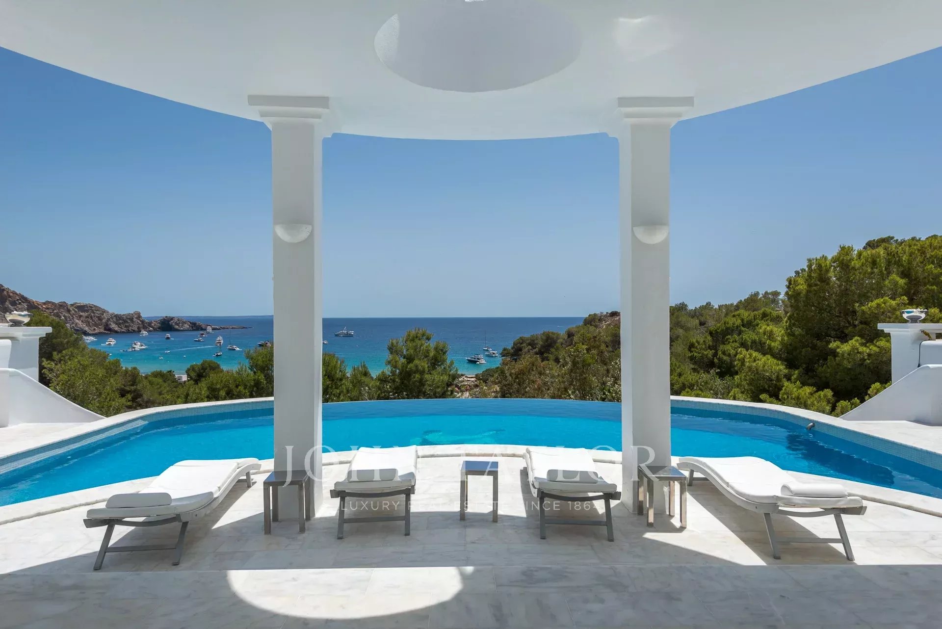 Villa de lujo con piscina infinita climatizada situada en la impresionante bahía de Cala Jondala pocos pasos de la playa