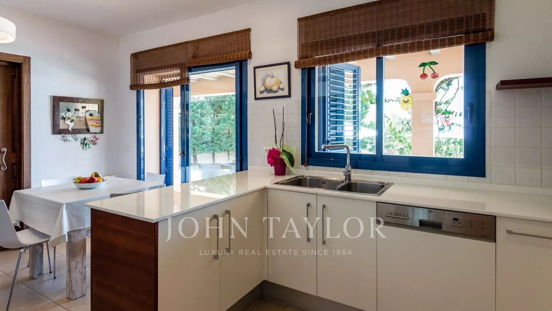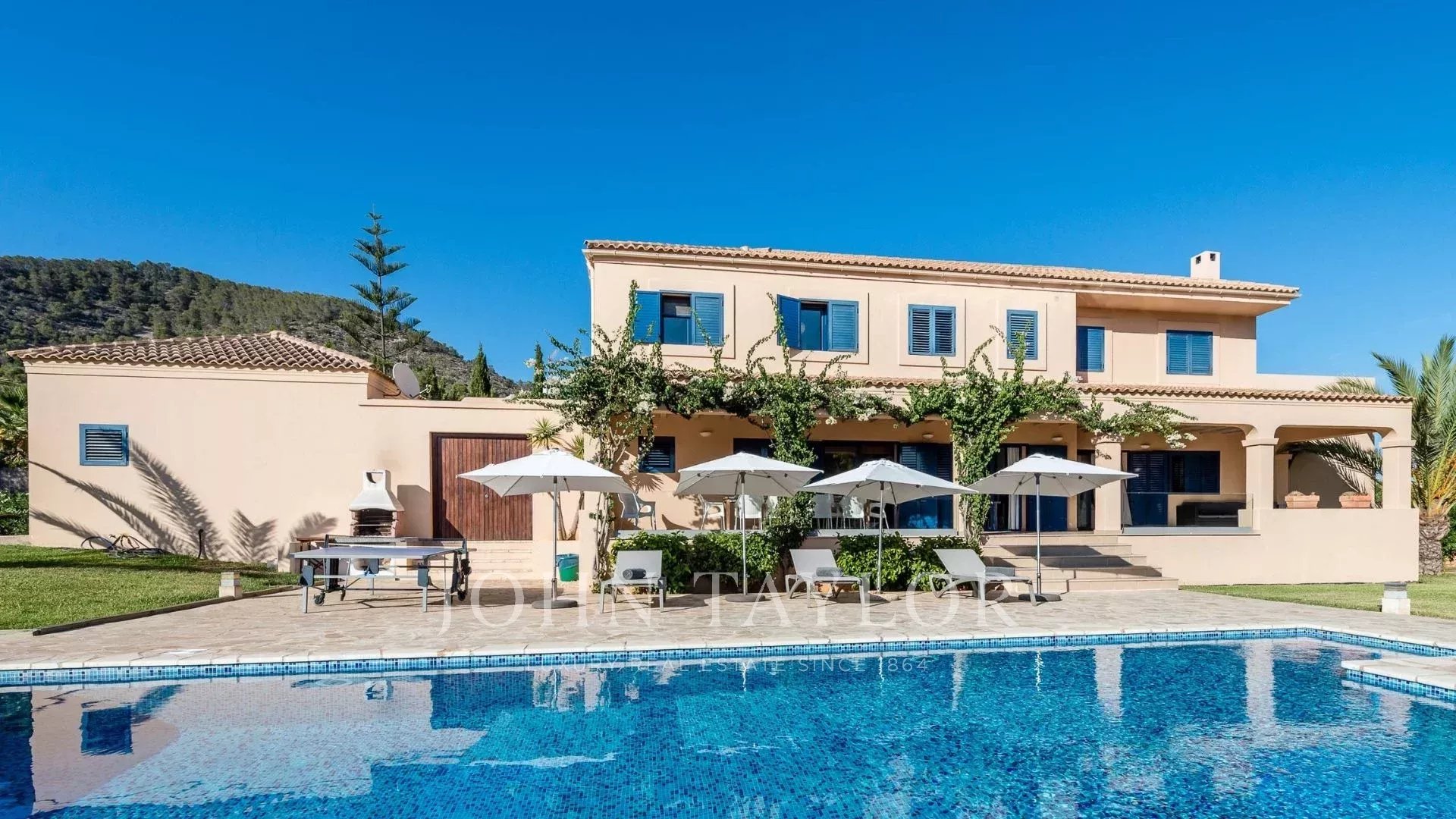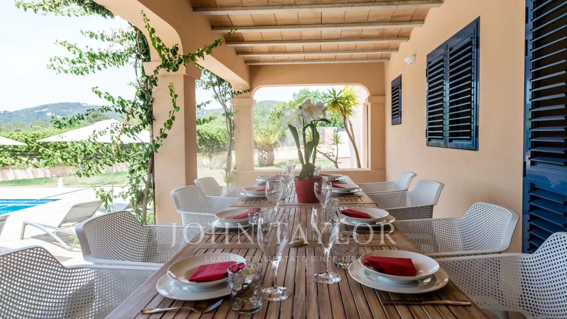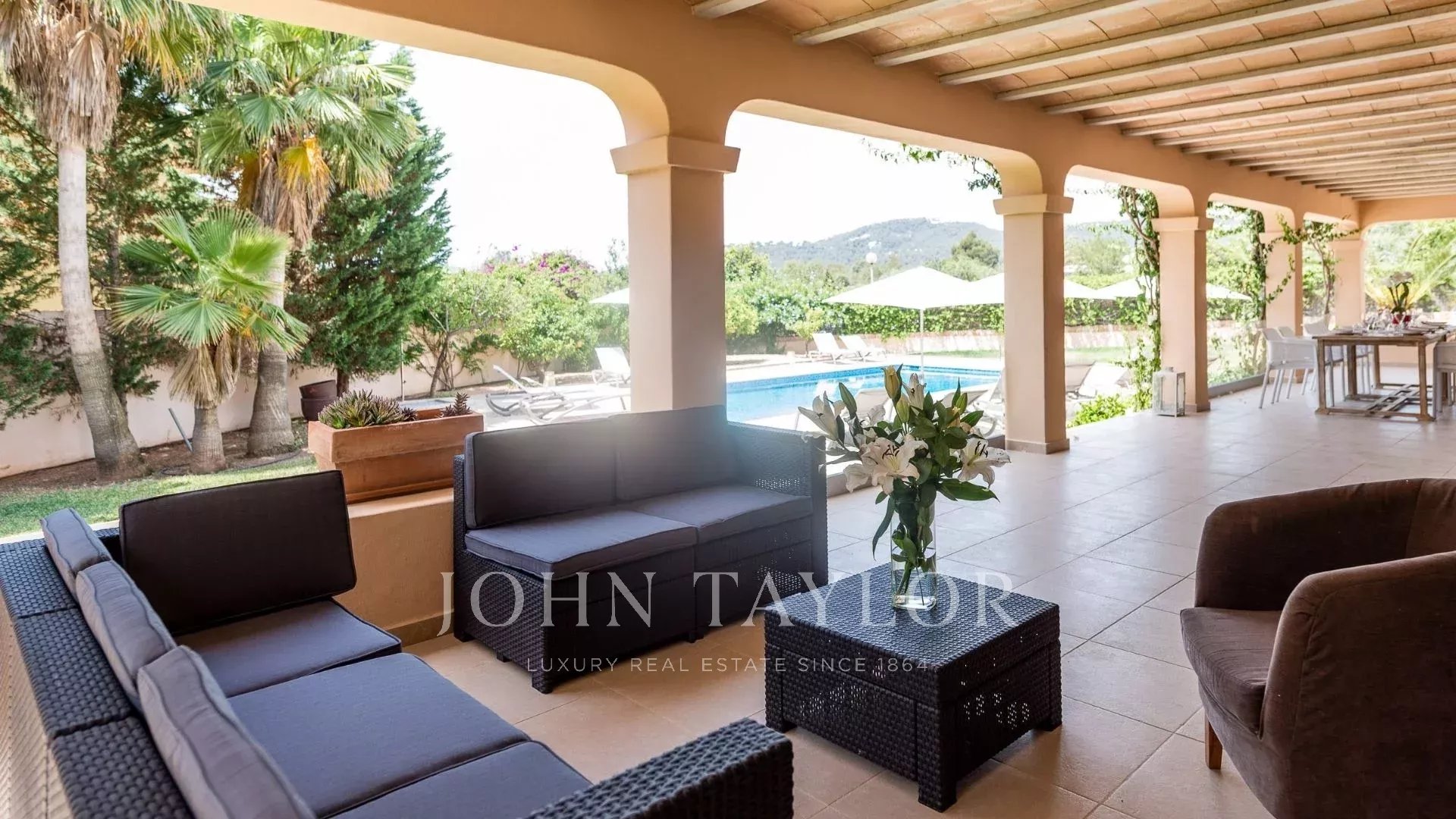 Fantástica villa de estilo rústico-mediterráneo situada a tan solo 6km de la ciudad de Ibiza y 2km de la playa más cercana.