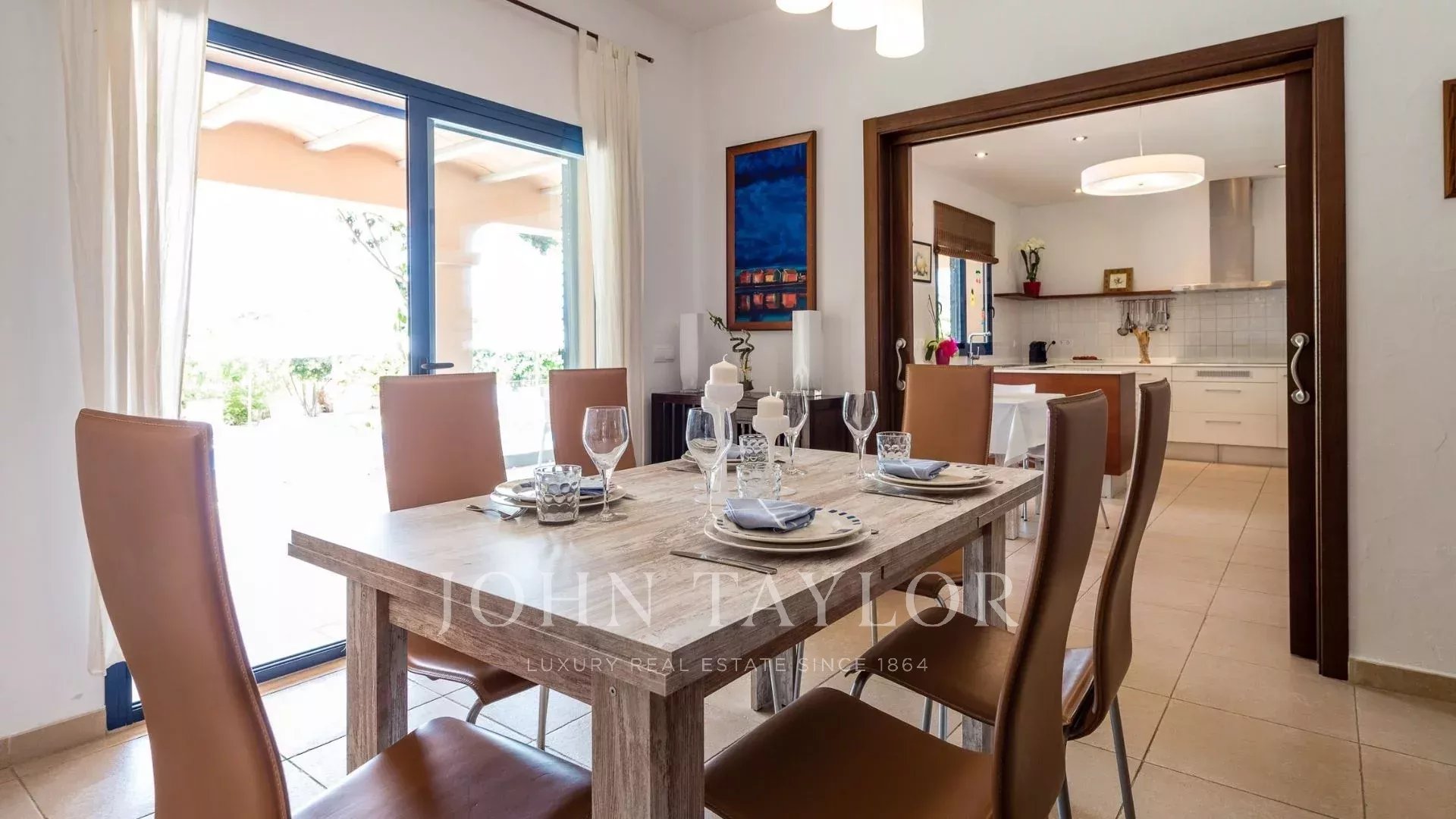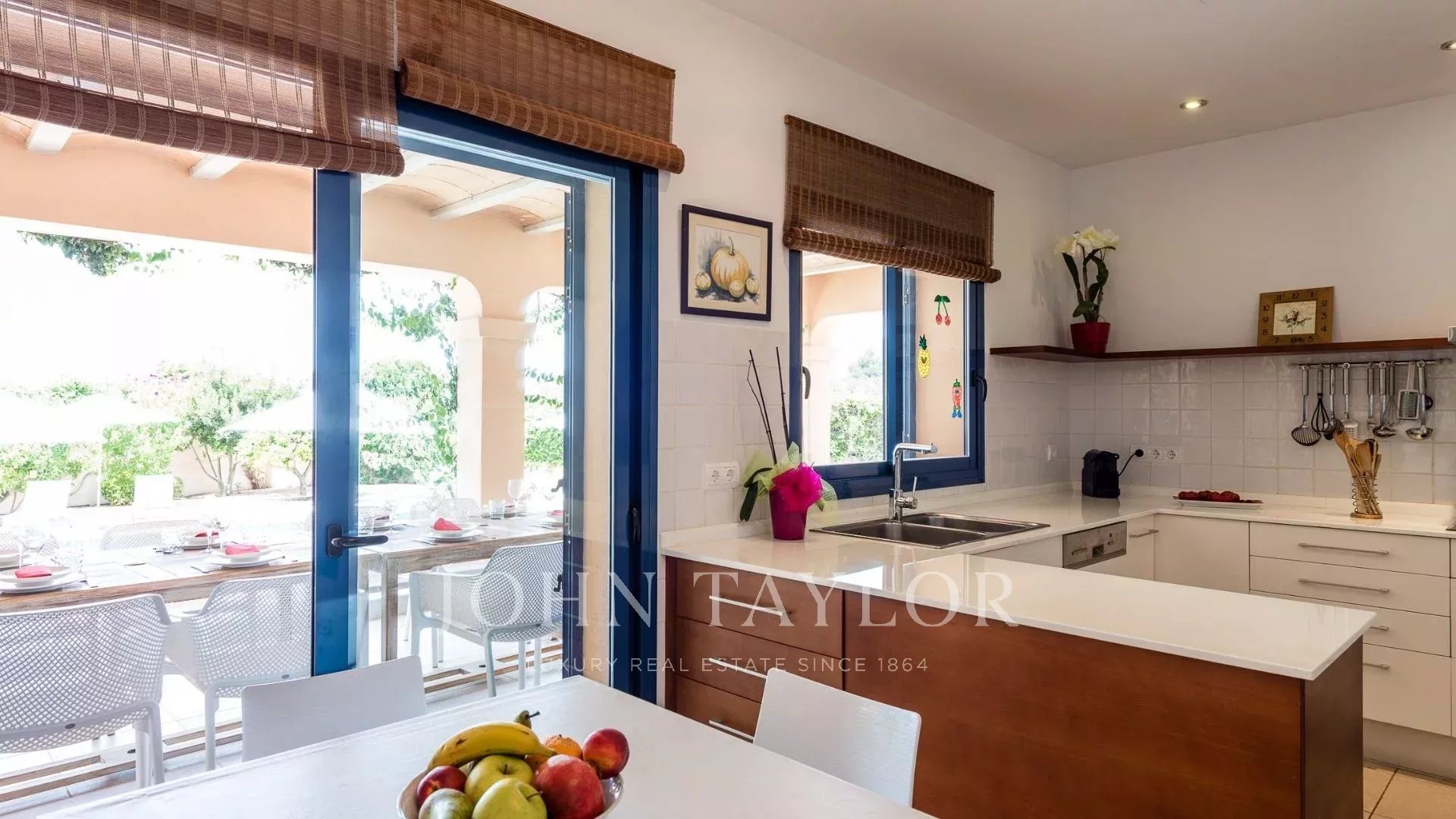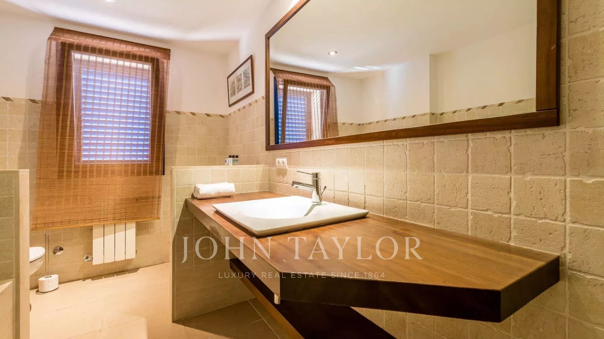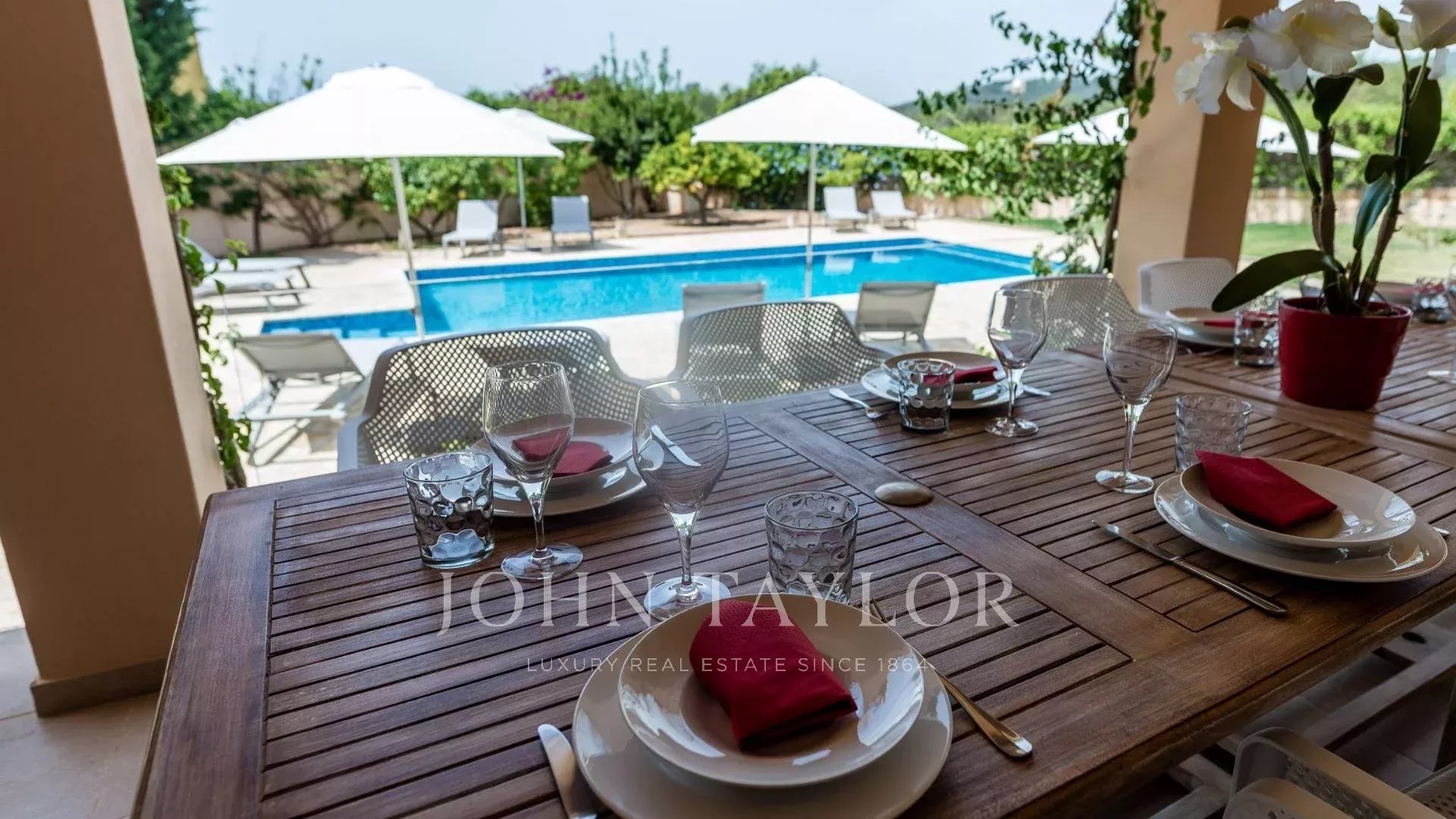 Fantástica villa de estilo rústico-mediterráneo situada a tan solo 6km de la ciudad de Ibiza y 2km de la playa más cercana.