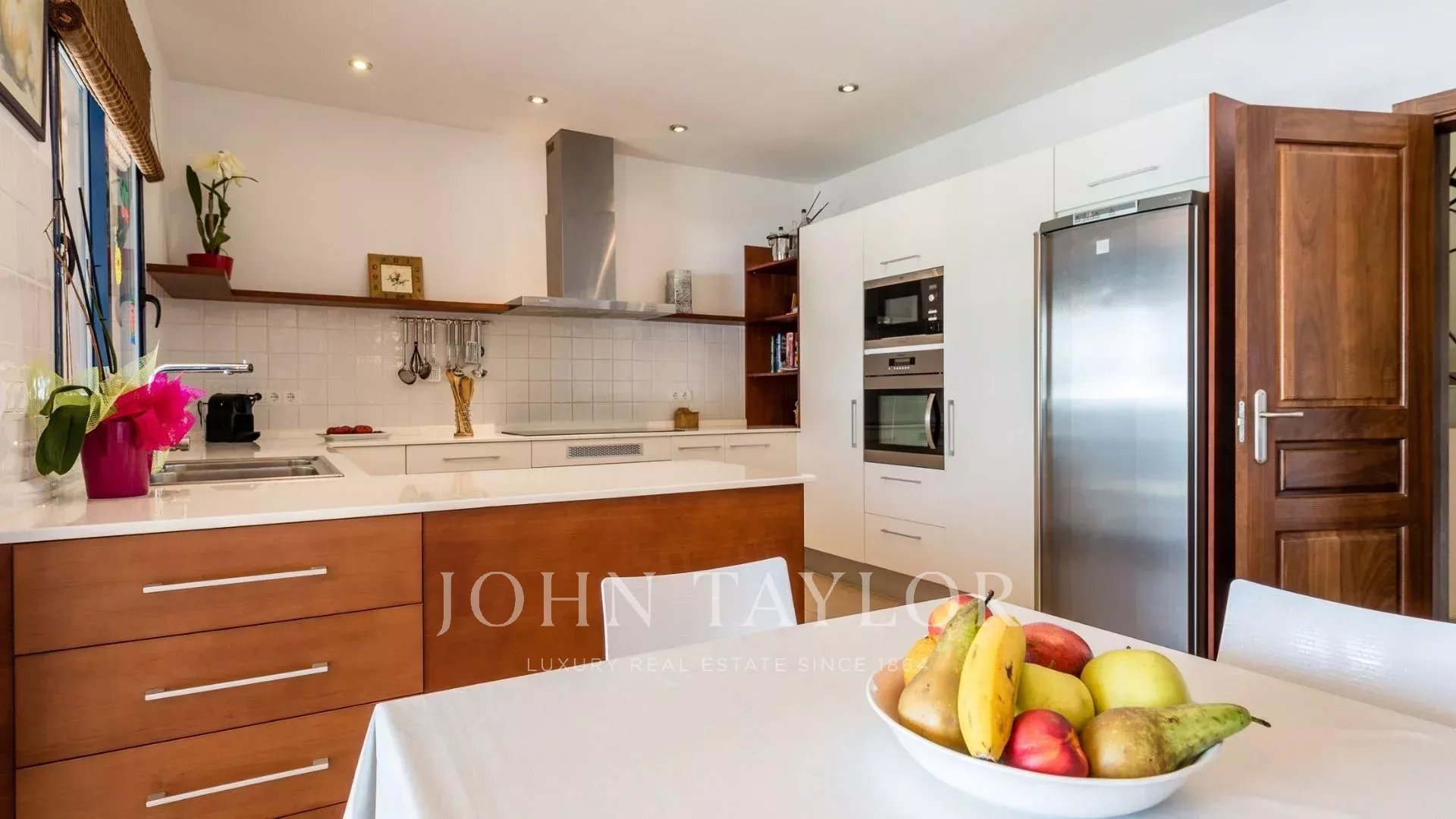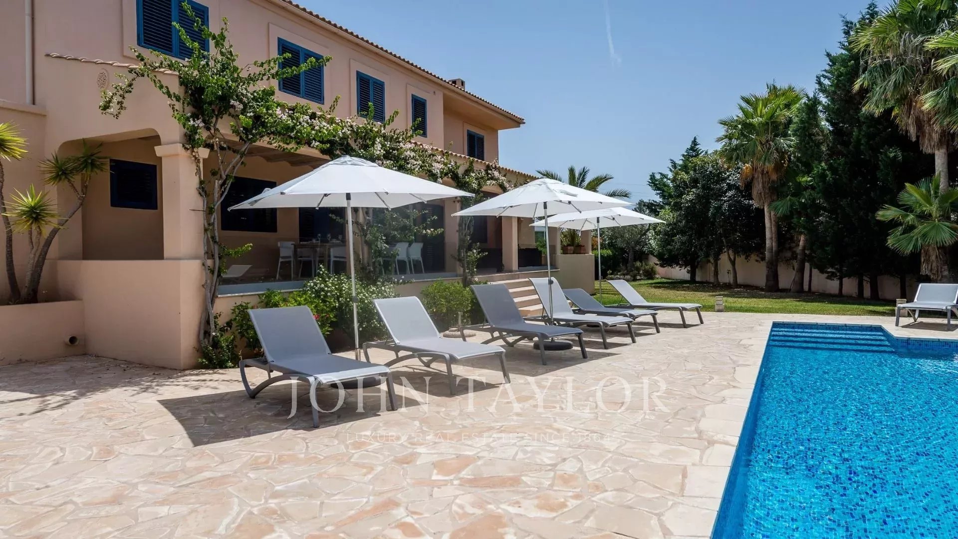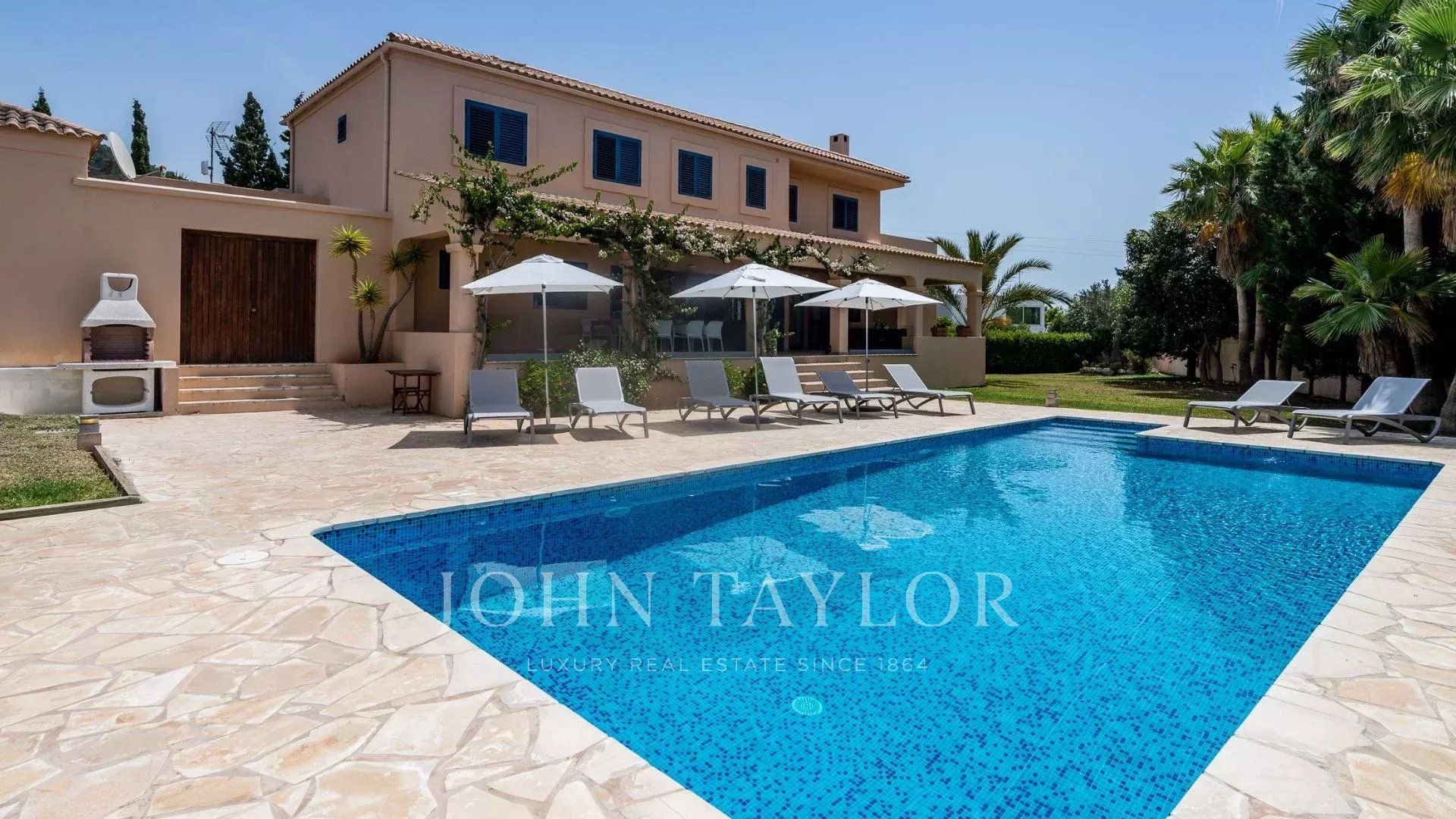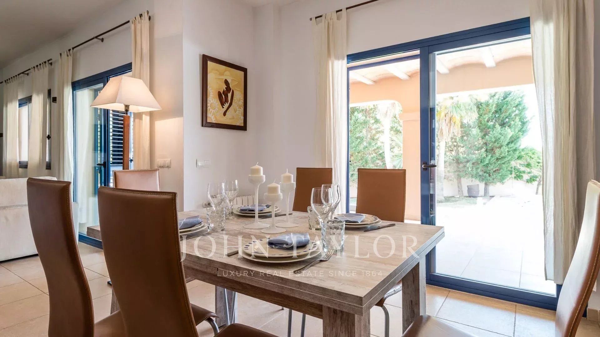 La villa cuenta con un amplio salón-comedor con chimenea con acceso directo a la zona de la piscina, una cocina totalmente equipada, cinco dormitorios dobles y tres cuartos de baño completos.