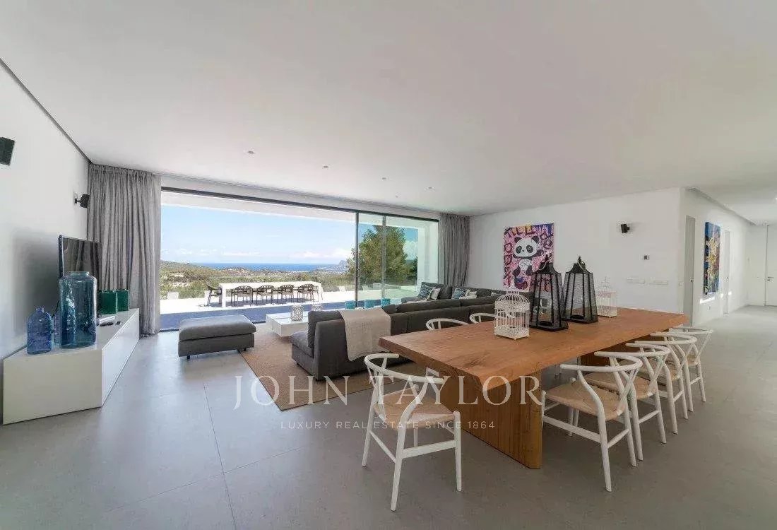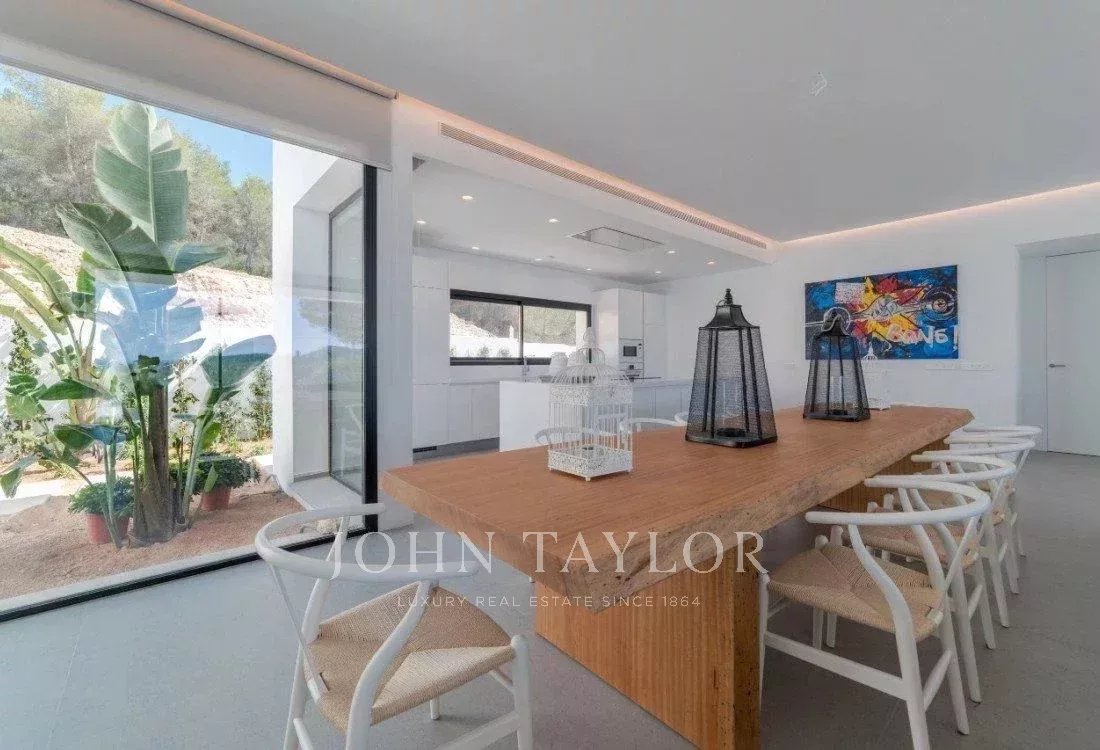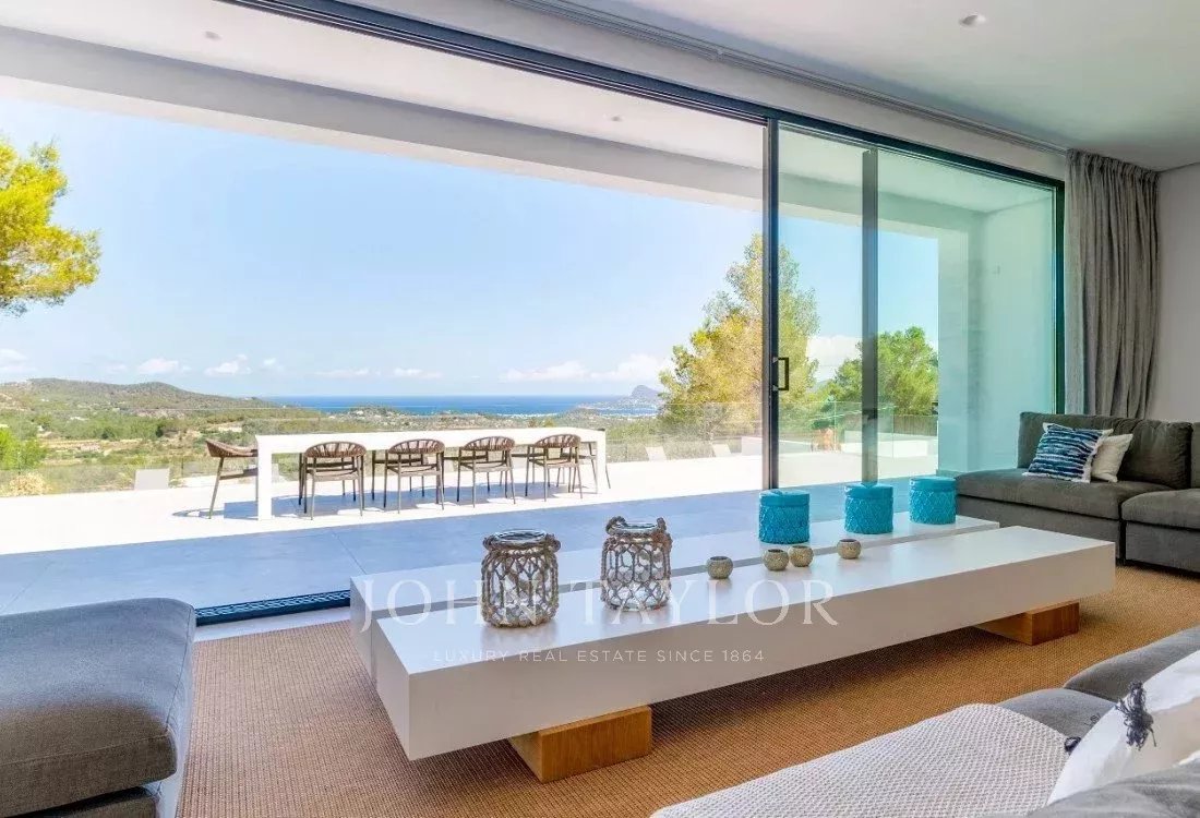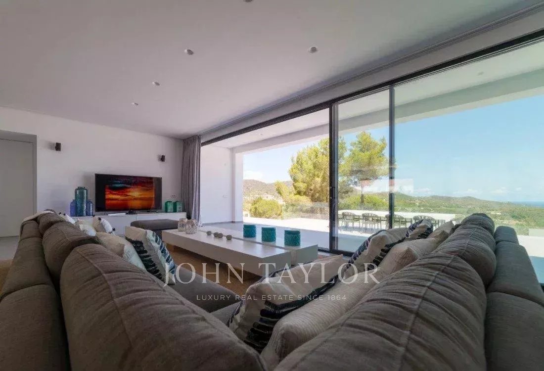 Espectacular villa de cinco dormitorios situada en una exclusiva zona montañosa a lo largo de la carretera de Sant Josep, en un entorno que combina privacidad total con una excelente conexión a la isla: a tan solo diez minutos en coche del aeropuerto y muy cerca de algunas de las mejores playas, restaurantes y clubes de Ibiza.