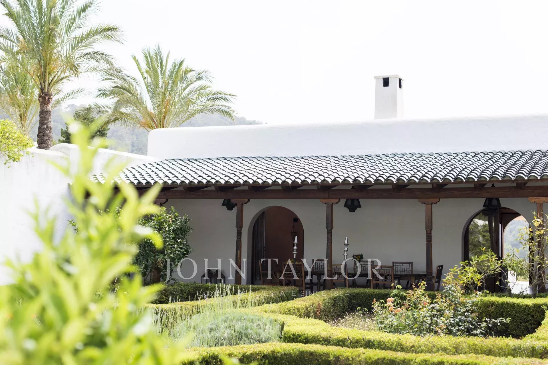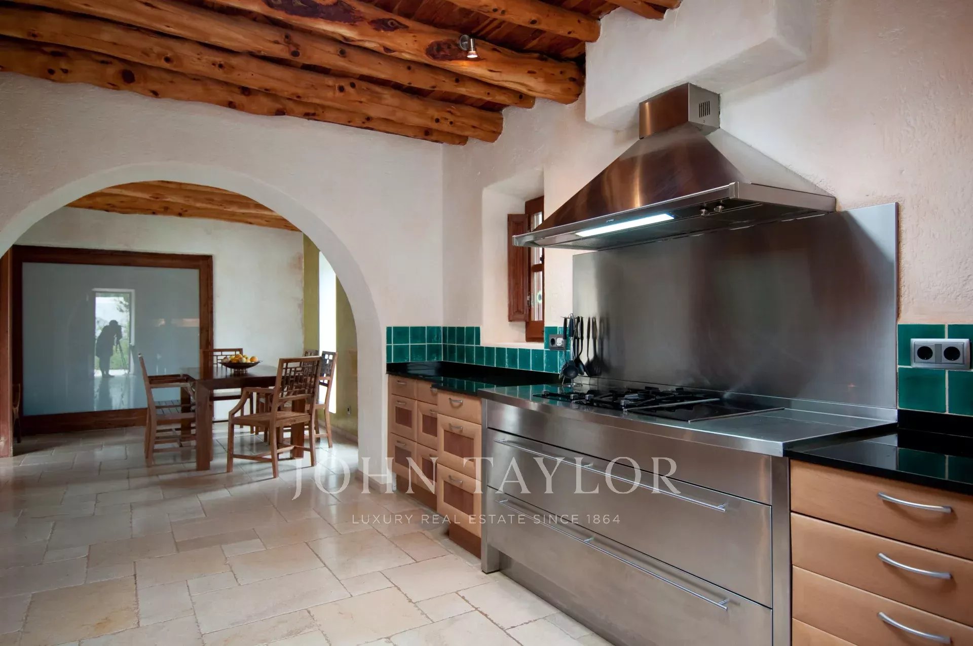 Villa ibicenca rodeada de bosques de pinos en el norte de la isla, con impresionantes vistas al Mediterráneo, y que cuenta con una magnífica piscina infinita, acceso directo a la playa y multitud de patios, jardines y zonas chillout que ofrecen espacio y privacidad.