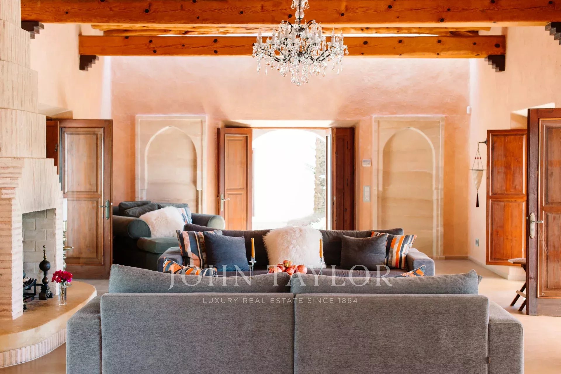 La villa es una de las favoritas de las revistas de alto nivel, como Conde Nast Traveller, para realizar sesiones fotográficas; es muy espaciosa y ofrece muchos rincones acogedores y zonas chillout para relajarse, y es el epítome del lujo ibicenco.