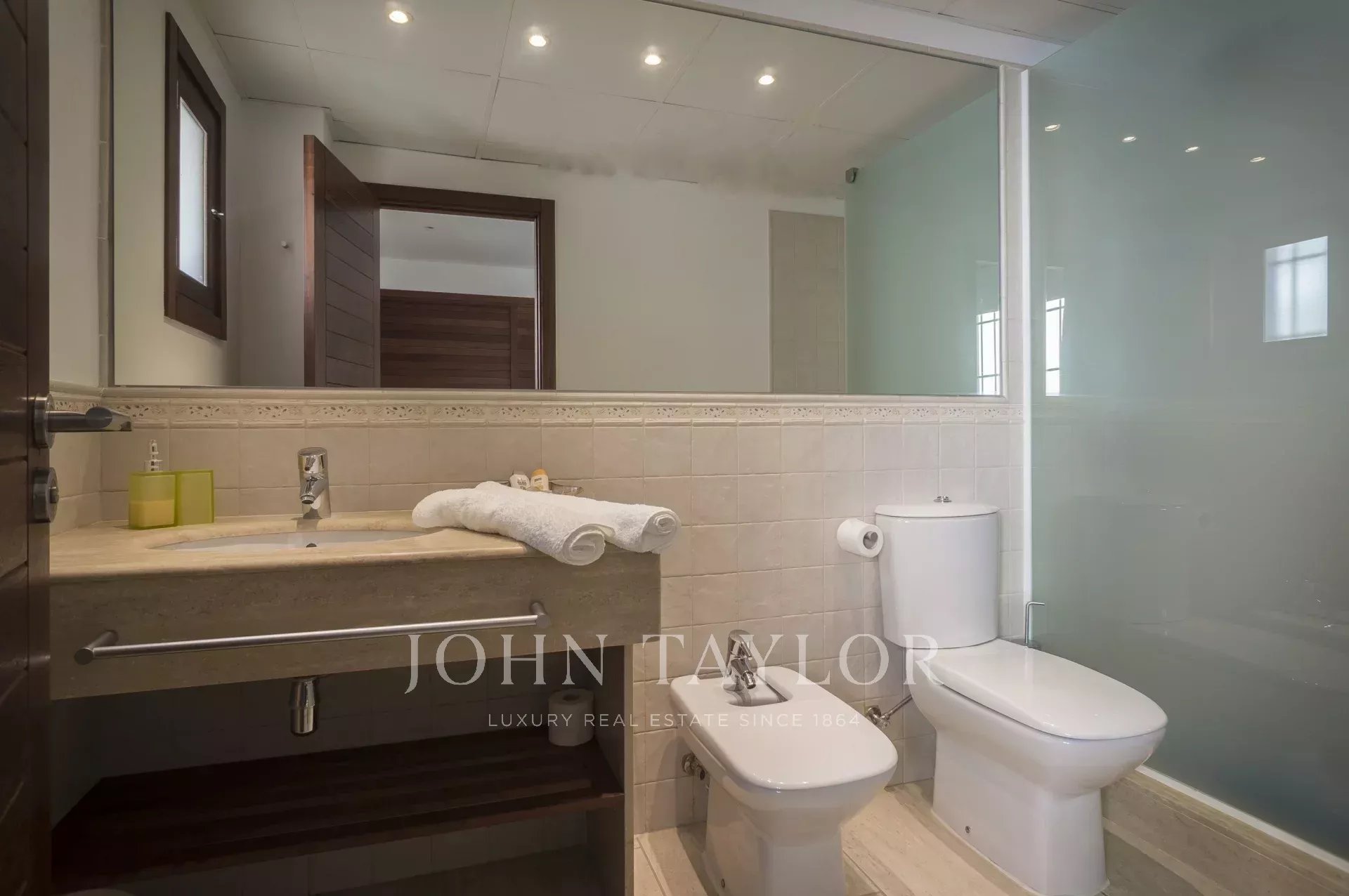 La propiedad está construida en dos niveles y tiene 360m2. Dispone de 5 dormitorios, 5 baños, aseo para invitados, un salón-comedor amplio y una cocina equipada con electrodomésticos de alta gama. Además, cuenta con una zona de almacenaje y un garaje.