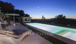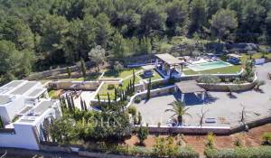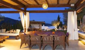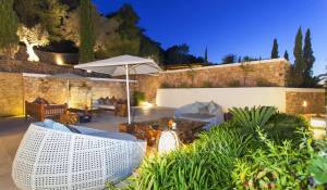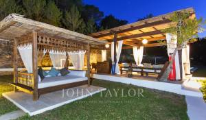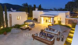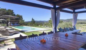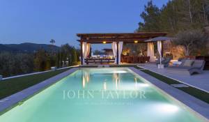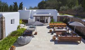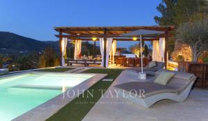 Esta finca fusiona la arquitectura tradicional ibicenca con toques balineses y una decoración contemporánea. La zona de la piscina, con impresionantes vistas, ofrece tumbonas, una cama balinesa con dosel y un gazebo con comedor y cocina al aire libre, creando el escenario perfecto para momentos inolvidables.