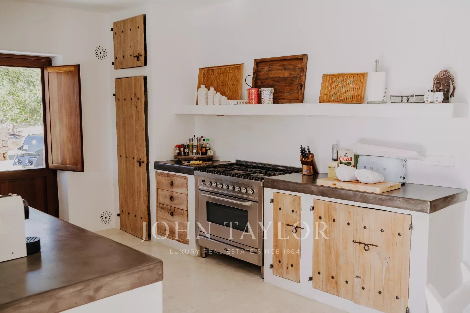 Disfruta de la auténtica esencia de Ibiza en Can Cantó, una finca Blakstad de 5 dormitorios que combina el encanto rústico con el lujo moderno. Ubicada en una zona privilegiada, a pocos minutos de Santa Gertrudis, esta propiedad ofrece privacidad, confort y un entorno natural excepcional.