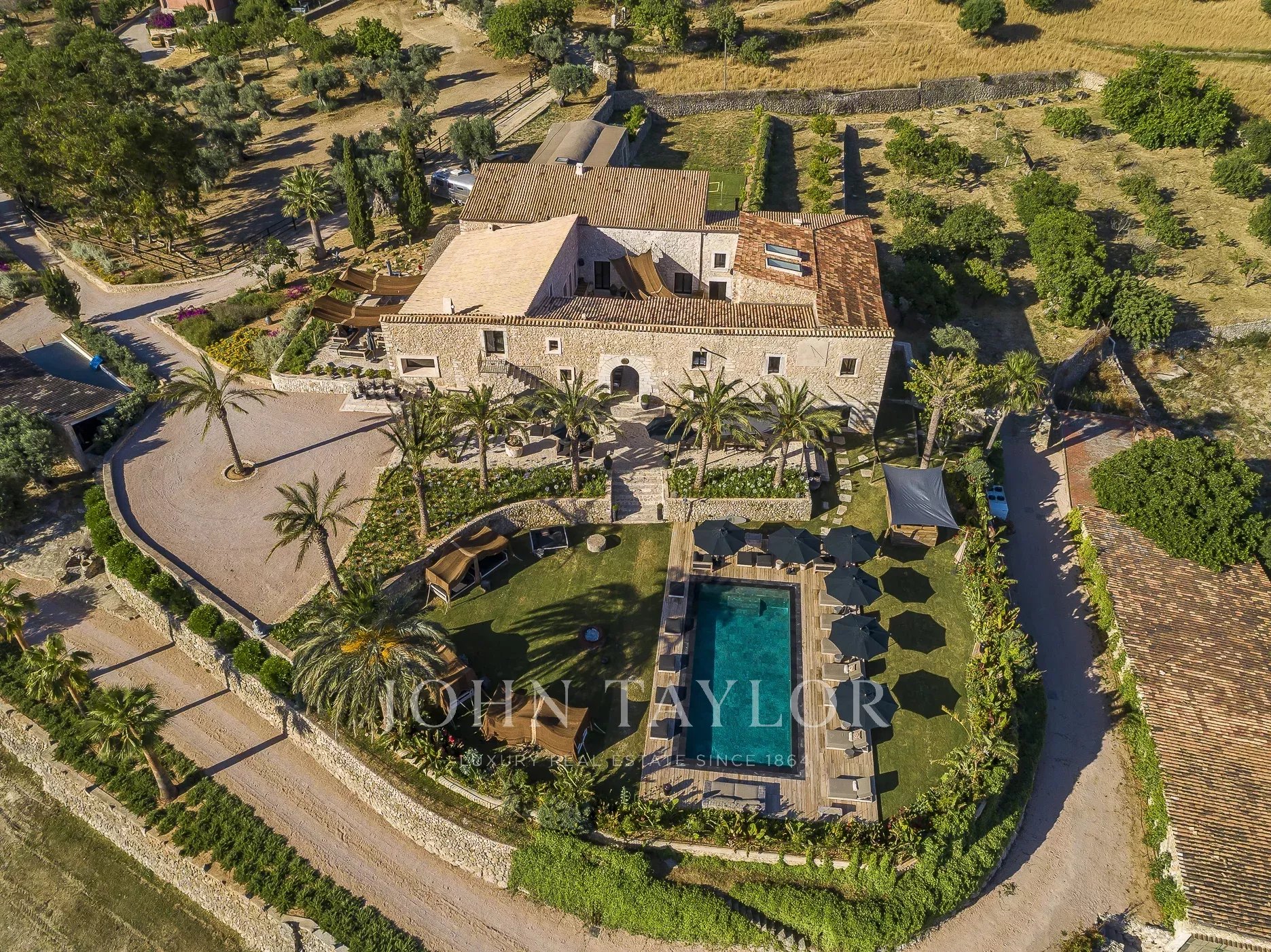 Esta propiedad única Spirit of Son Fuster ofrece a los visitantes un servicio exclusivo en un hotel privado de lujo. El hotel finca ofrece mucha privacidad y es ideal para reuniones de negocios o una estancia con amigos y familiares sin compromiso. Un servicio discreto que mantiene la privacidad está disponible las 24 horas del día. La finca puede alojar hasta 20 personas en 10 habitaciones dobles. Cada uno de los dormitorios cuenta con camas king-size, cuarto de baño en-suite y calefacción por suelo radiante. Varios comedores, salas de conferencias, cine, zona de spa y una discoteca privada ofrecen mucha variedad. Un chef profesional cumple las normas más estrictas y se adapta a cada visitante individualmente. Un concepto de comida rica, sana y fresca sin renunciar a la calidad espera aquí a los huéspedes. Una amplia zona de piscina con tumbonas y tiendas bereberes marroquíes ofrece mucho espacio para relajarse y tomar el sol. La zona de bienestar cuenta con un baño de vapor, una sauna de infrarrojos y una sauna tradicional. Junto a la zona de duchas hay una sala independiente para tratamientos de belleza y masajes. Alrededor del establecimiento hay pistas de footing y rutas de senderismo. También hay una sala de fitness bien equipada y una pista de pádel privada.