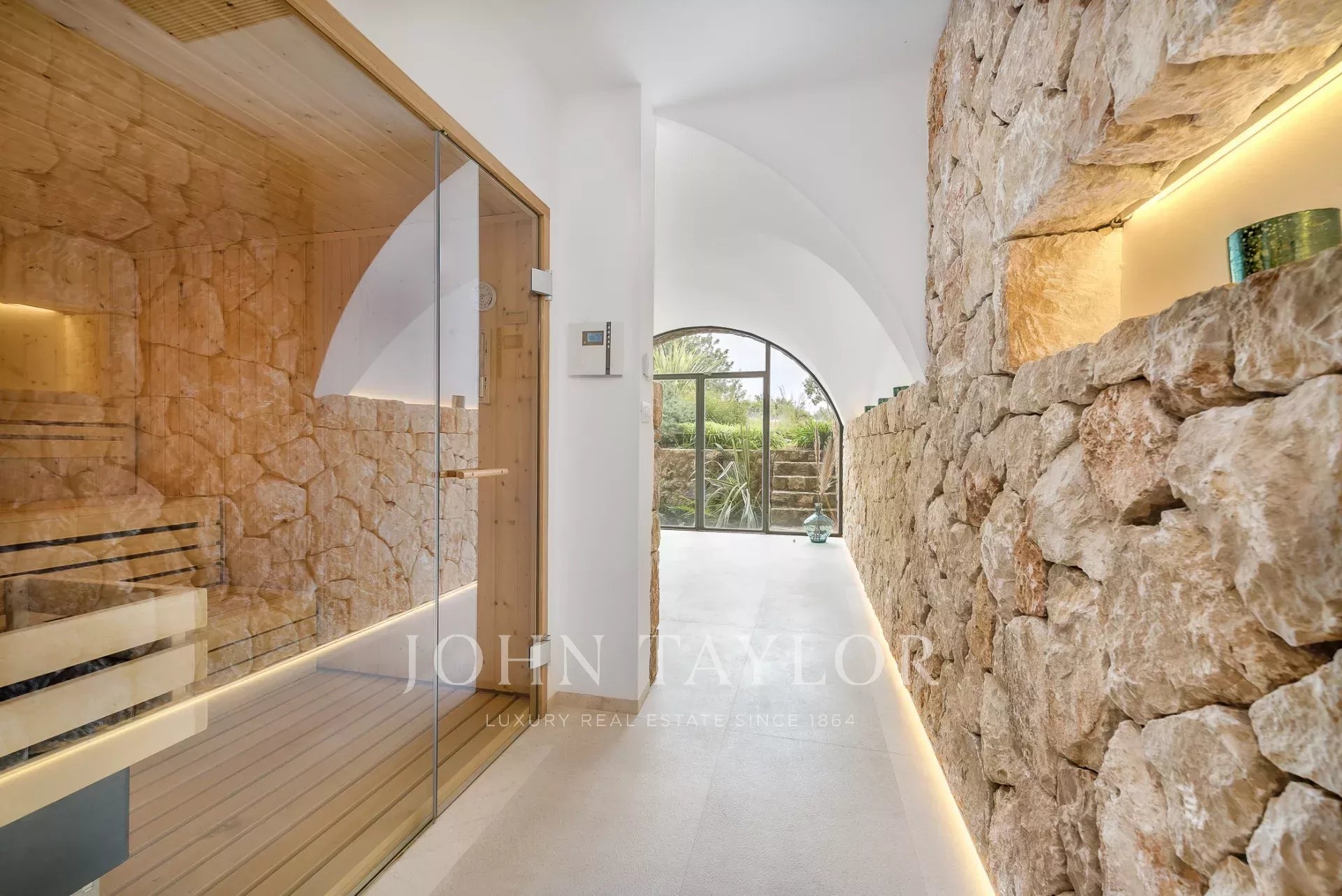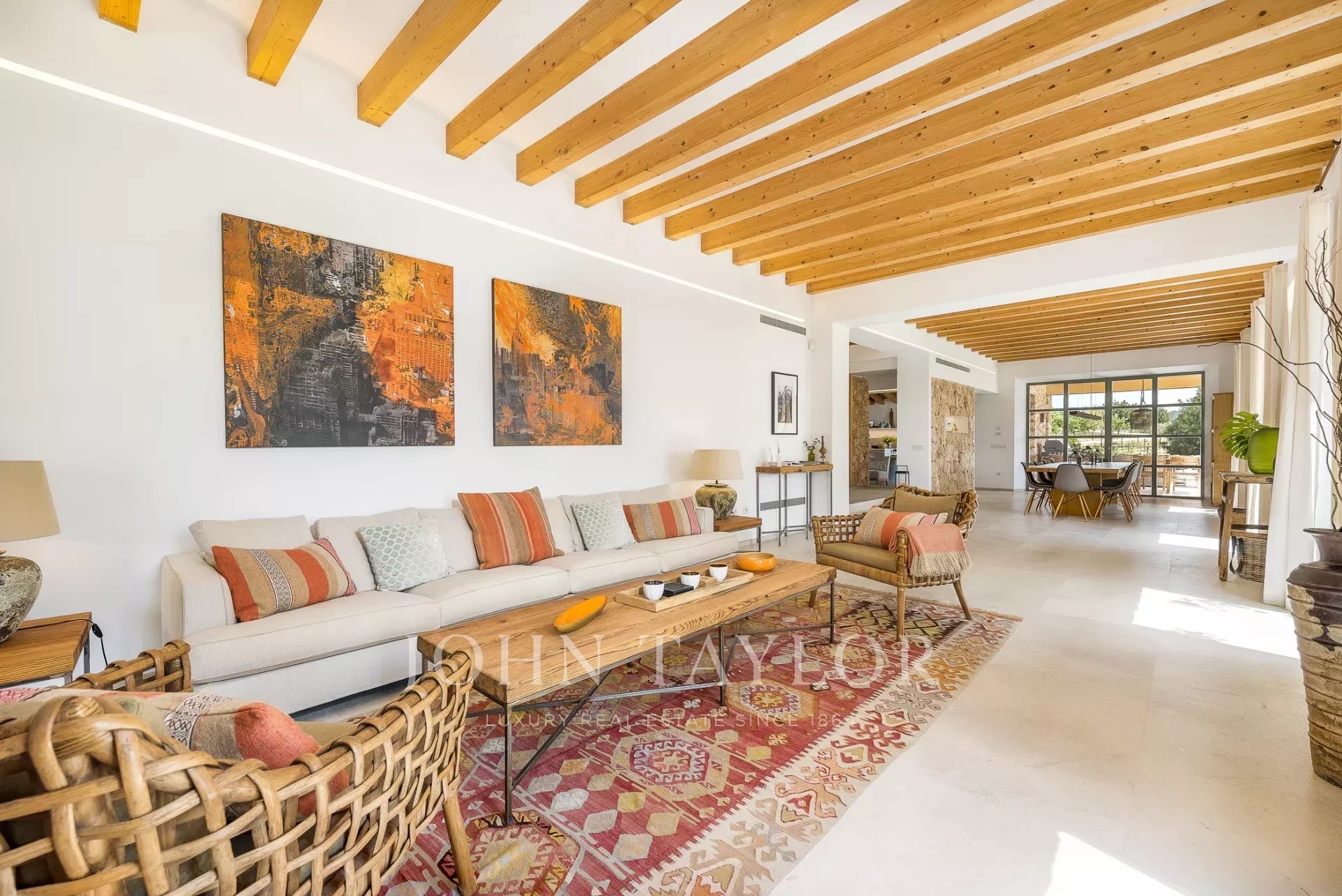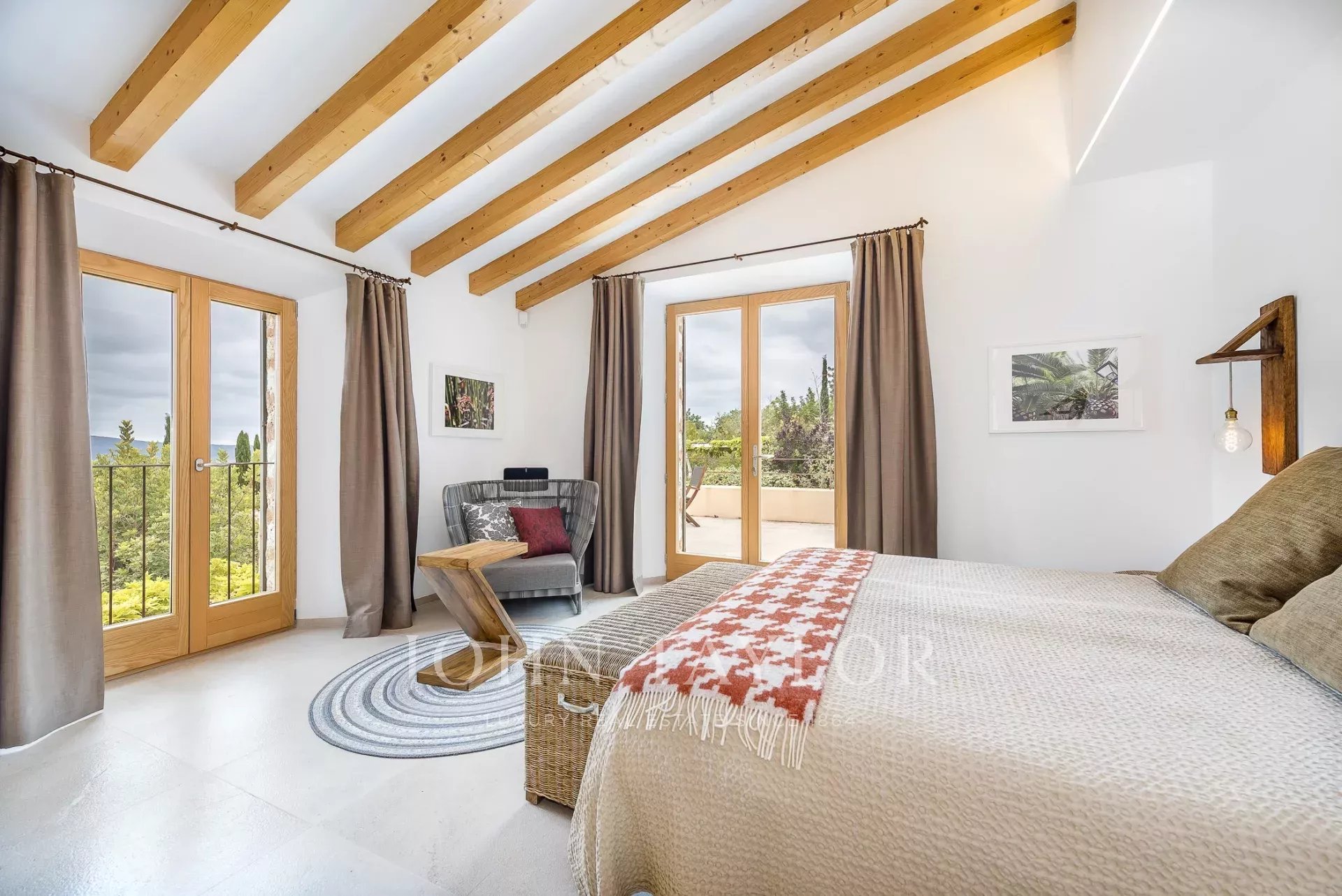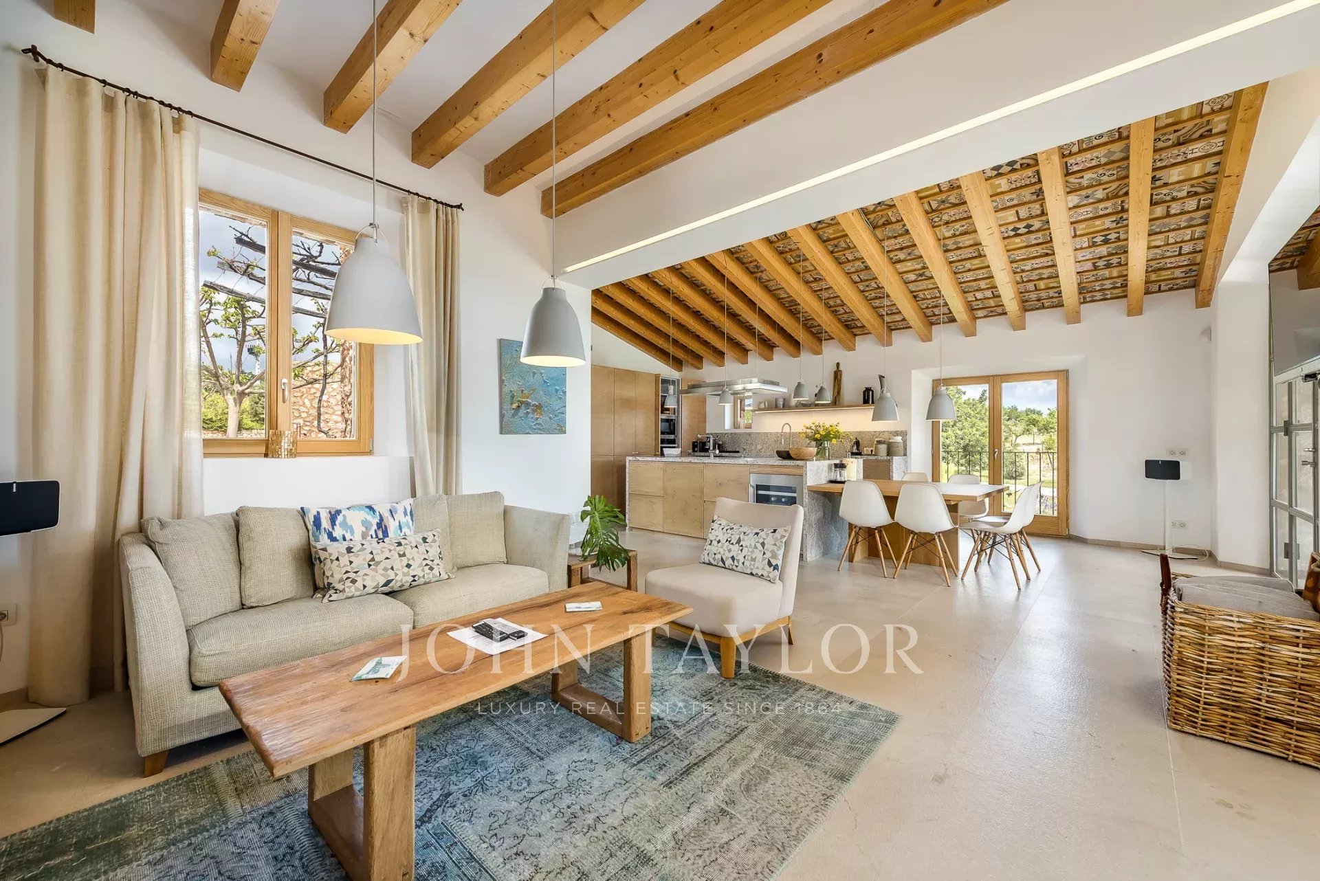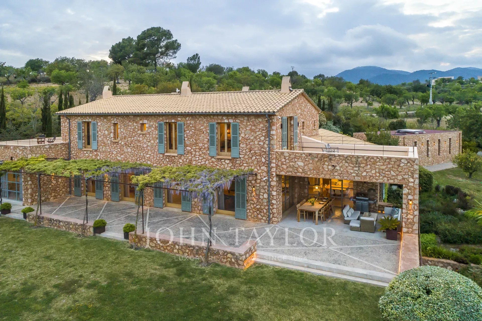 Esta encantadora finca de piedra natural se encuentra en las afueras de Santa María. Rodeada de un jardín mediterráneo y varias viñas con vistas al hermoso paisaje, esta finca cautiva por su auténtica construcción. De nueva construcción y ultramoderna sin perder el carácter típico y acogedor de Finca, se encuentra en una parcela de aprox. 4 hectáreas. Los 4 dormitorios ofrecen espacio para hasta 8 personas y se distribuyen en 3 plantas. Los grandes ventanales orientados al sur proporcionan mucha luz y otorgan una magnífica vista de la vegetación típica del país con olivos, almendros y algarrobos. Varias terrazas cubiertas y descubiertas con zonas chill-out y una gran piscina ofrecen espacio suficiente para disfrutar de la paz y el idilio del entorno. La casa está modernamente amueblada con colores y materiales cálidos, que proporcionan un ambiente especial de bienestar. La cocina es moderna y está totalmente equipada. Los huéspedes también tienen acceso a la sala de fitness de la propiedad.