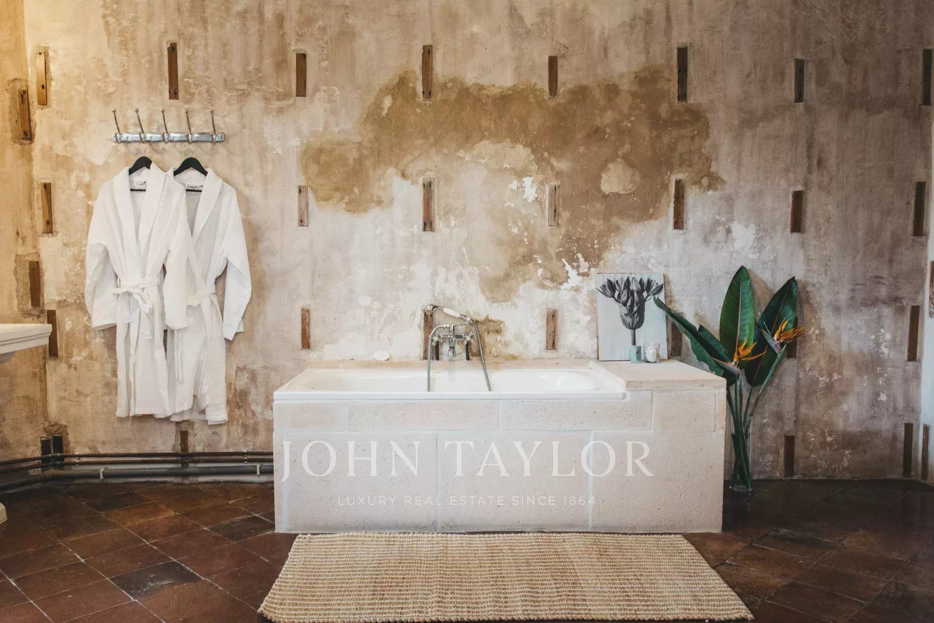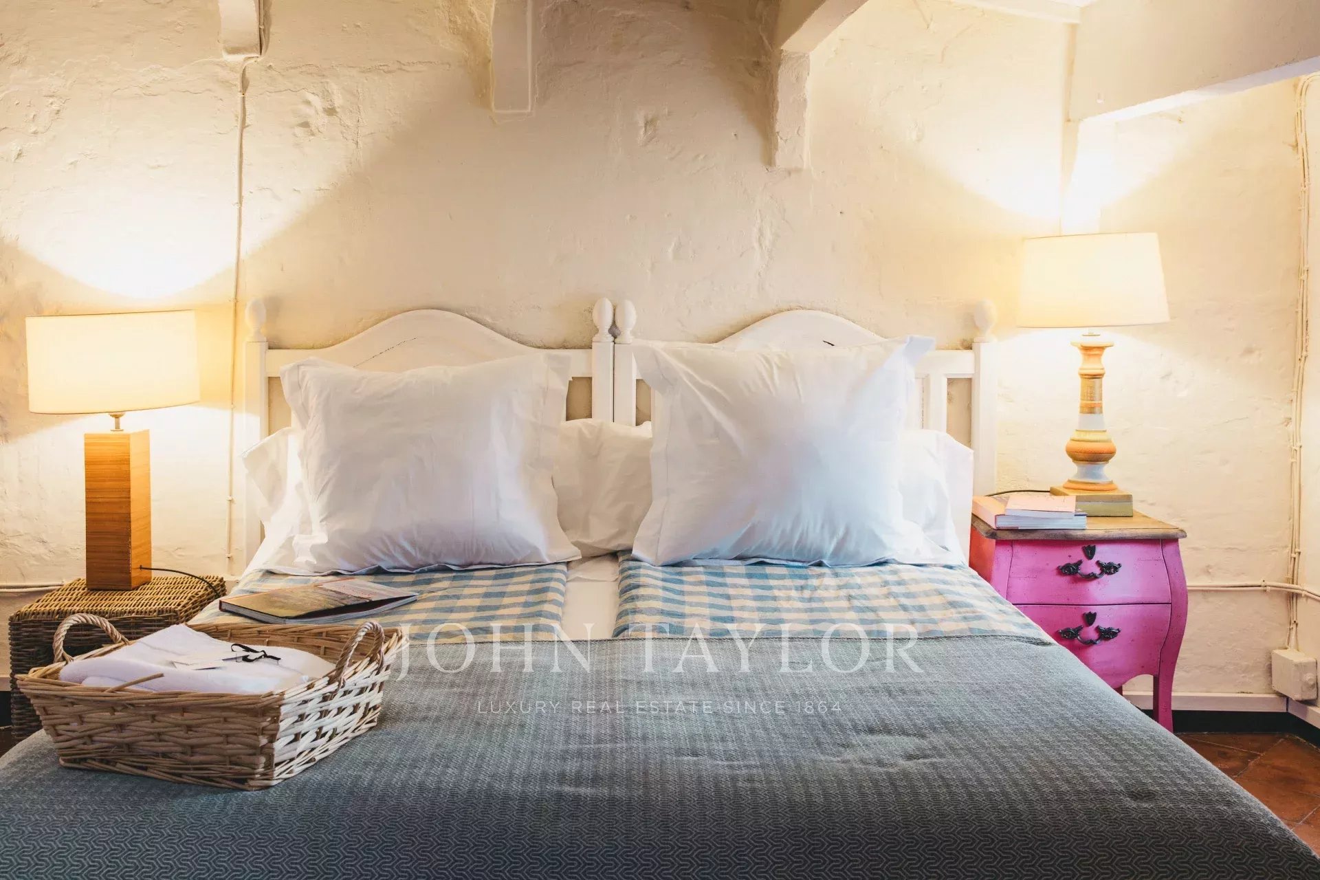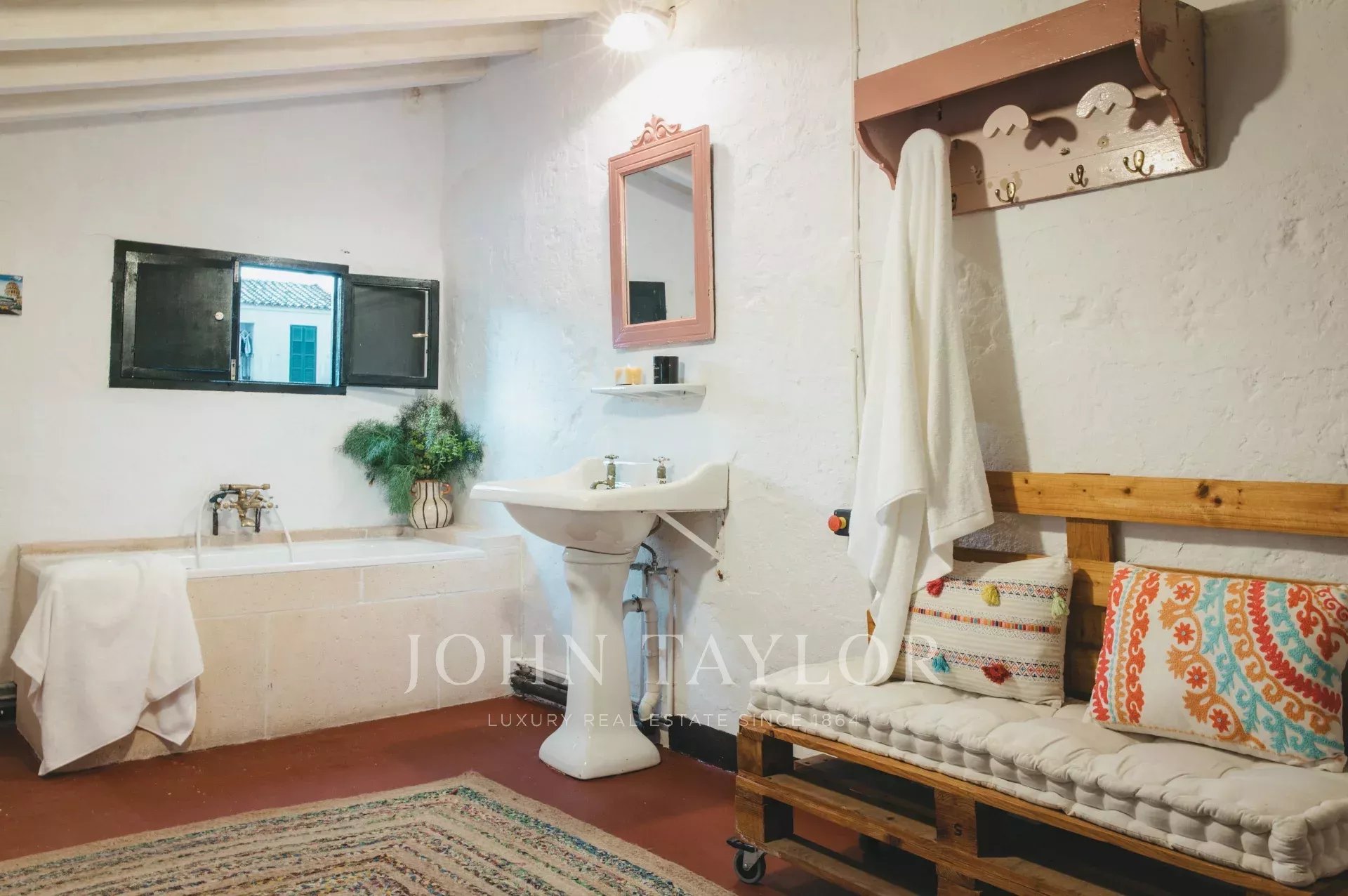 Distribuida en varias plantas, la propiedad ofrece cinco amplios dormitorios dobles, todos con baños en suite y detalles de diseño que realzan su elegancia: desde bañeras de estilo antiguo hasta una encantadora buhardilla infantil con baño propio. Los espacios comunes —como el salón con chimenea, el comedor de inspiración clásica y la cocina menorquina totalmente equipada— invitan a disfrutar de momentos memorables en un entorno acogedor y lleno de personalidad.