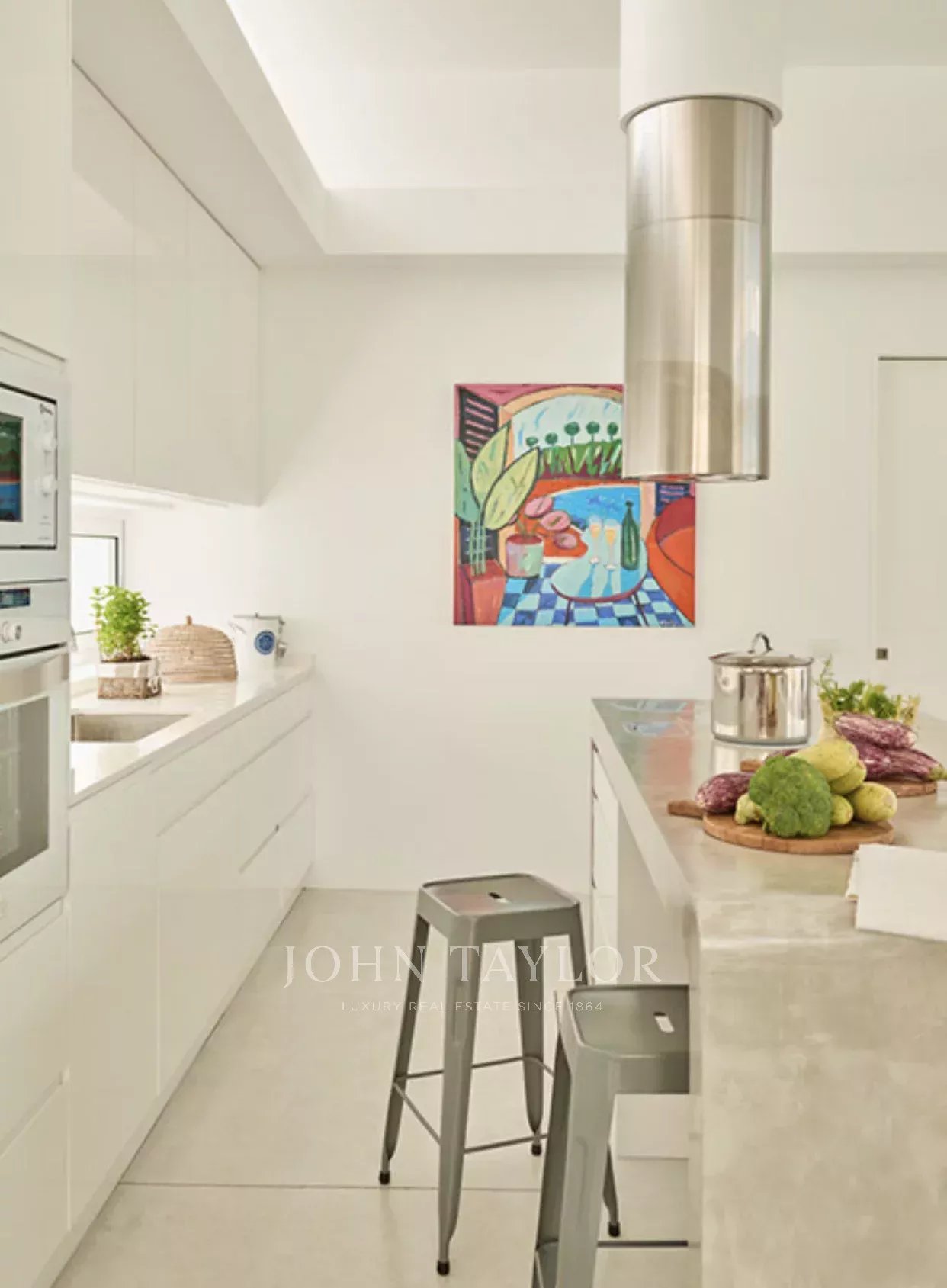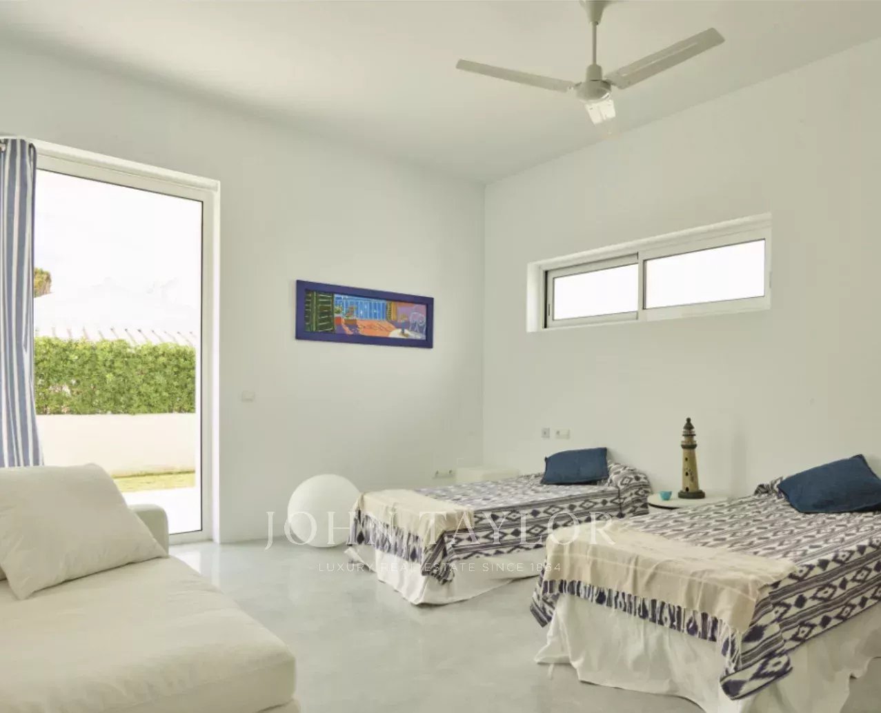 Villa Mare es una magnífica casa de diseño moderno situada en primera línea, con increíbles vistas y acceso al mar (dispone de boya con precio aparte). Está ubicada en la prestigiosa zona de Cap d’en Font, a 5 minutos caminando de la bonita playa de Binisafúa. El resto de playas del sur (Binidalí, Binibeca, Punta Prima) están a 5 minutos en coche, al igual que la localidad de San Luis, donde encontrará todo tipo de servicios (supermercados, restaurantes, bancos, farmacia, etc). La capital, Mahón, está a unos 10 minutos en coche.