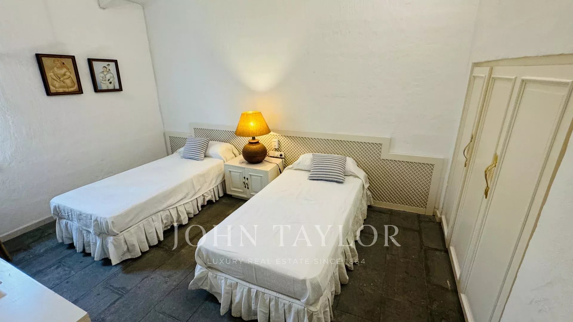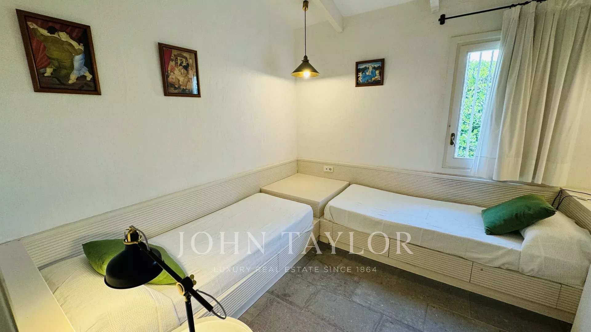 Dispone de 3 cuartos de baño y 4 dormitorios con 2 camas de matrimonio y 4 camas individuales en total, con capacidad para 8 personas.