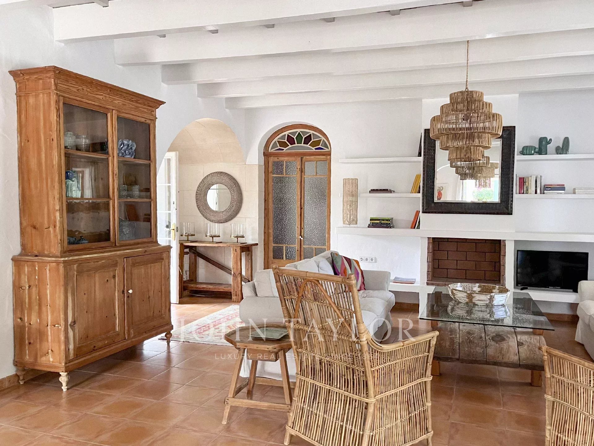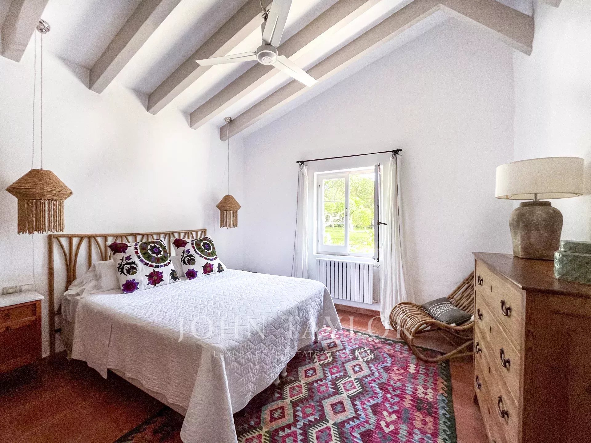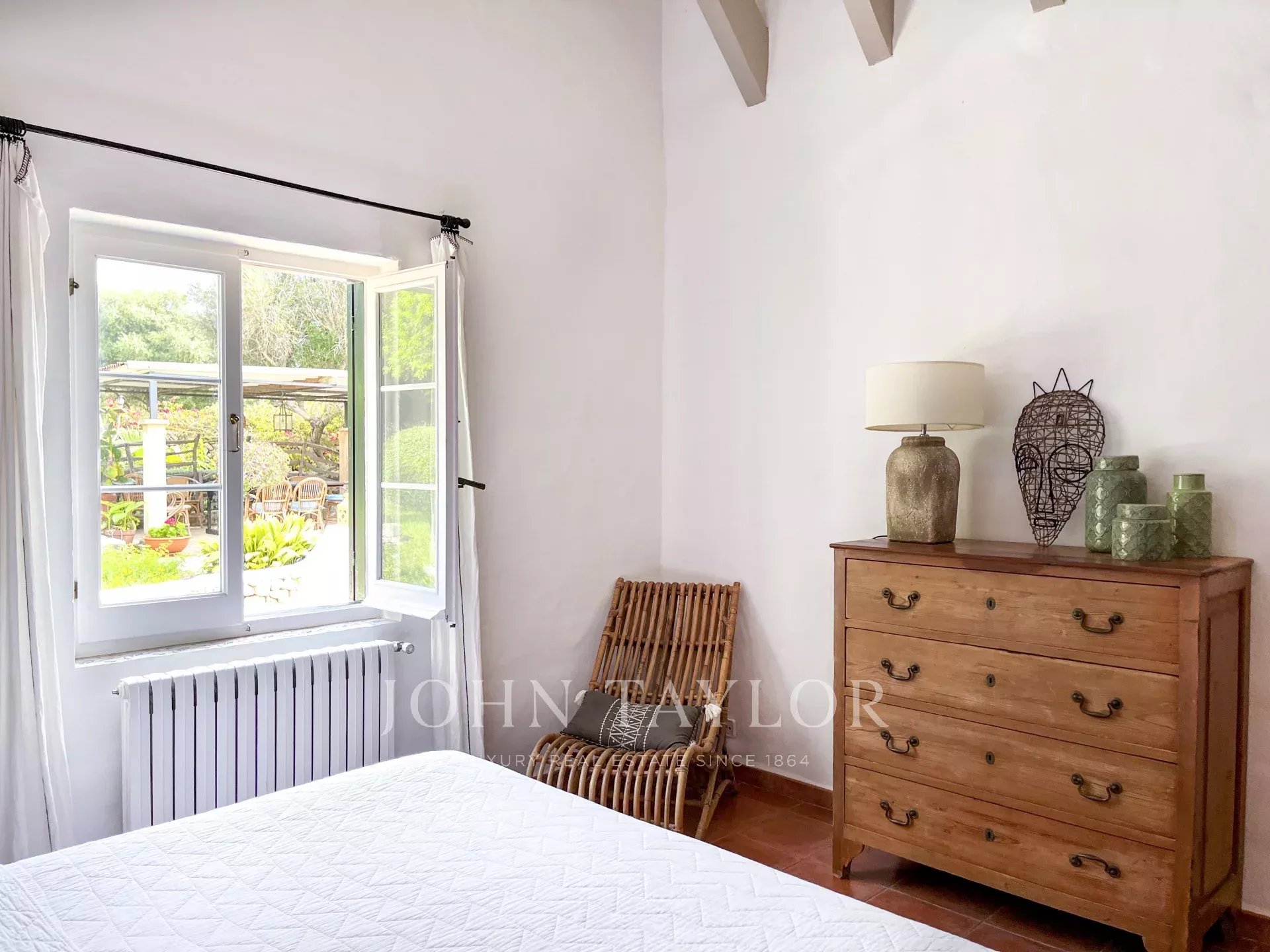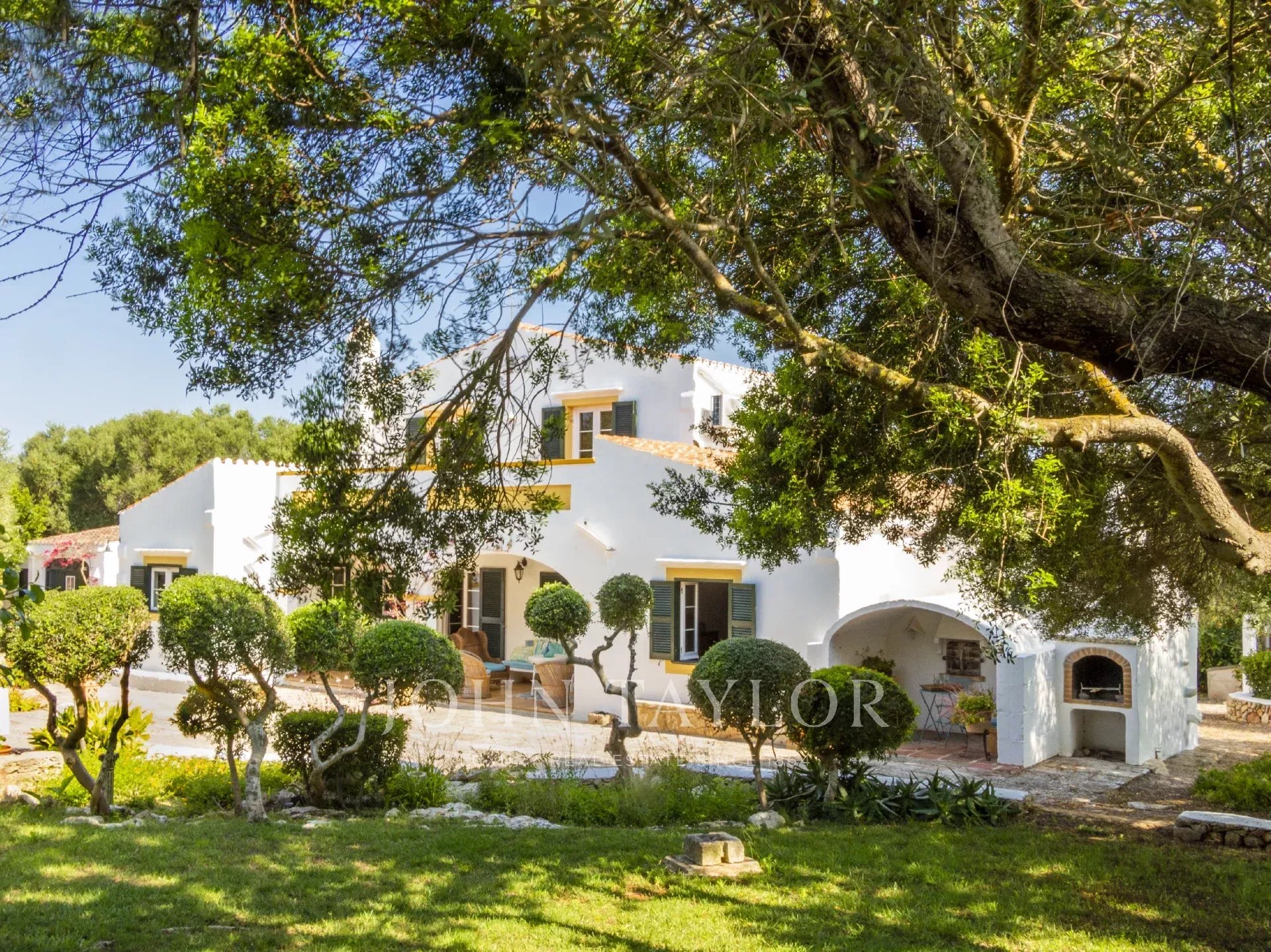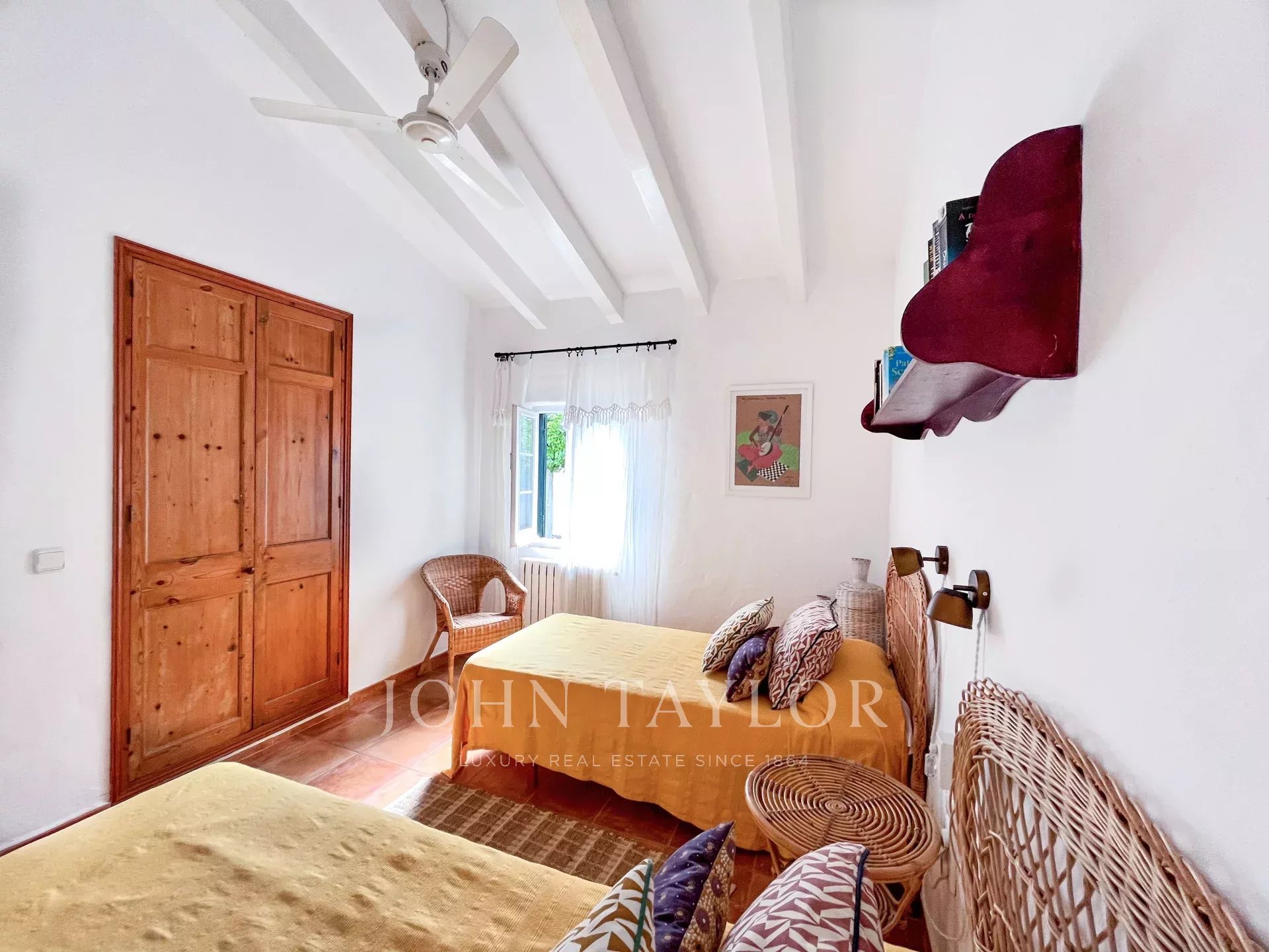 Esta preciosa casa típica menorquina está situada en el bonito paraje rural de S´Uestrá / Biniali, muy cerca del pueblo de Sant Lluís, donde se puede encontrar todo tipo de servicios (tiendas, bares, restaurantes, bancos, farmacia). Las playas de Binibeca y Binissafúller están a unos 5 minutos conduciendo. Es imprescindible disponer de vehículo. Exterior: El terreno que pertenece a la casa tiene aproximadamente 11.000 metros cuadrados. La piscina está situada en la cara este de la casa y mide 10 x 5 metros. Cerca de la piscina hay un zona cubierta para comer al aire libre. El porche de la casa cuenta con sofás de obra típicos menorquines. El terreno tiene amplias zonas de césped, olivos y varias áreas muy tranquilas donde uno se puede relajar a la sombra. Interior: Casa San Andrea tiene unos interiores con gran atención a los detalles y se ha construido con materiales tradicionales de la isla, recreando un ambiente antiguo pero con el confort para la vida moderna. Casa Principal (dos plantas) para 10 personas: Planta Baja: en la parte central de la casa se encuentra el salón y la cocina, ambos con acceso a la terraza delantera. Desde aquí se accede a una zona donde se encuentra 1 habitación de matrimonio (1,60m) con AA y 1 habitación doble (dos camas individuales) con AA, que comparten un baño completo con bañera. Y en la otra parte de la casa hay 1 habitación doble (2 camas individuales), 1 baño con cucha, 1 aseo y el lavadero. Primera Planta: 1 habitación de matrimonio (1,60m) con AA con baño completo en-suite y 1 habitación de matrimonio (1,50) con AA con cuarto de baño con ducha en-suite. Ambas habitaciones tienen acceso a una terraza con bonitas vistas al campo. Todas las habitaciones tienen ventilador en el techo. Casita Anexo para 2 personas: Situada a 100m de la casa principal: porche, salón, 1 habitación doble, 1 baño con ducha y pequeña cocina. Nota: la casa principal dispone de calefacción para los meses fríos (consultar precio adicional).