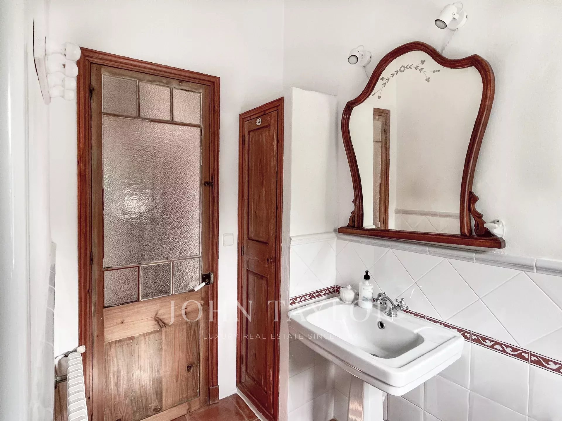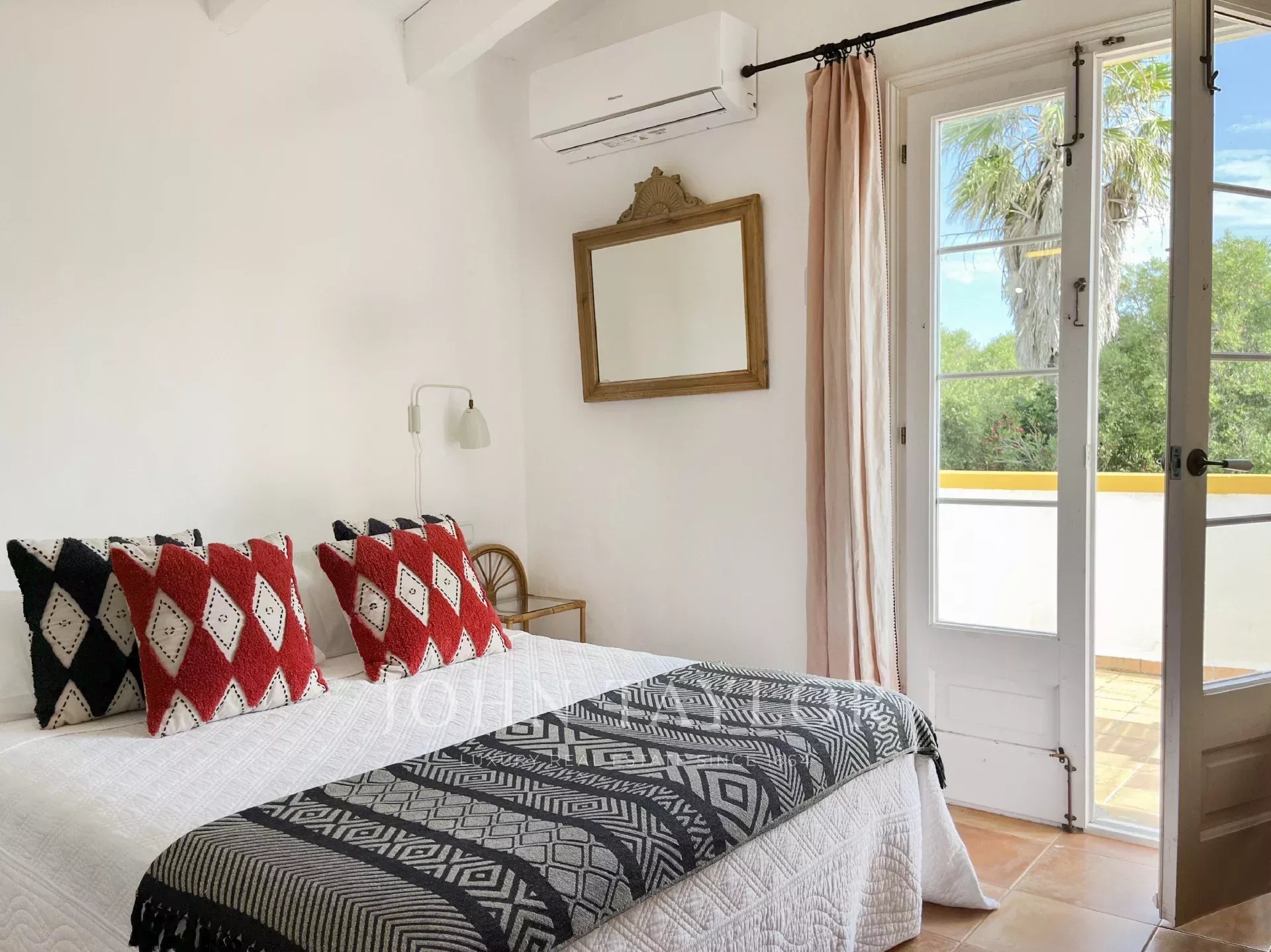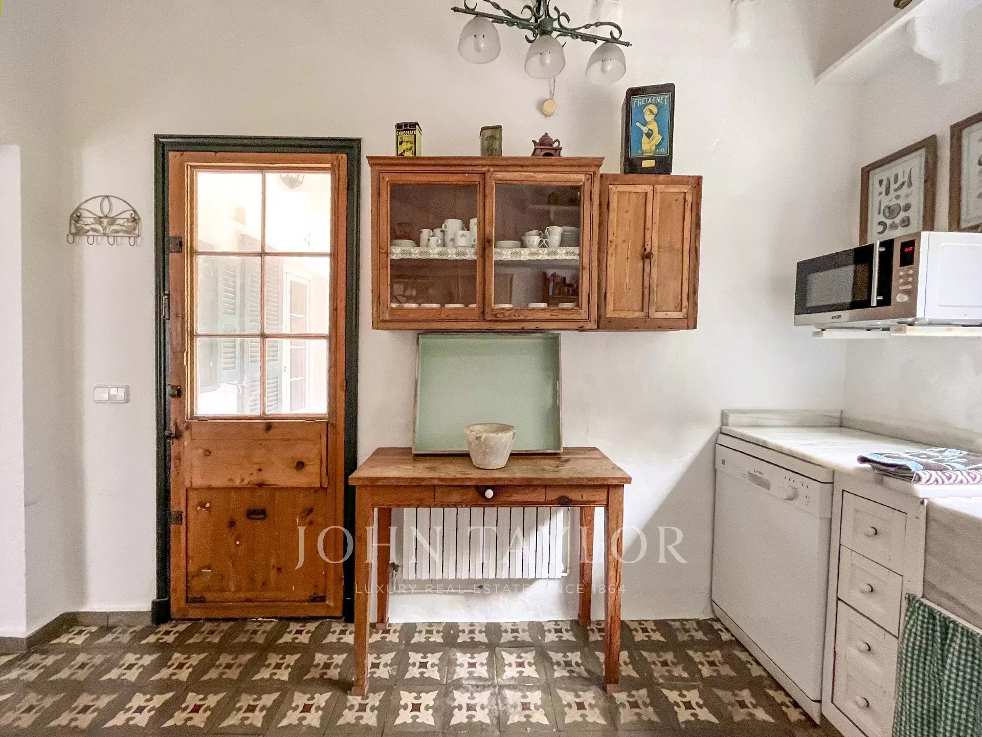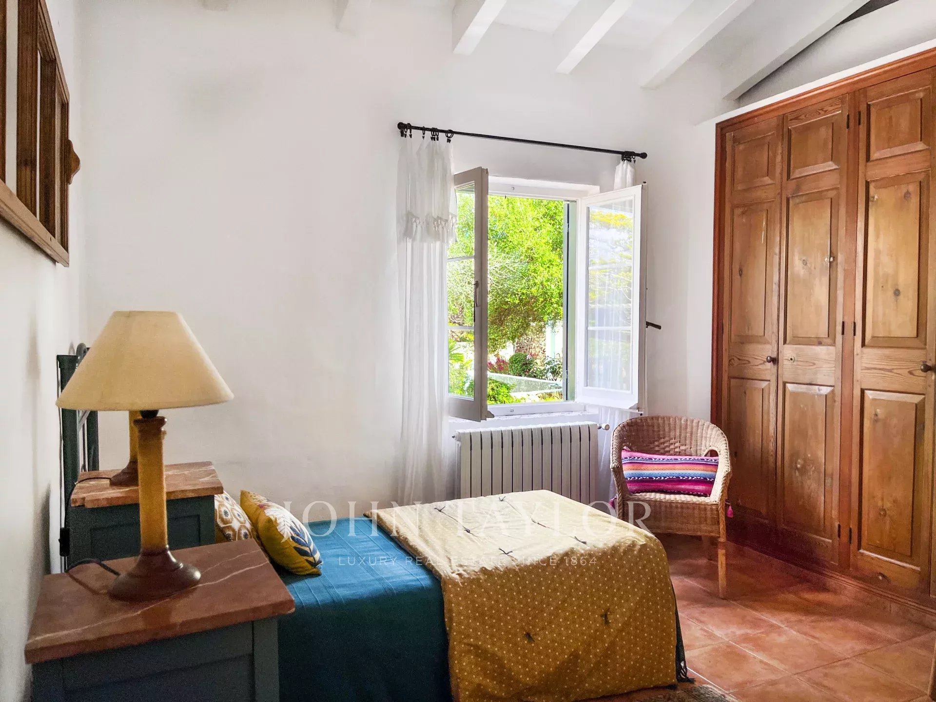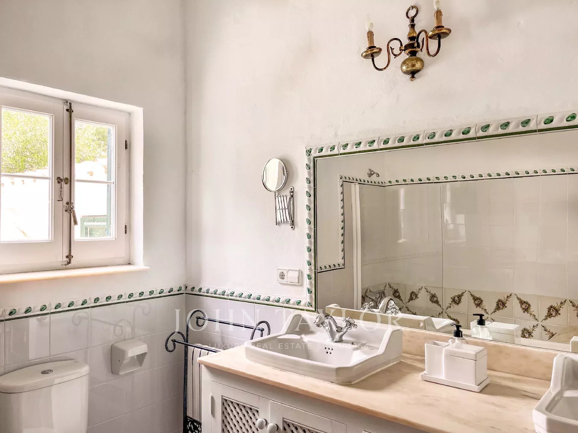 Esta preciosa casa típica menorquina está situada en el bonito paraje rural de S´Uestrá / Biniali, muy cerca del pueblo de Sant Lluís, donde se puede encontrar todo tipo de servicios (tiendas, bares, restaurantes, bancos, farmacia). Las playas de Binibeca y Binissafúller están a unos 5 minutos conduciendo. Es imprescindible disponer de vehículo. Exterior: El terreno que pertenece a la casa tiene aproximadamente 11.000 metros cuadrados. La piscina está situada en la cara este de la casa y mide 10 x 5 metros. Cerca de la piscina hay un zona cubierta para comer al aire libre. El porche de la casa cuenta con sofás de obra típicos menorquines. El terreno tiene amplias zonas de césped, olivos y varias áreas muy tranquilas donde uno se puede relajar a la sombra. Interior: Casa San Andrea tiene unos interiores con gran atención a los detalles y se ha construido con materiales tradicionales de la isla, recreando un ambiente antiguo pero con el confort para la vida moderna. Casa Principal (dos plantas) para 10 personas: Planta Baja: en la parte central de la casa se encuentra el salón y la cocina, ambos con acceso a la terraza delantera. Desde aquí se accede a una zona donde se encuentra 1 habitación de matrimonio (1,60m) con AA y 1 habitación doble (dos camas individuales) con AA, que comparten un baño completo con bañera. Y en la otra parte de la casa hay 1 habitación doble (2 camas individuales), 1 baño con cucha, 1 aseo y el lavadero. Primera Planta: 1 habitación de matrimonio (1,60m) con AA con baño completo en-suite y 1 habitación de matrimonio (1,50) con AA con cuarto de baño con ducha en-suite. Ambas habitaciones tienen acceso a una terraza con bonitas vistas al campo. Todas las habitaciones tienen ventilador en el techo. Casita Anexo para 2 personas: Situada a 100m de la casa principal: porche, salón, 1 habitación doble, 1 baño con ducha y pequeña cocina. Nota: la casa principal dispone de calefacción para los meses fríos (consultar precio adicional).
