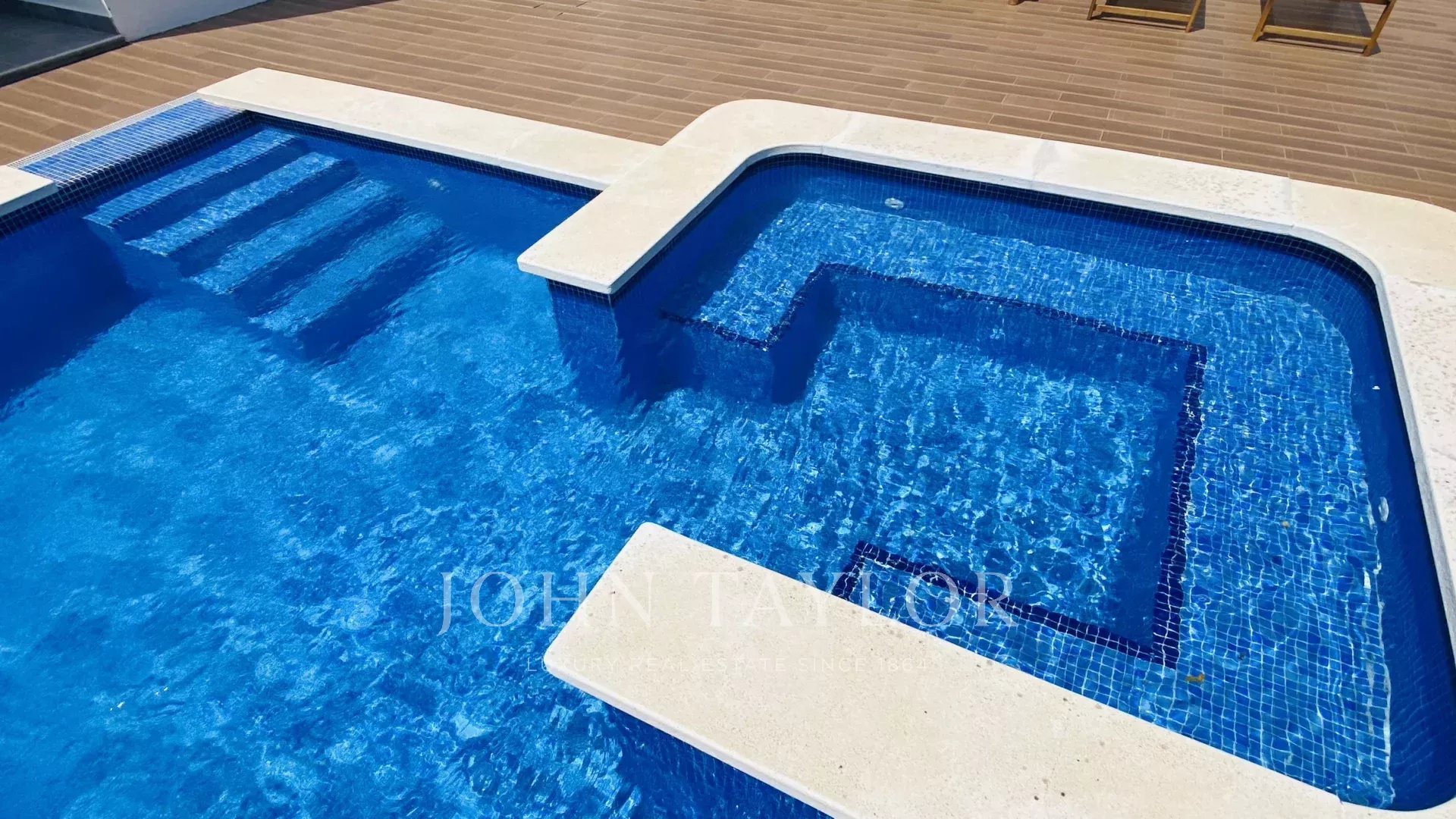 Dispone de mobiliario jardín, parcela vallada, 30 m² de terraza, lavadora, barbacoa, acceso internet (wifi), balcón, calefacción bomba de calor, aire acondicionado en todo el alojamiento, piscina privada, parking aire libre en mismo edificio, 4 Televisores.