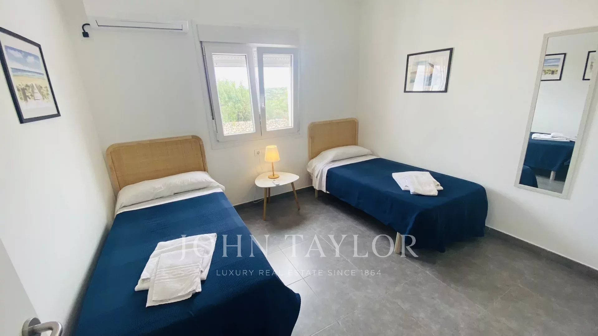 Se encuentra a 500 m del supermercado, 500 m de la estación de autobuses, 500 m del restaurante "Bambú", 1 km del restaurante "Sa Musclera", 1 km de la playa de arena "Binibeca", 1 km de la playa de roca "Pueblo Pescadores Binibeca", 5 km de la ciudad "Sant Lluís", 15 km del aeropuerto "Menorca", 25 km del campo de Golf "Son Parc" y está ubicado en una zona tranquila y junto al mar.