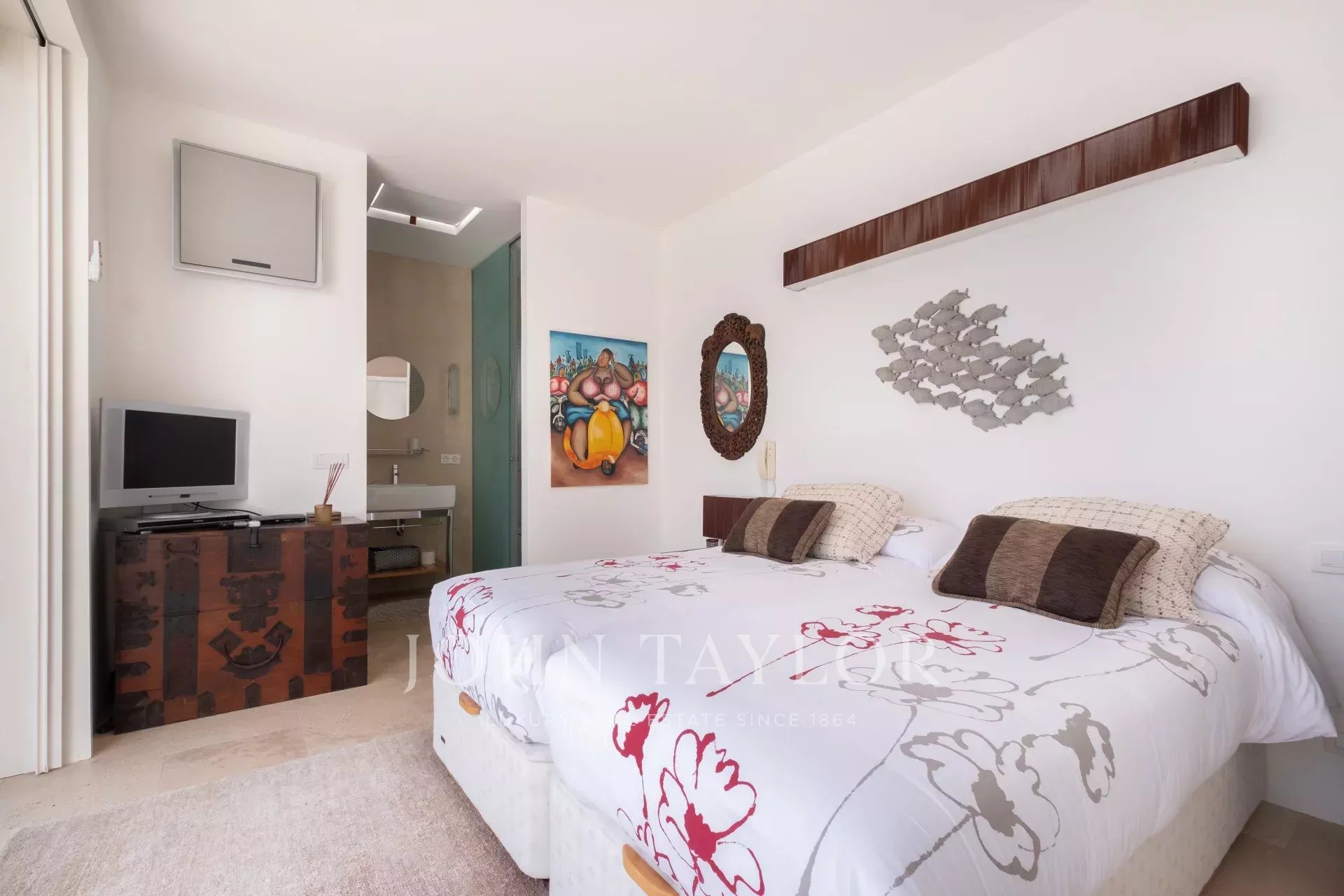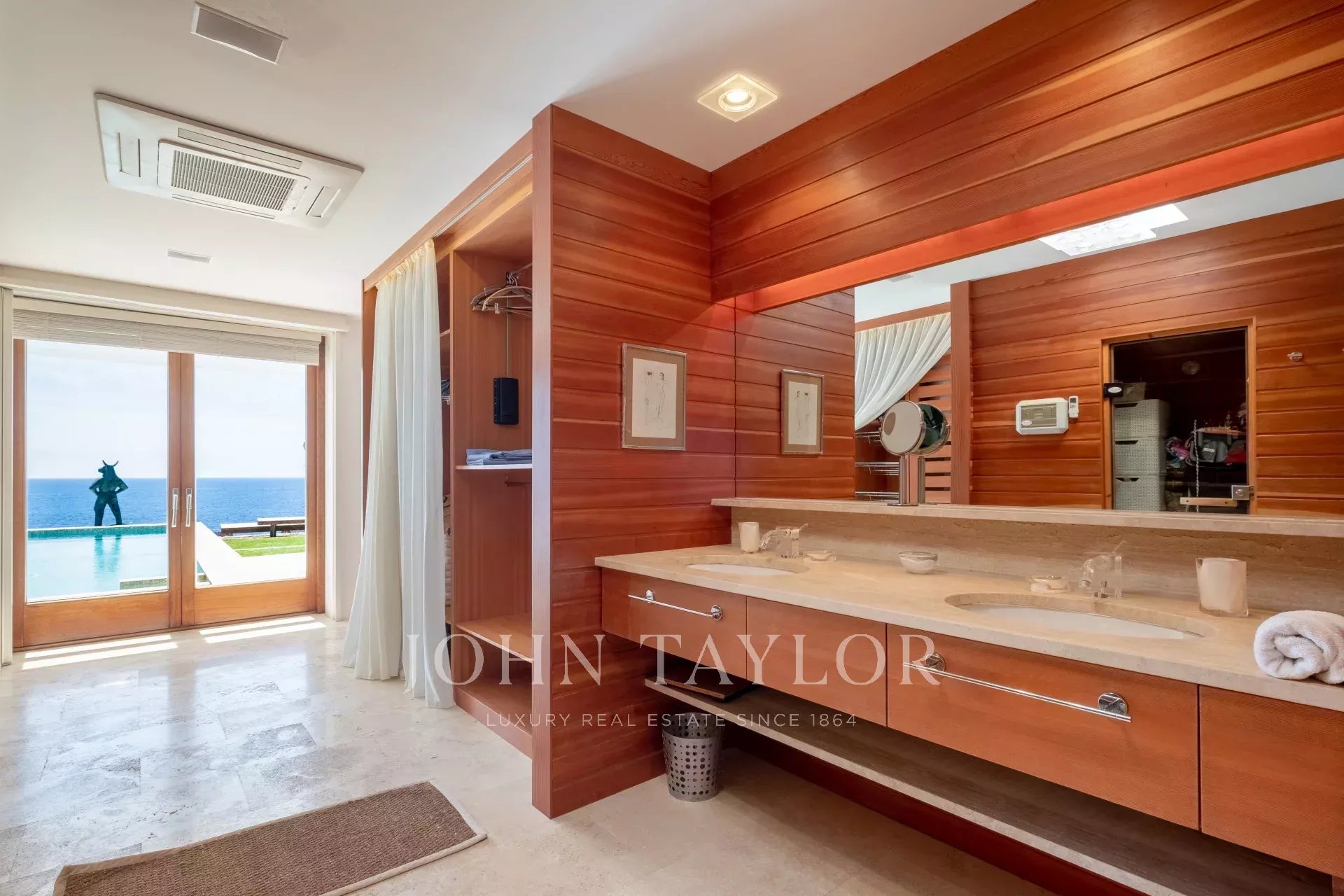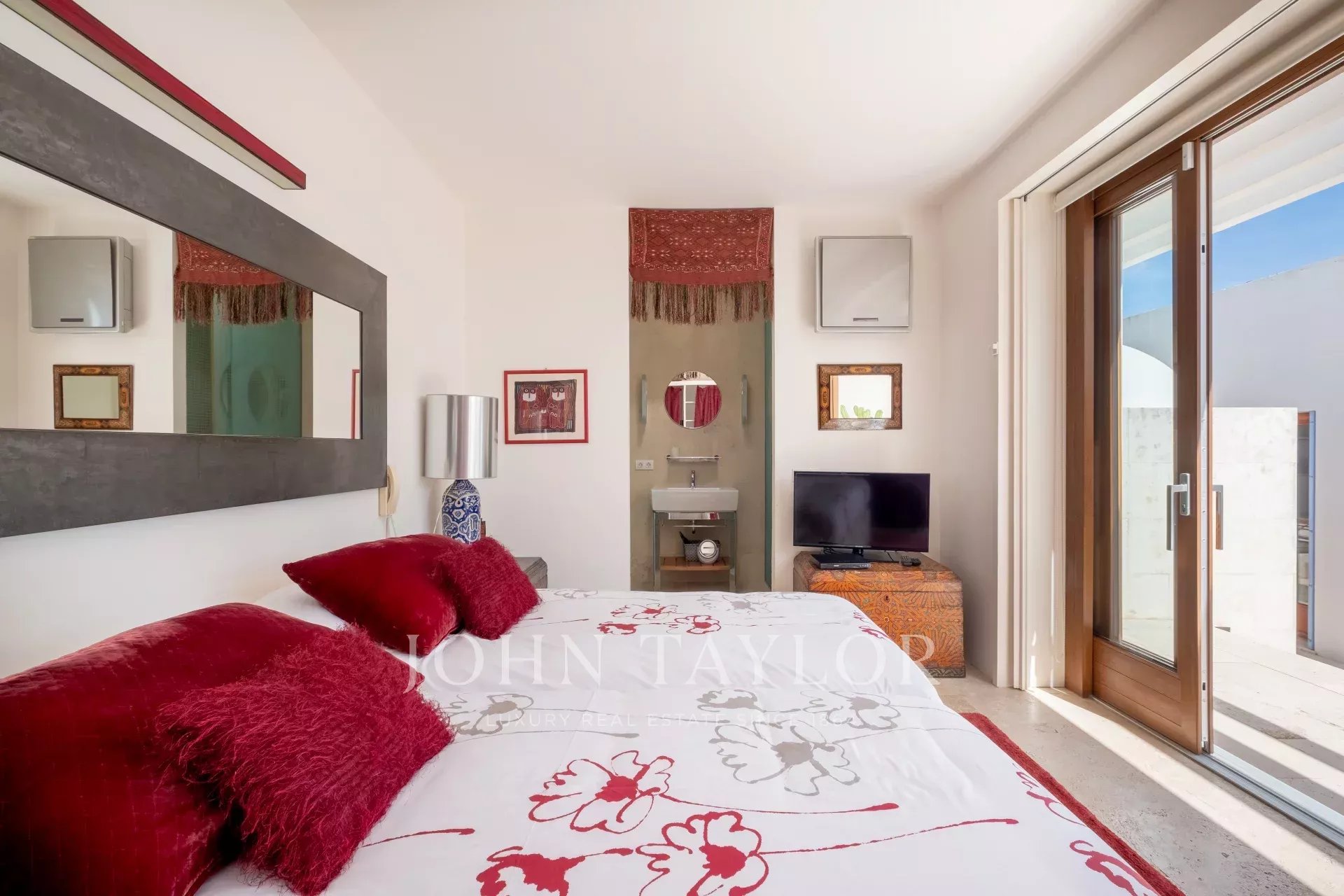 La villa cuenta con amplios espacios interiores que combinan elegancia y confort, ideales para unas vacaciones en familia o con amigos. Los dormitorios son luminosos y espaciosos, mientras que los baños cuentan con acabados de lujo para una experiencia de relajación total.