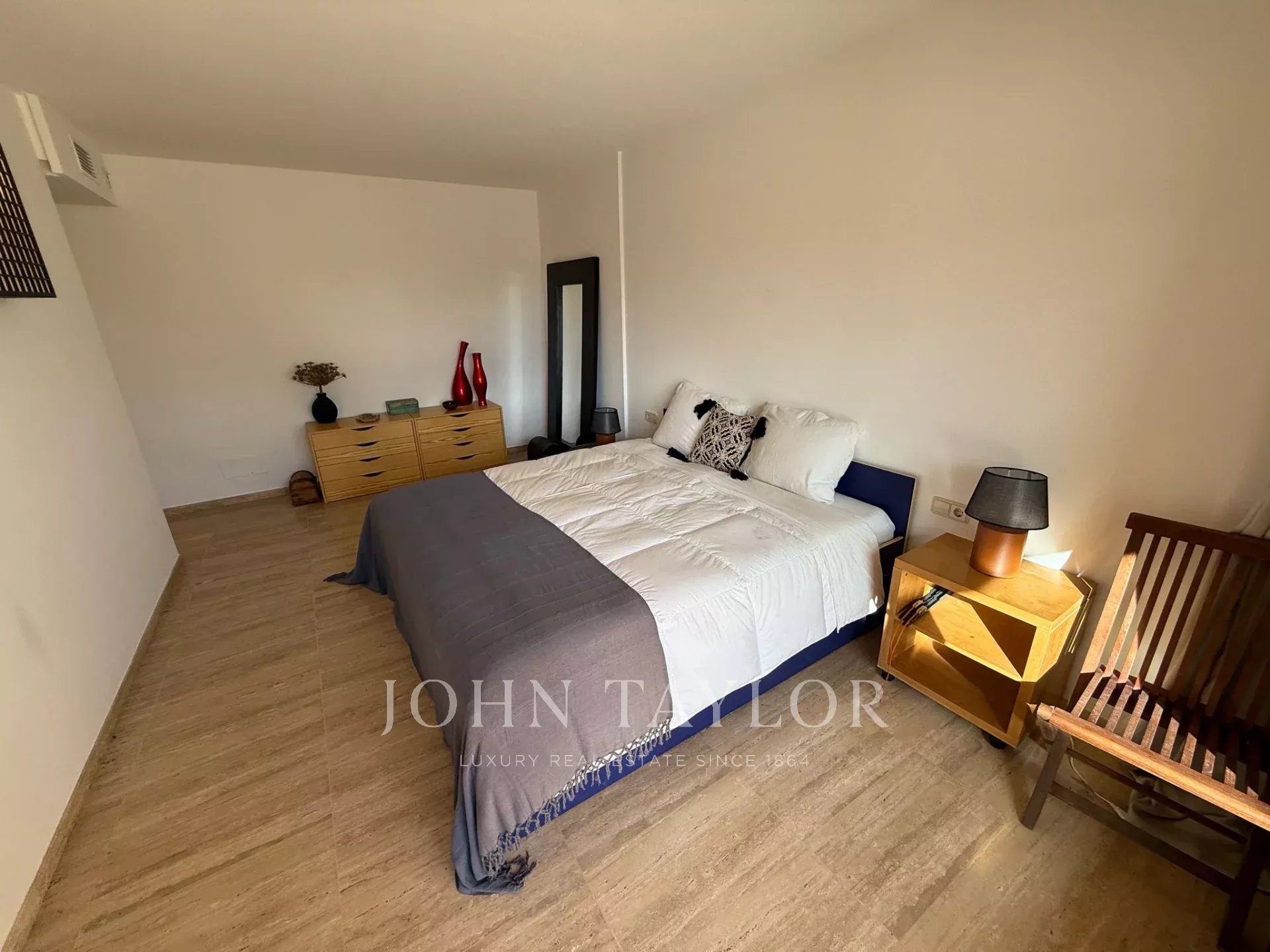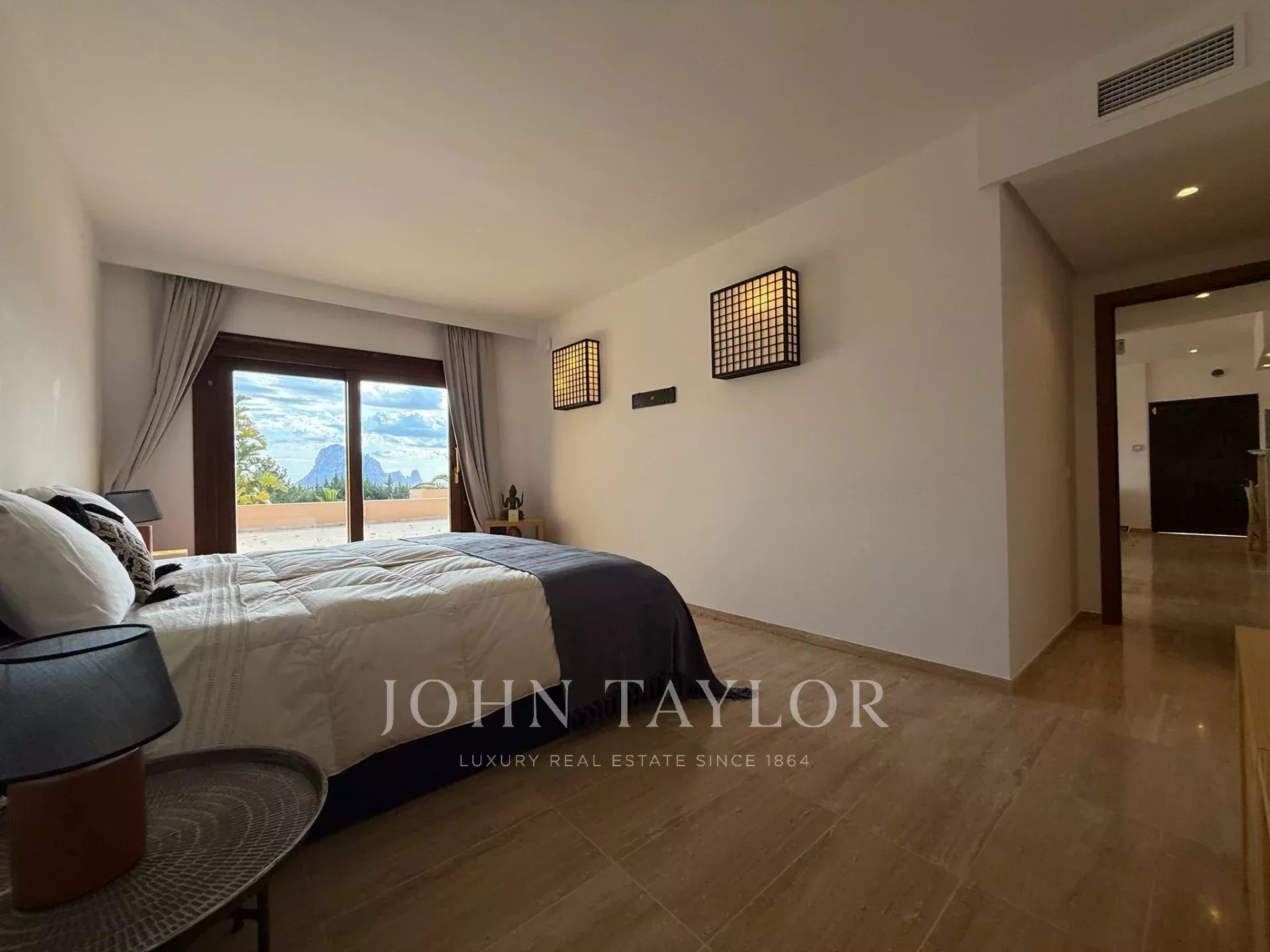 Dos habitaciones adicionales que comparten baño, una de ellas con vistas a Es Vedrà y acceso exterior.