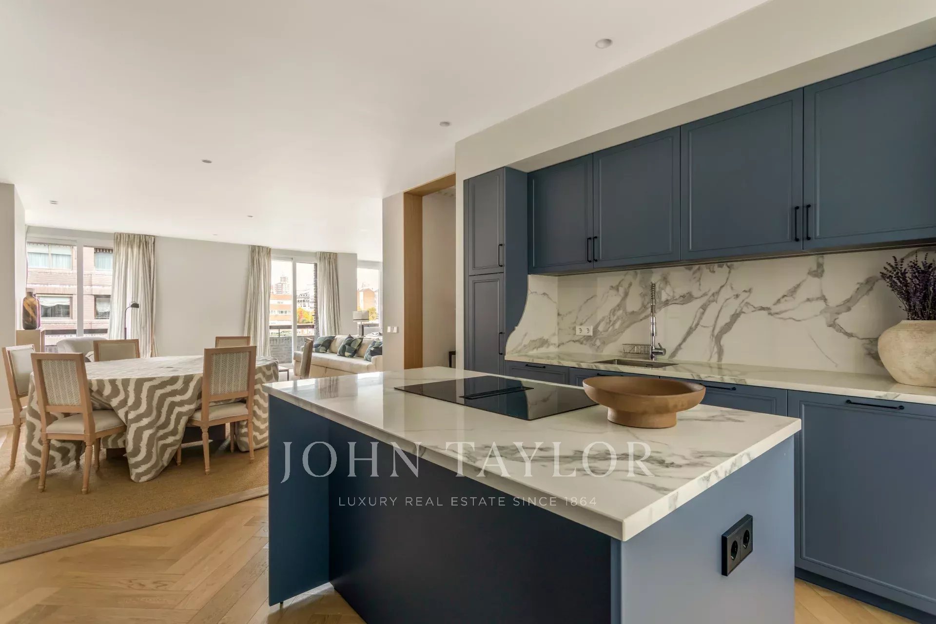 La vivienda se distribuye en un gran salón con amplios ventanales que aportan luz natural, conectado con un comedor perfecto para reuniones y ocasiones especiales. La cocina, de moderno diseño está completamente equipada con electrodomésticos de alta gama. Este lujoso piso dispone de una zona de lavandería independiente, muy funcional para el día a día. Se suma un aseo de invitados, ideal para visitas.