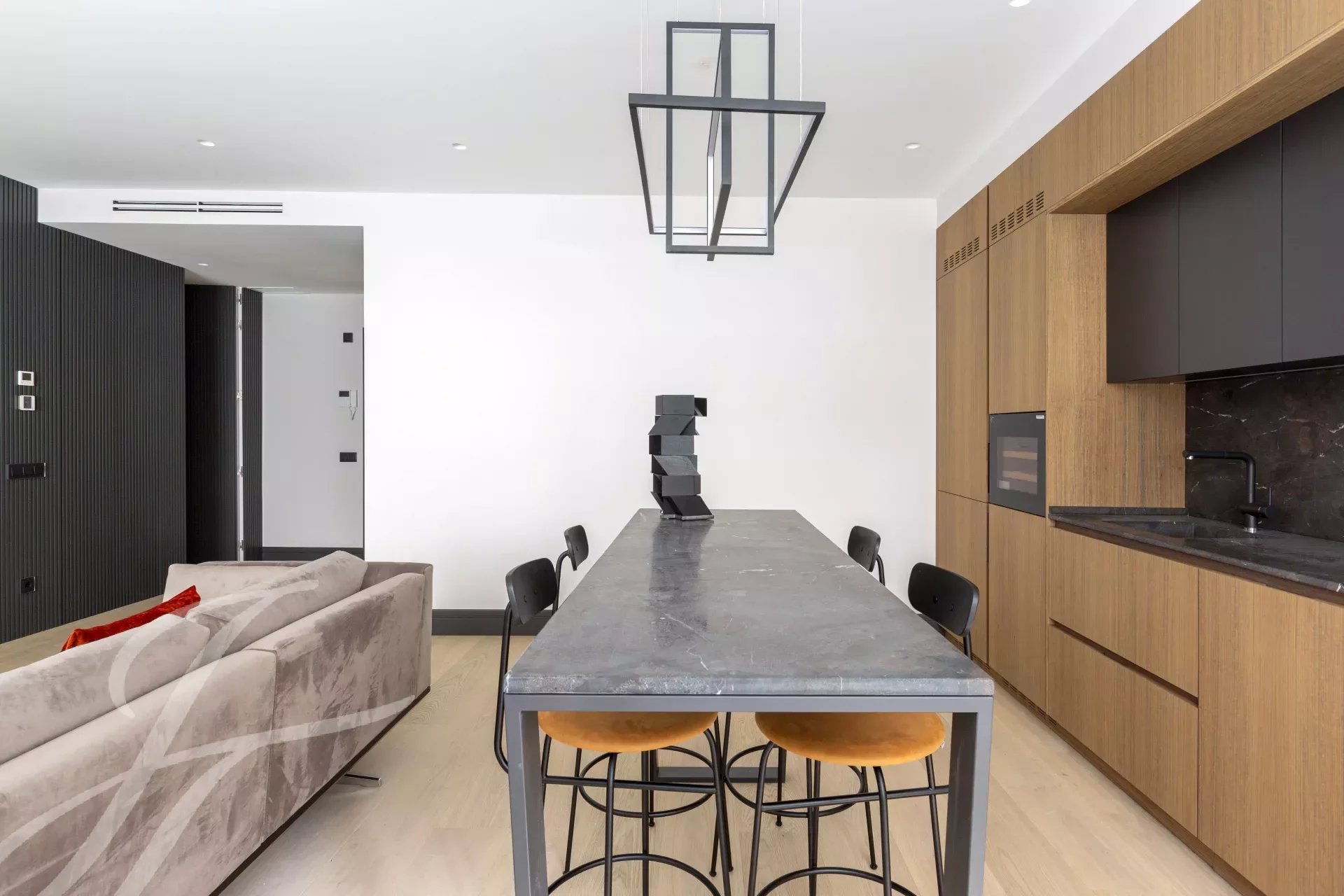 Situado en la segunda planta y con orientación Oeste, este moderno apartamento destaca luz natural, por la calidad de sus acabados y por el moderno estilo de sus muebles. Tiene un salón con cocina abierta equipada con electrodomésticos de alta gama, un coqueto aseo de invitados y un dormitorio con baño en suite.