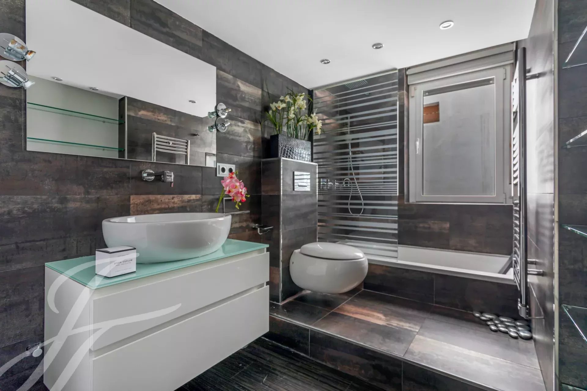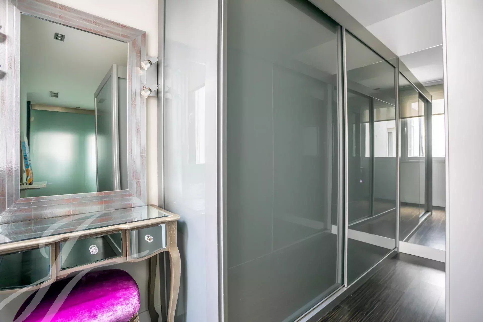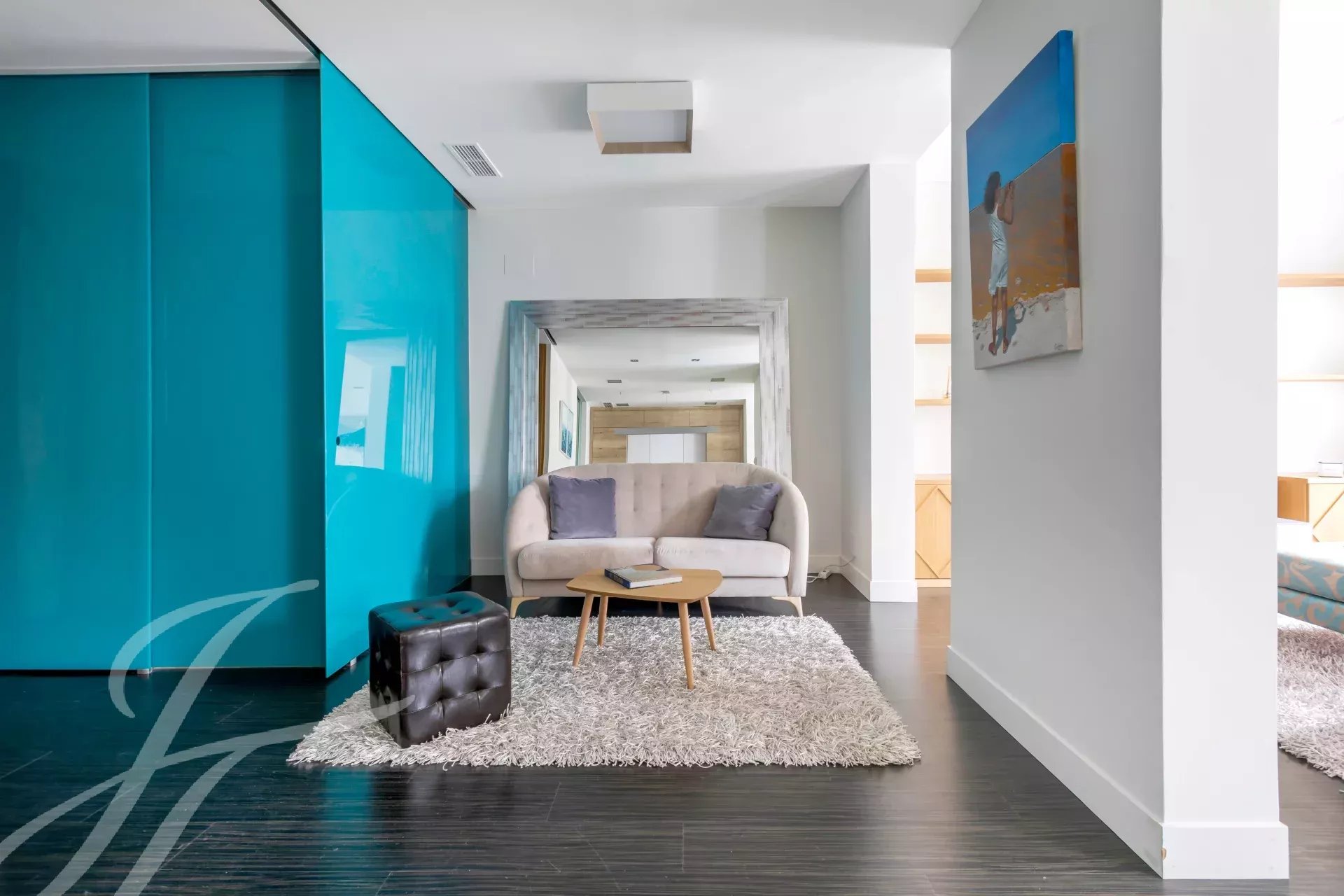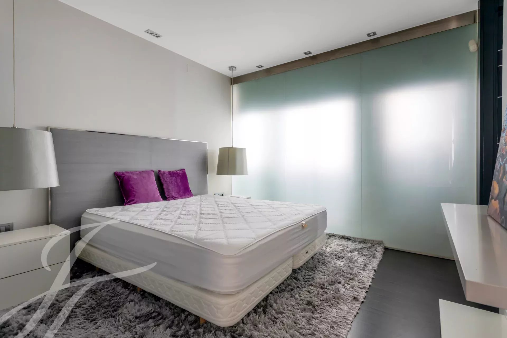 El dormitorio principal cuenta con un espacioso baño en suite, grandes armarios, vestidor y un armario adicional para zapatos y bolsos. Además, la vivienda dispone de otras dos habitaciones individuales conectadas entre sí.