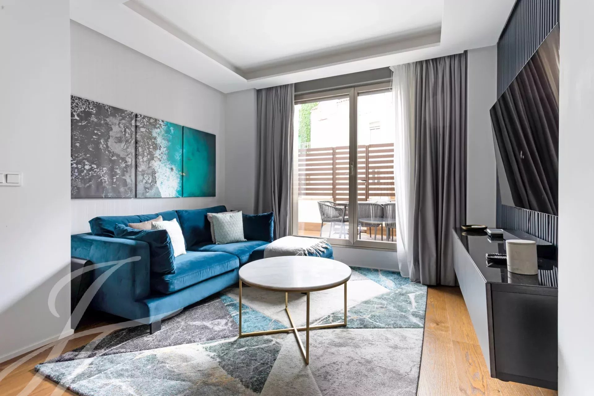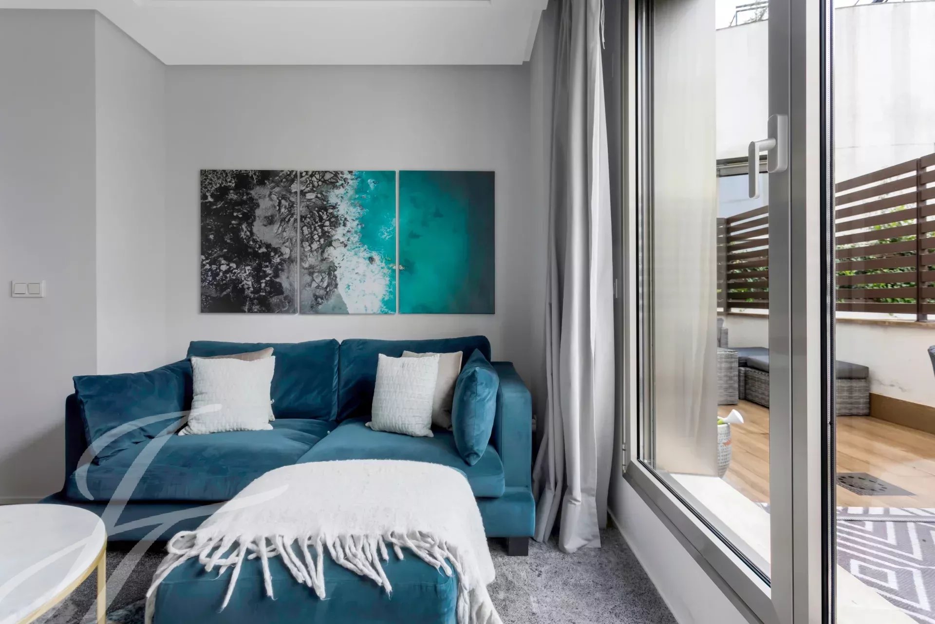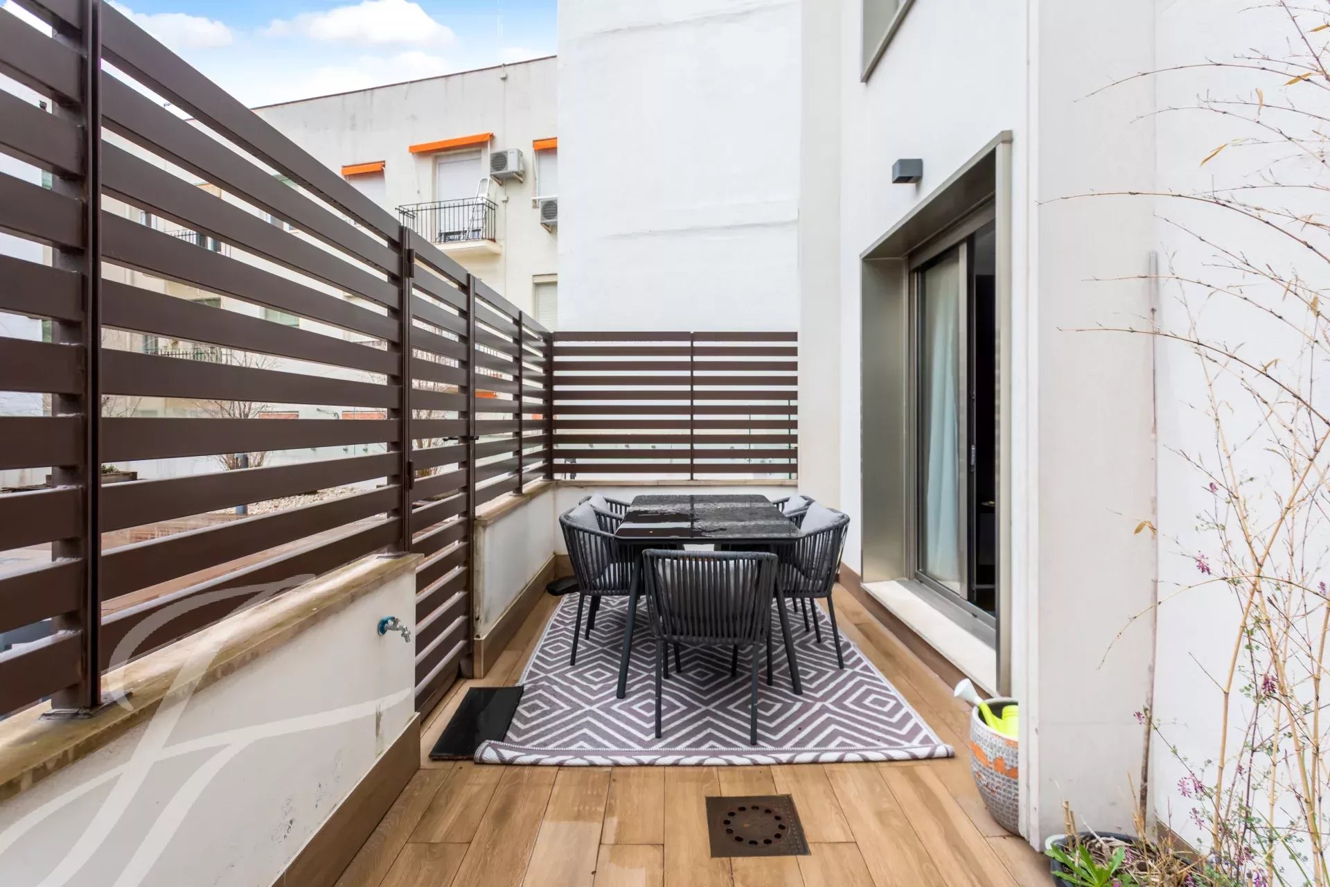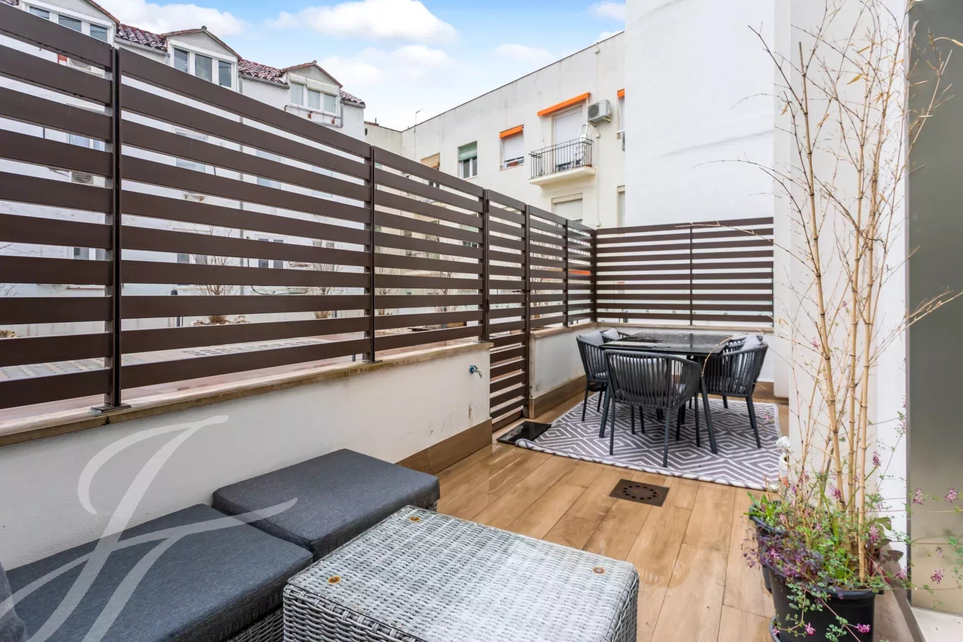 Piso amueblado y terraza privativa en un edificio con piscina