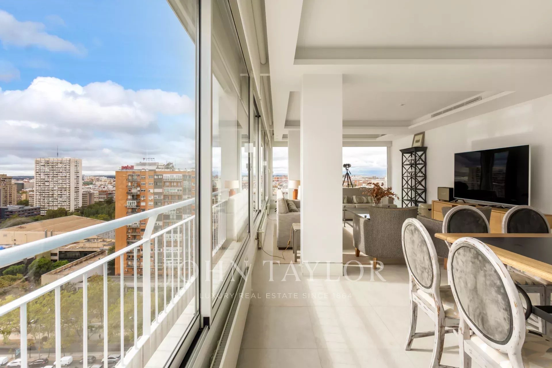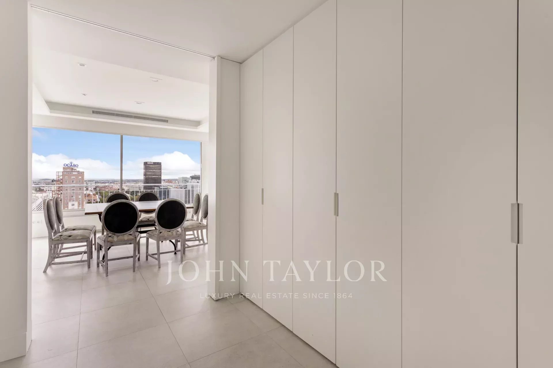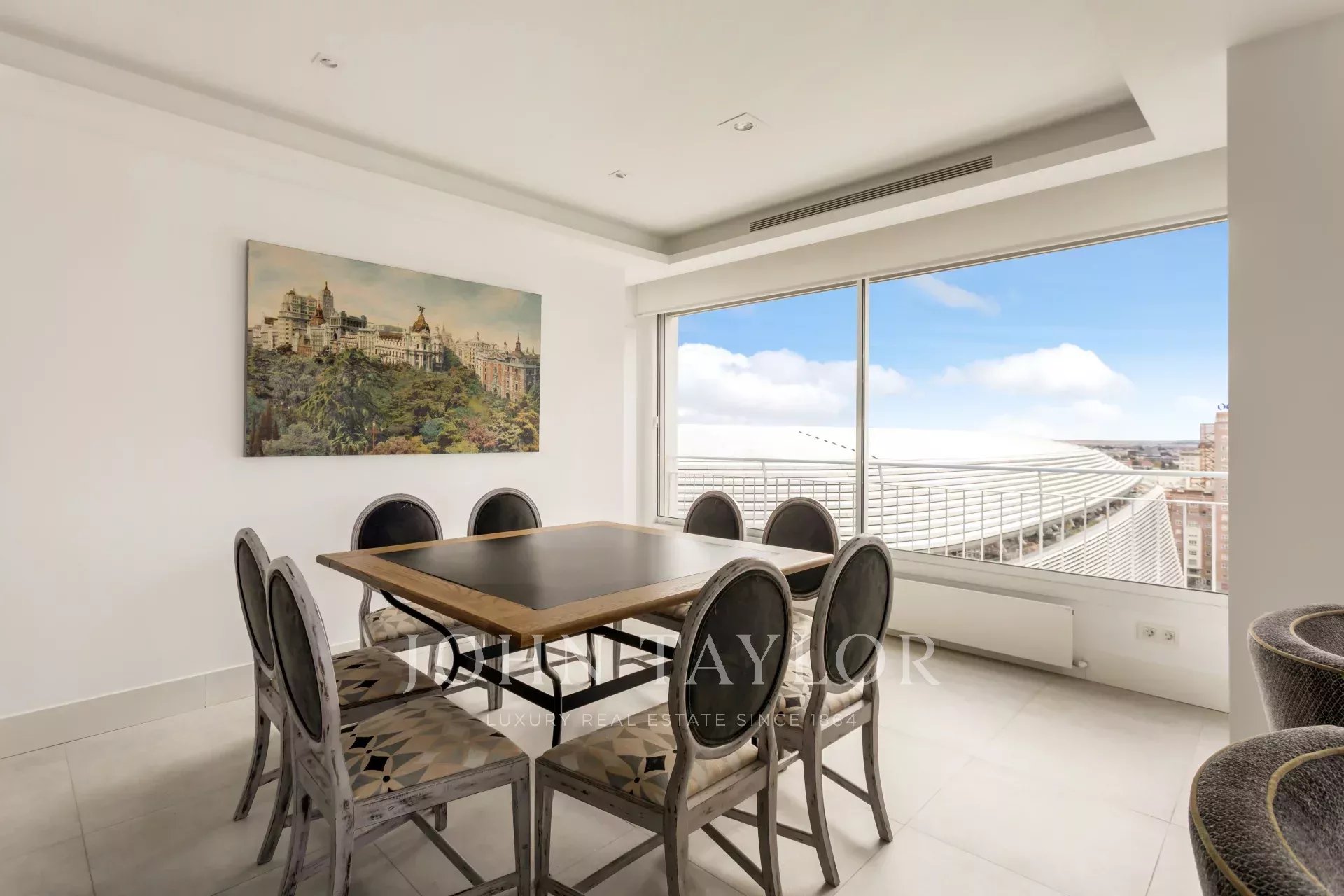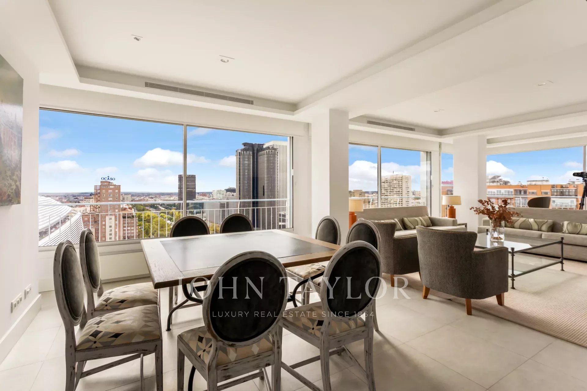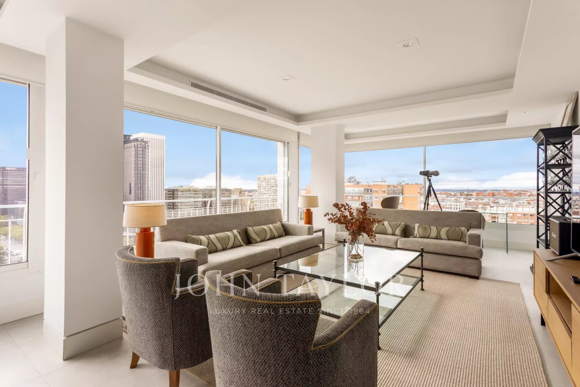 John Taylor pone en alquiler este esplendido piso amueblado con unas magnificas vistas sobre Madrid y con una desbordante luminosidad que le aporta su altura de 14 pisos.