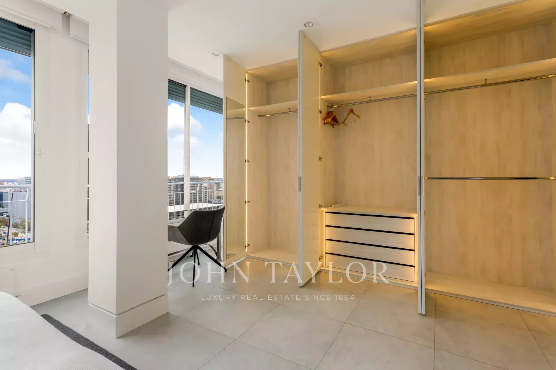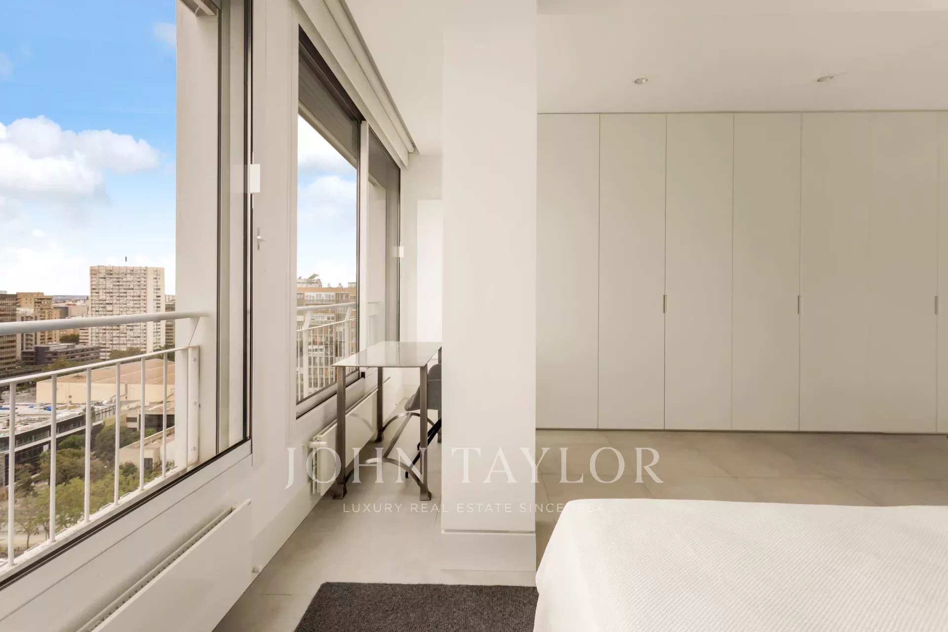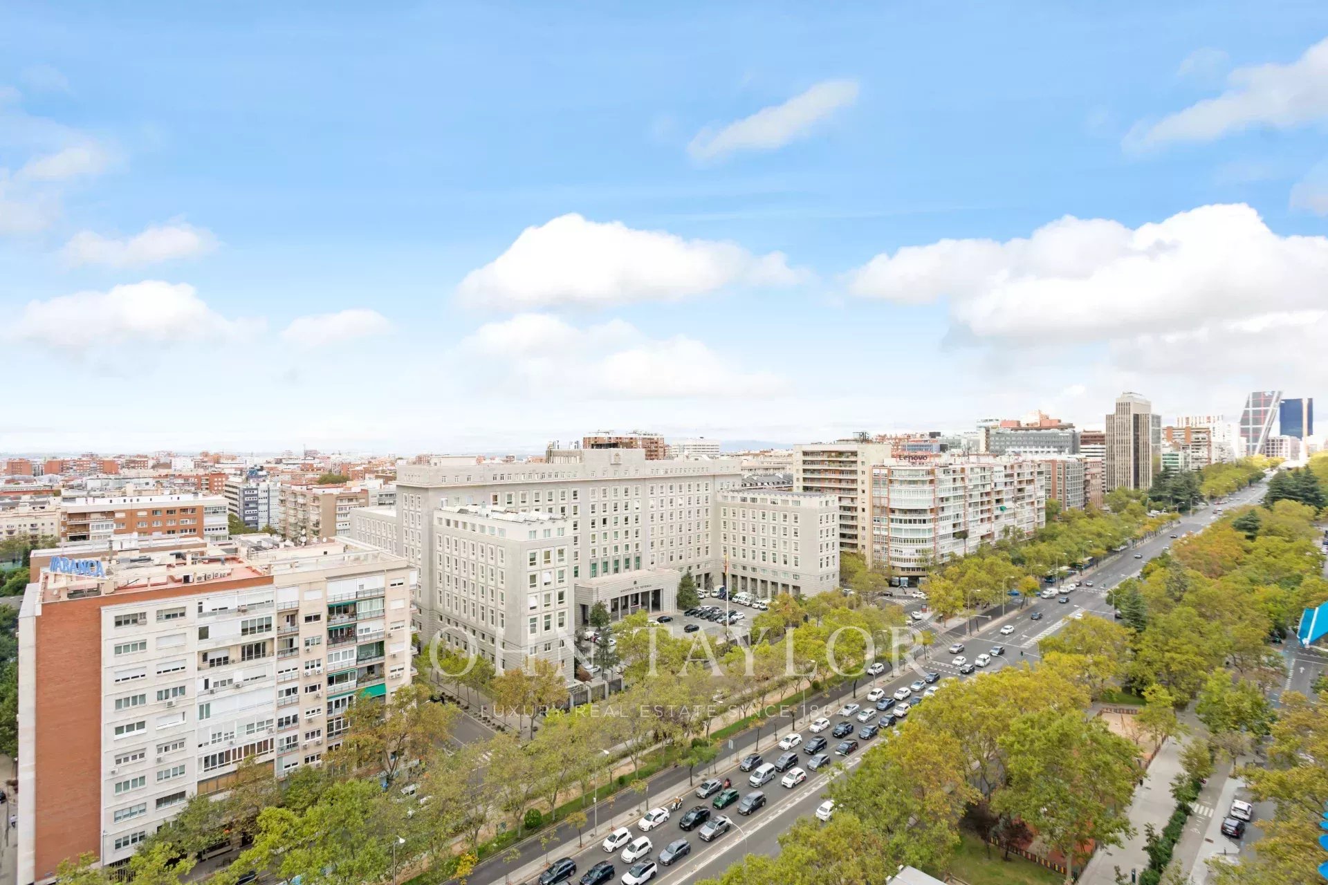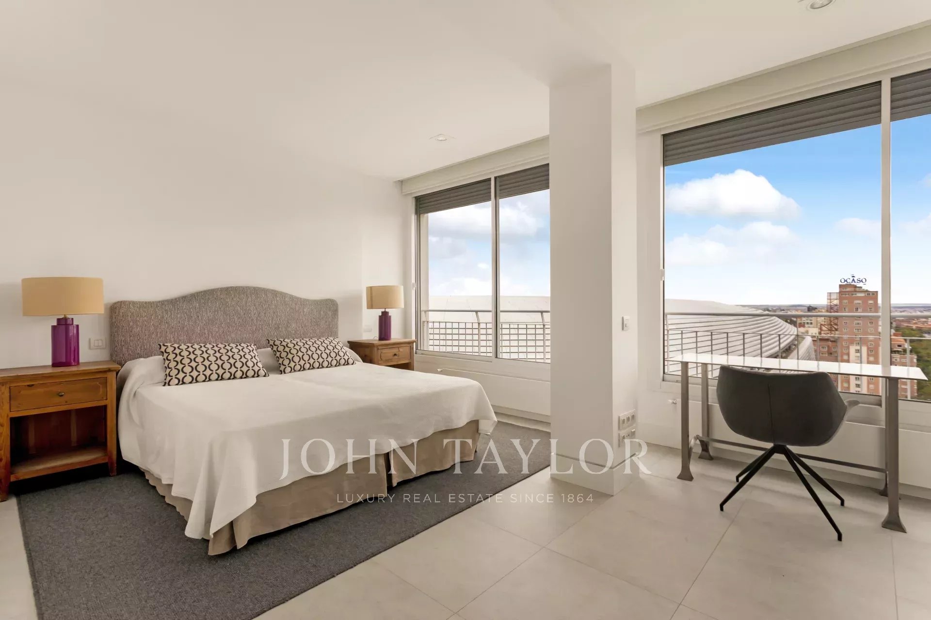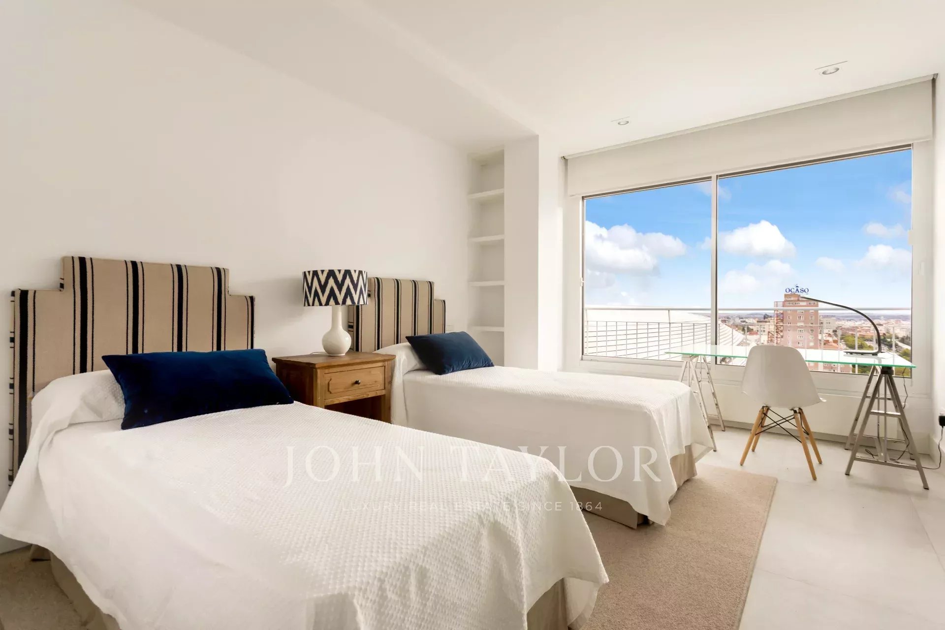 John Taylor pone en alquiler este esplendido piso amueblado con unas magnificas vistas sobre Madrid y con una desbordante luminosidad que le aporta su altura de 14 pisos.