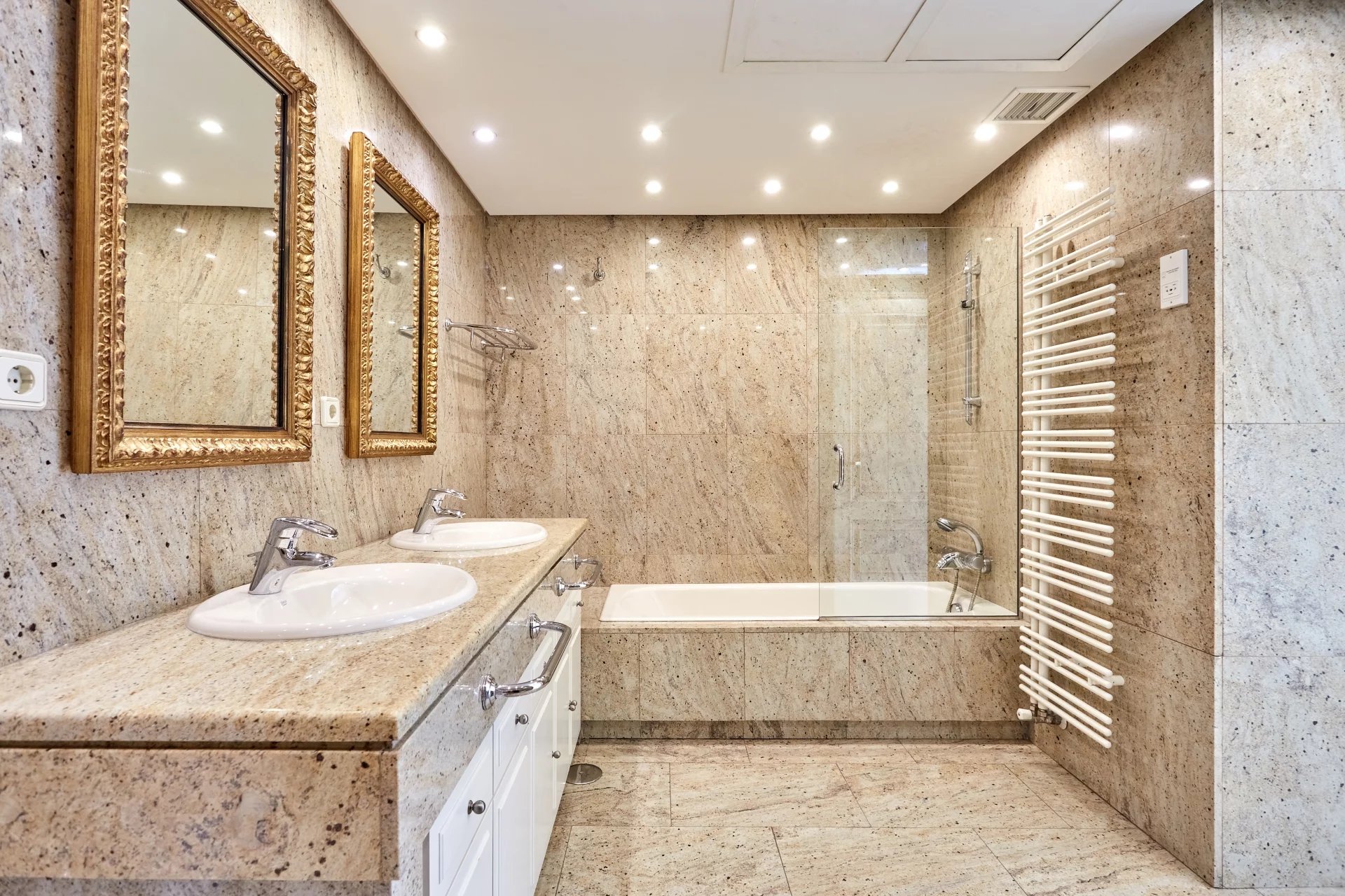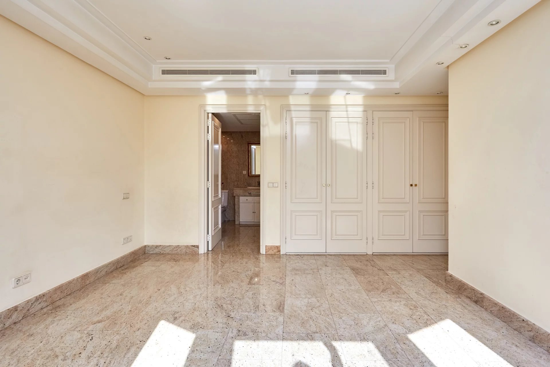 La zona de descanso cuenta con tres grandes dormitorios, dos de ellos con baños en suite y grandes ventanales. La vivienda cuenta con dos cajas fuertes y destaca por su amplísima capacidad de almacenaje por su gran número de armarios.