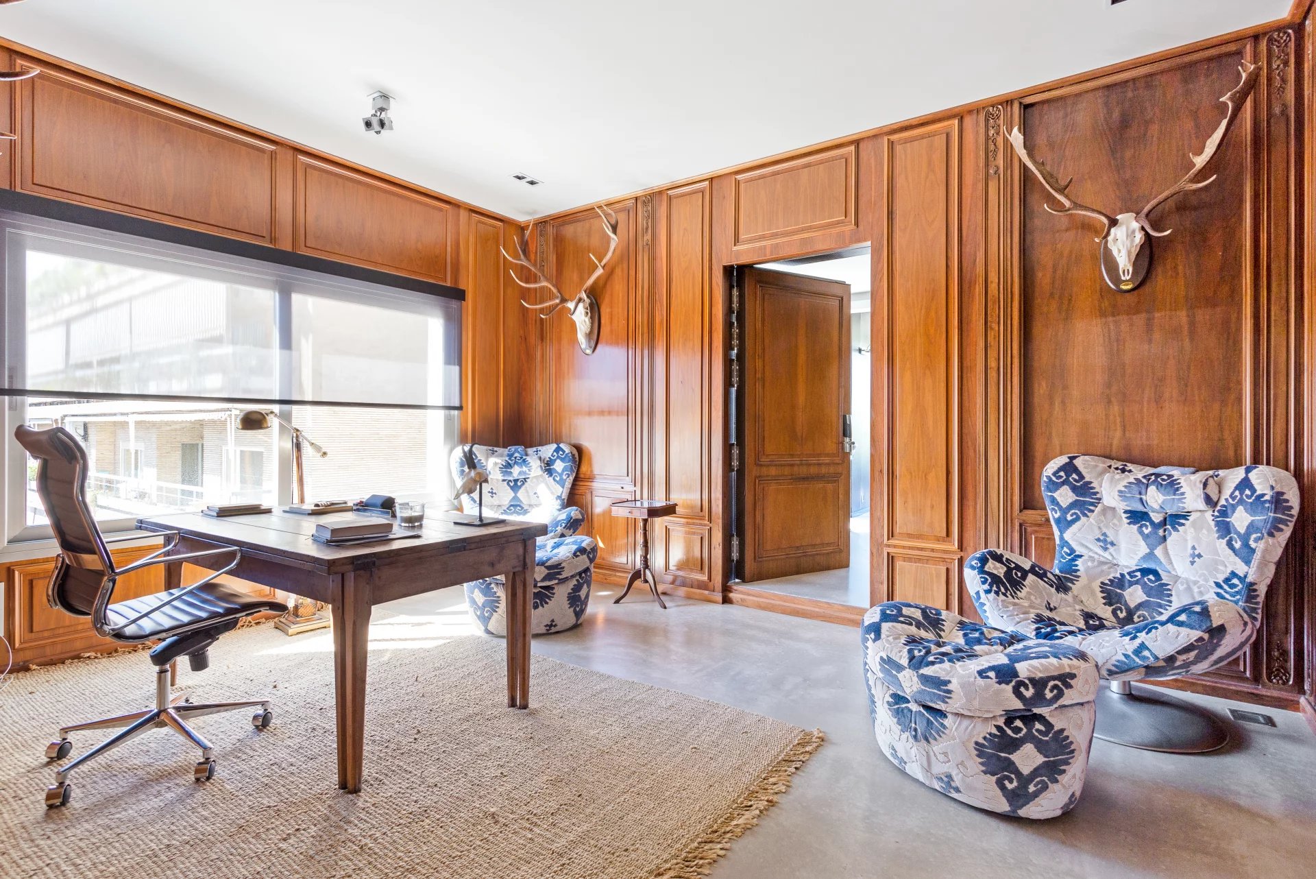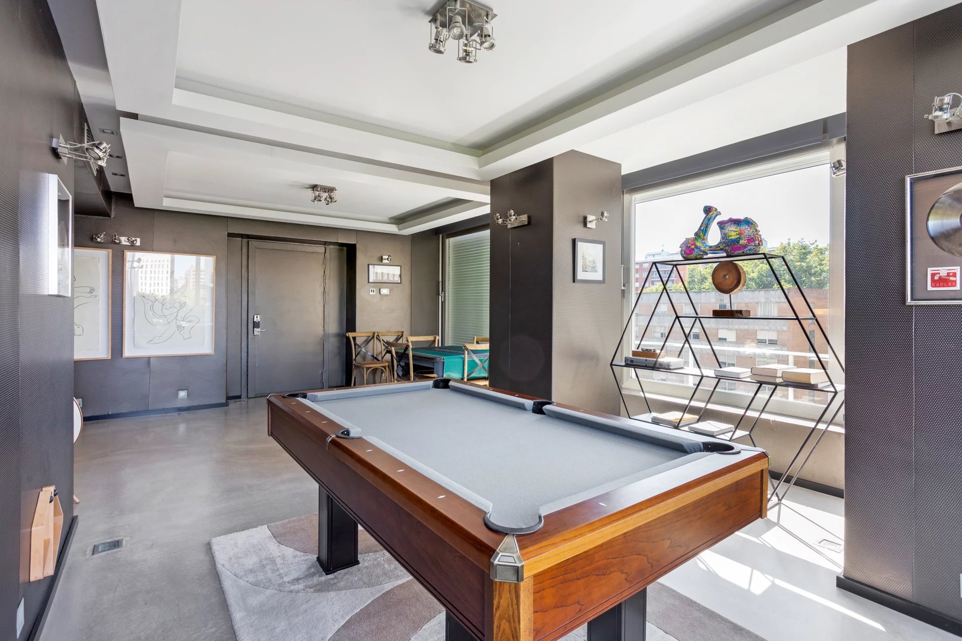 La propiedad ofrece una espectacular zona de recepción y representación, compuesta por varios salones conectados entre sí, inundados de luz natural gracias a sus grandes ventanales y vistas abiertas al parque. El elegante comedor independiente, con capacidad para hasta 15 comensales, está concebido para recibir y celebrar en un entorno distinguido. Este espacio se completa con una sala de juegos y una sala de cine privada totalmente insonorizada, diseñada para ofrecer una experiencia cinematográfica de máximo nivel.