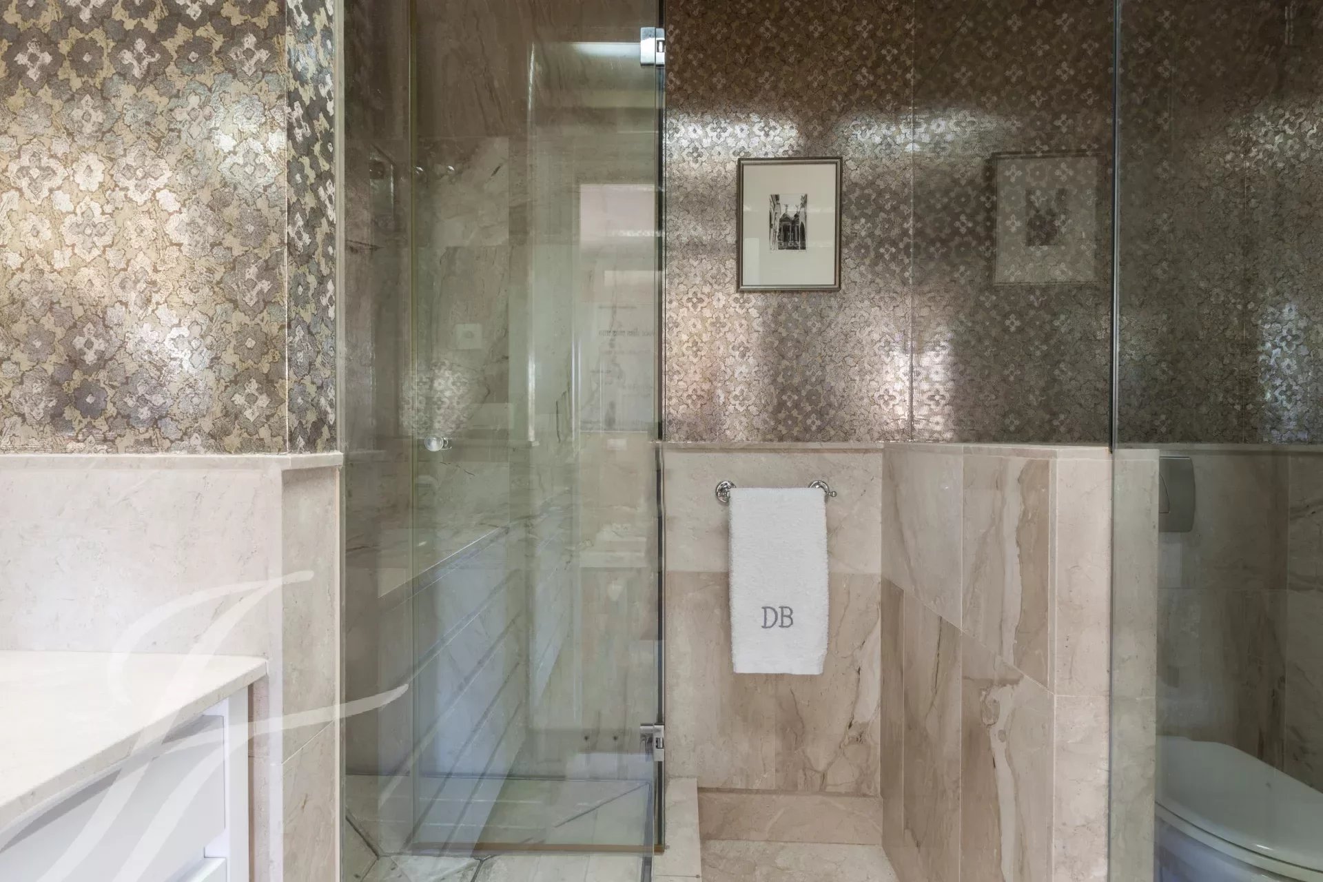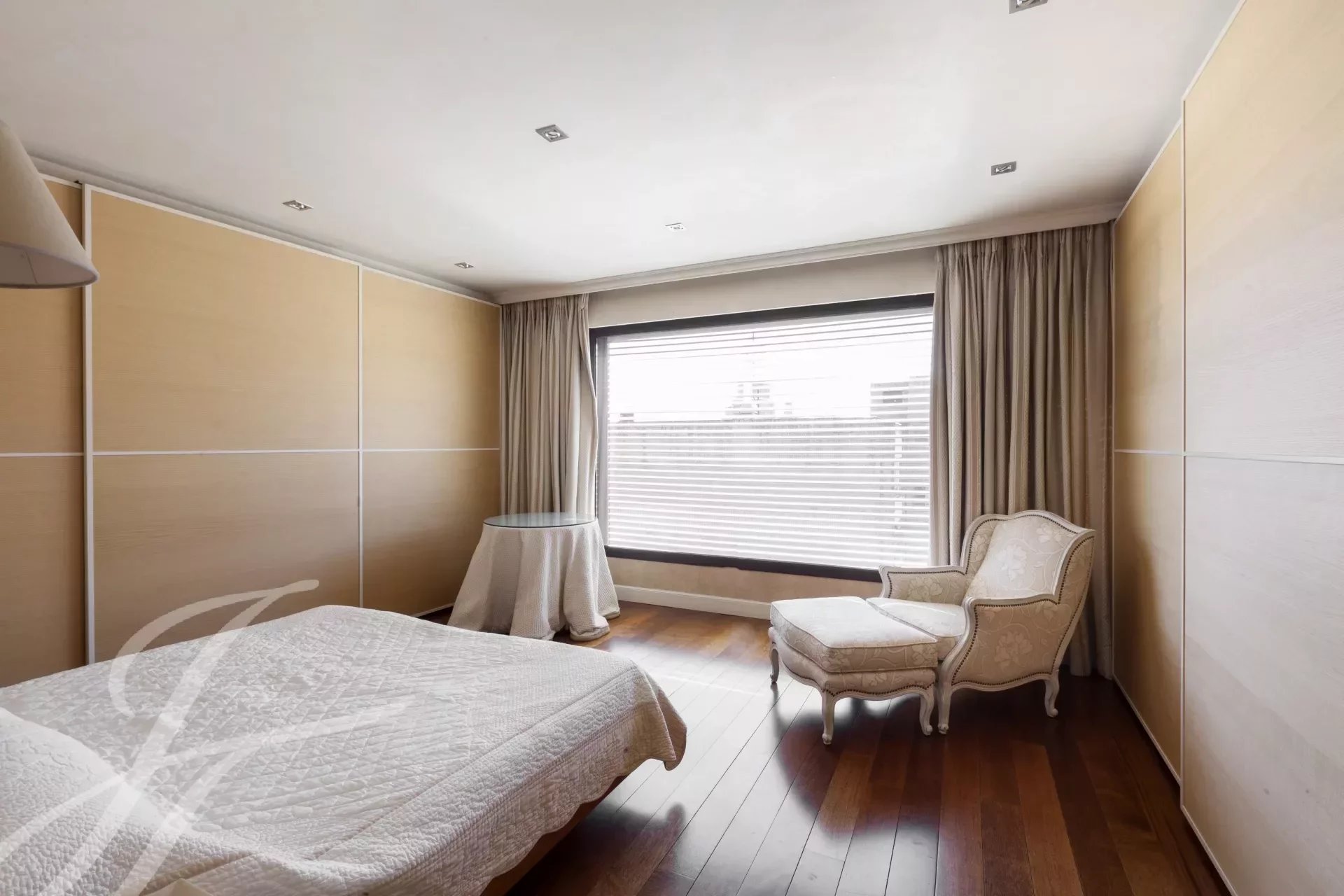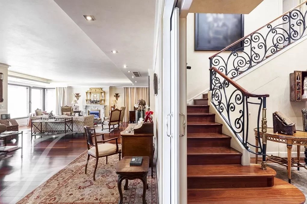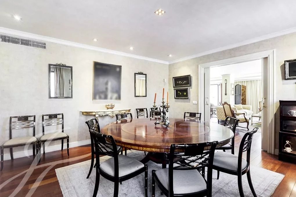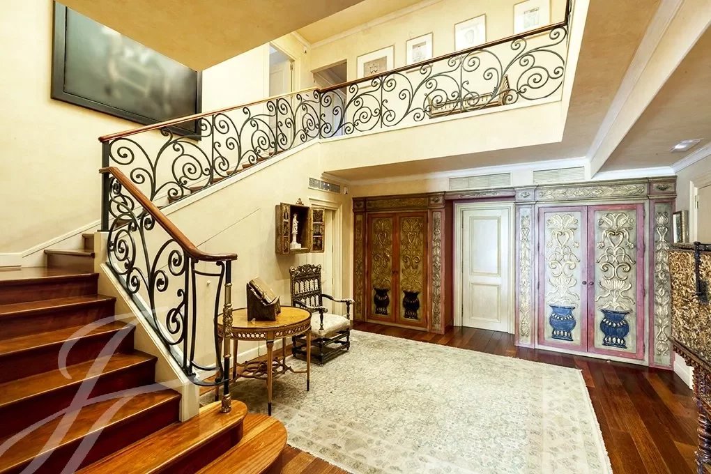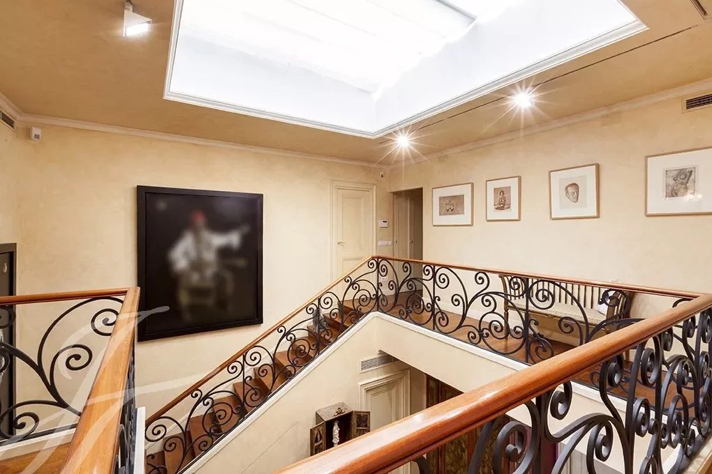 Este magnífico dúplex de 466m² útiles ya impresiona desde su entrada, con un gran recibidor, tanto por su tamaño como por su altura de casi 6 metros, coronado por una claraboya que le da una gran luminosidad.