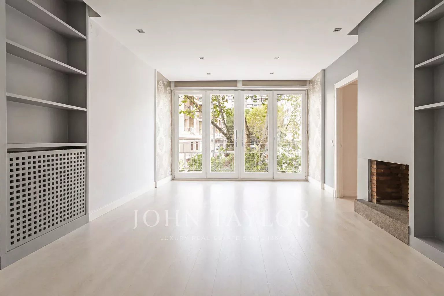 Disfrute de su luminosidad y magníficas vistas despejadas desde el salón que dispone de un gran ventanal de suelo a techo con cerramiento móvil y una bonita y agradable chimenea.