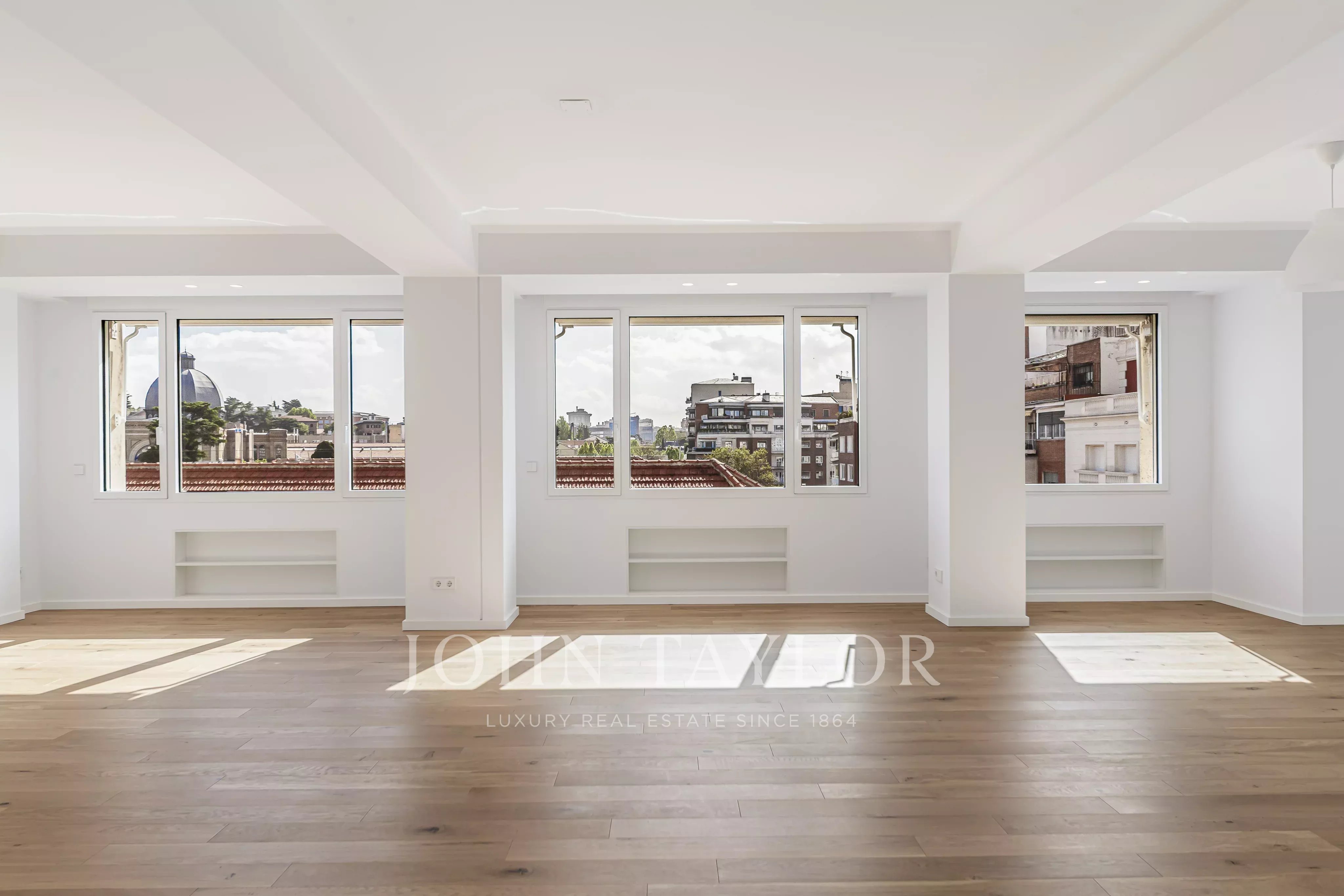 Con 246 m² y orientación sur, la vivienda destaca especialmente por sus excepcionales vistas abiertas al Museo Nacional de Ciencias Naturales, un privilegio poco habitual que aporta amplitud, luz y una notable sensación de privacidad en pleno centro de la ciudad.