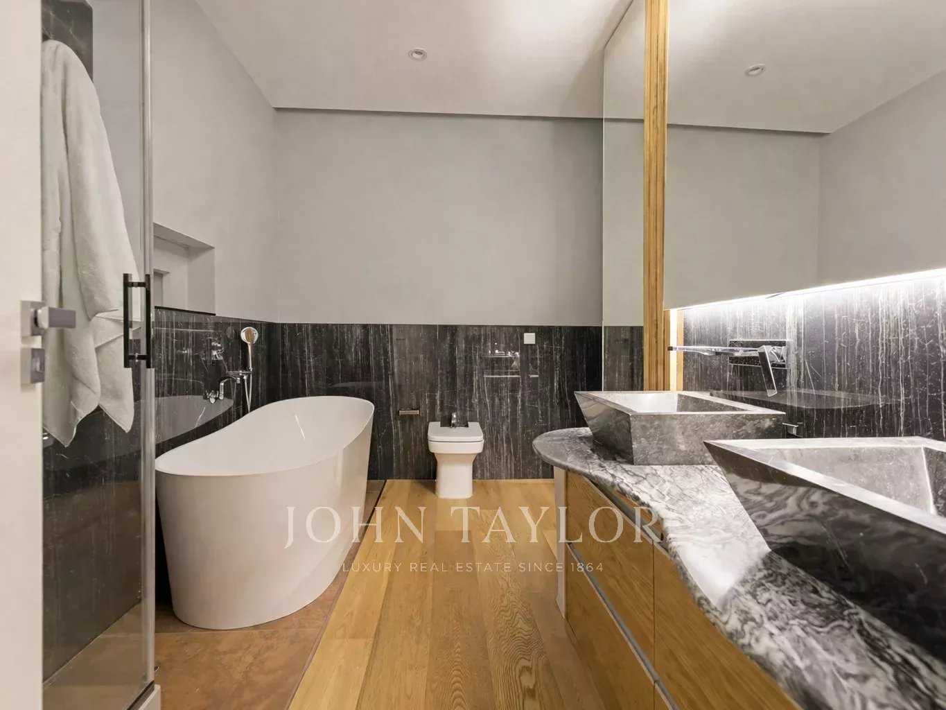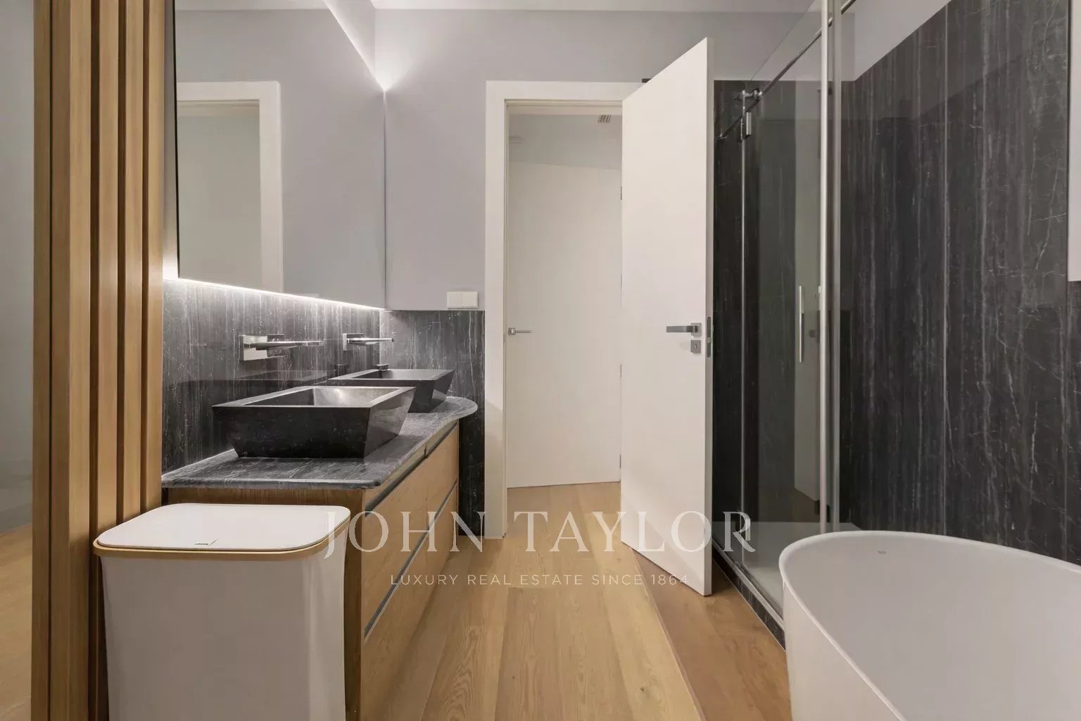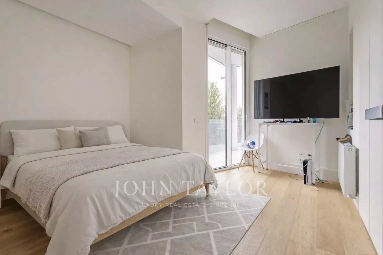 La suite principal se configura como un auténtico refugio privado, con vistas cuidadosamente enmarcadas, vestidor y un amplio baño equipado con ducha y bañera.