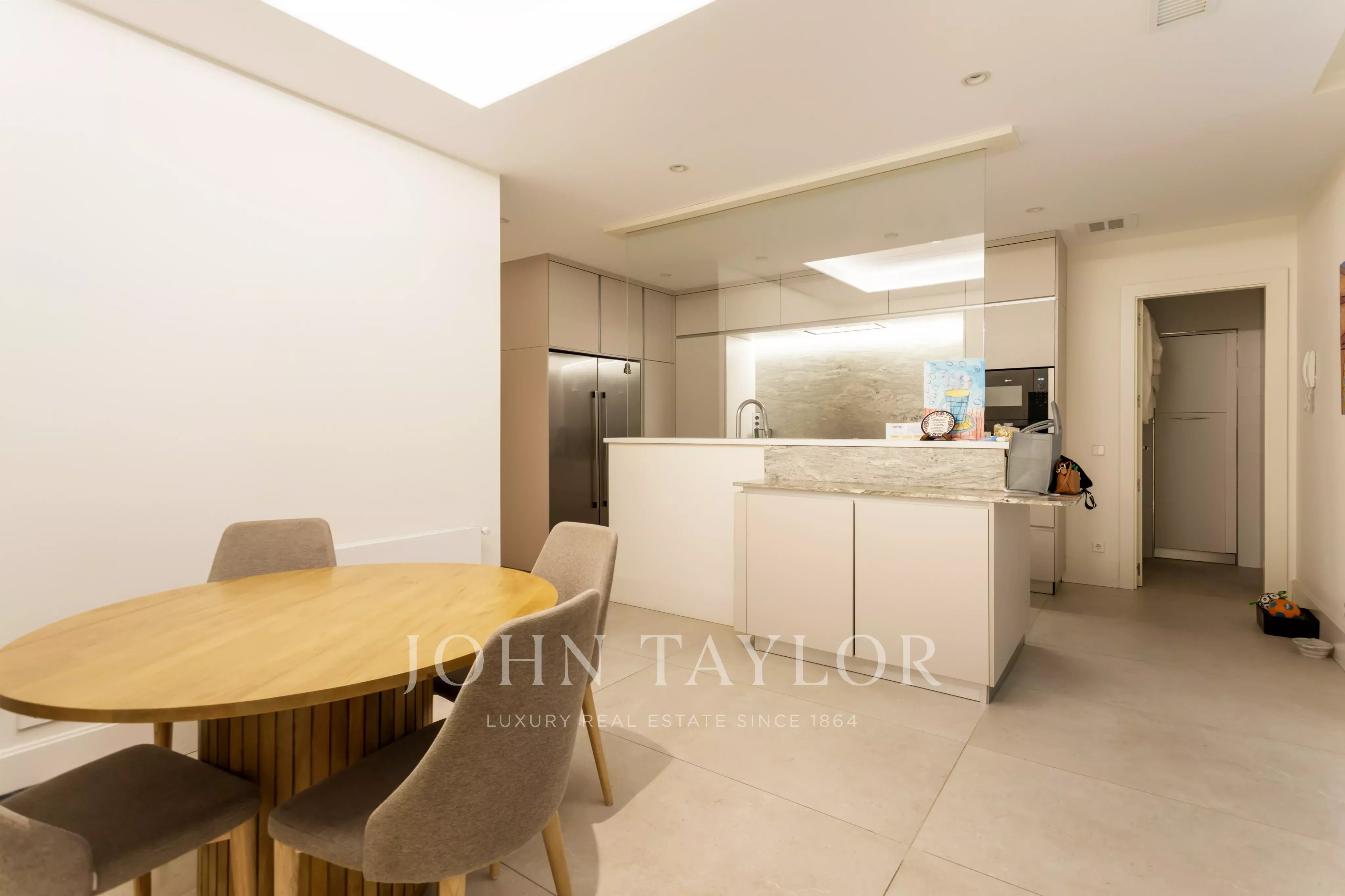 La cocina, independiente y de generosas dimensiones, dispone de acceso a un luminoso patio, además de despensa y habitación de servicio, aportando funcionalidad y comodidad.